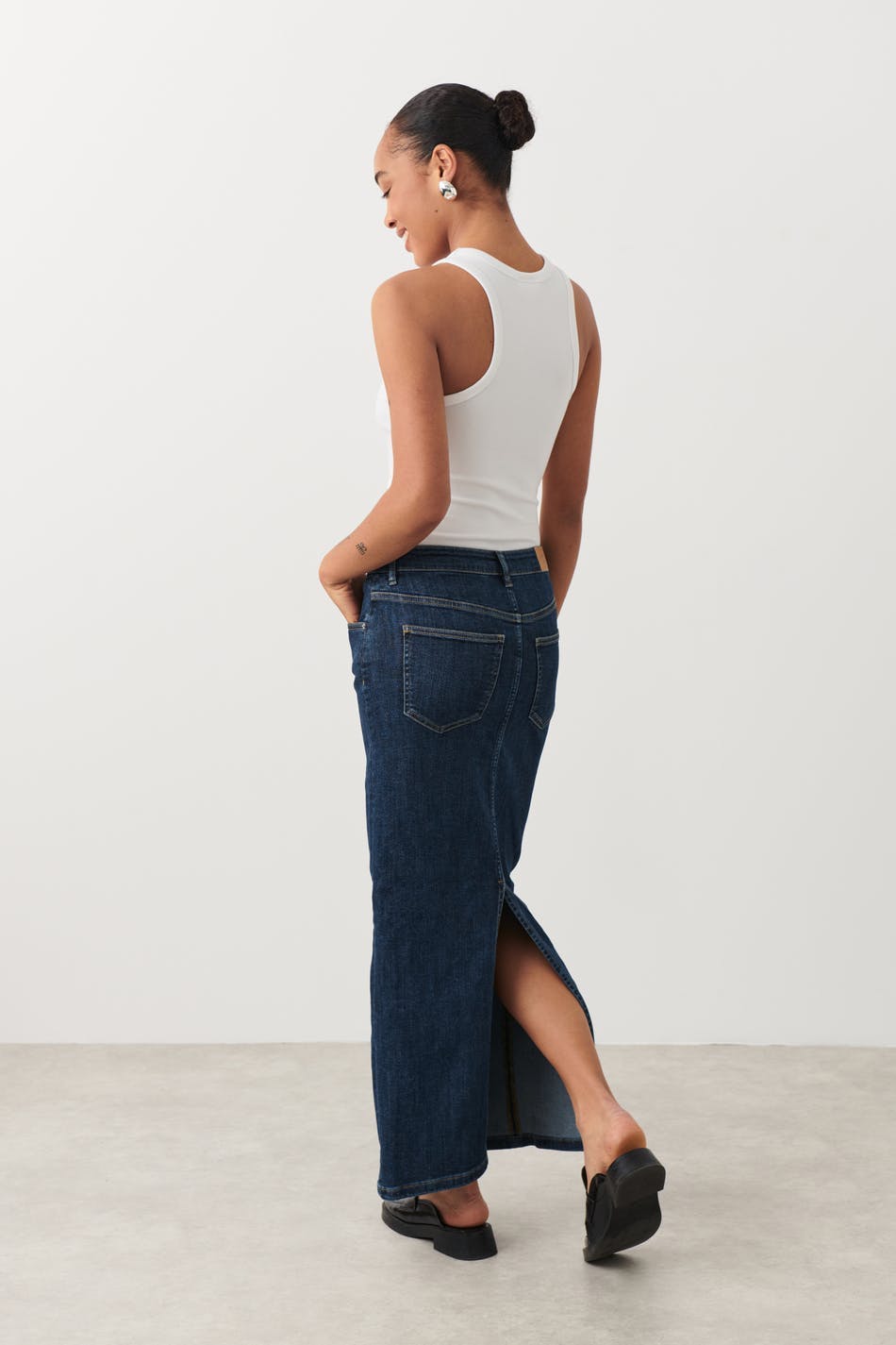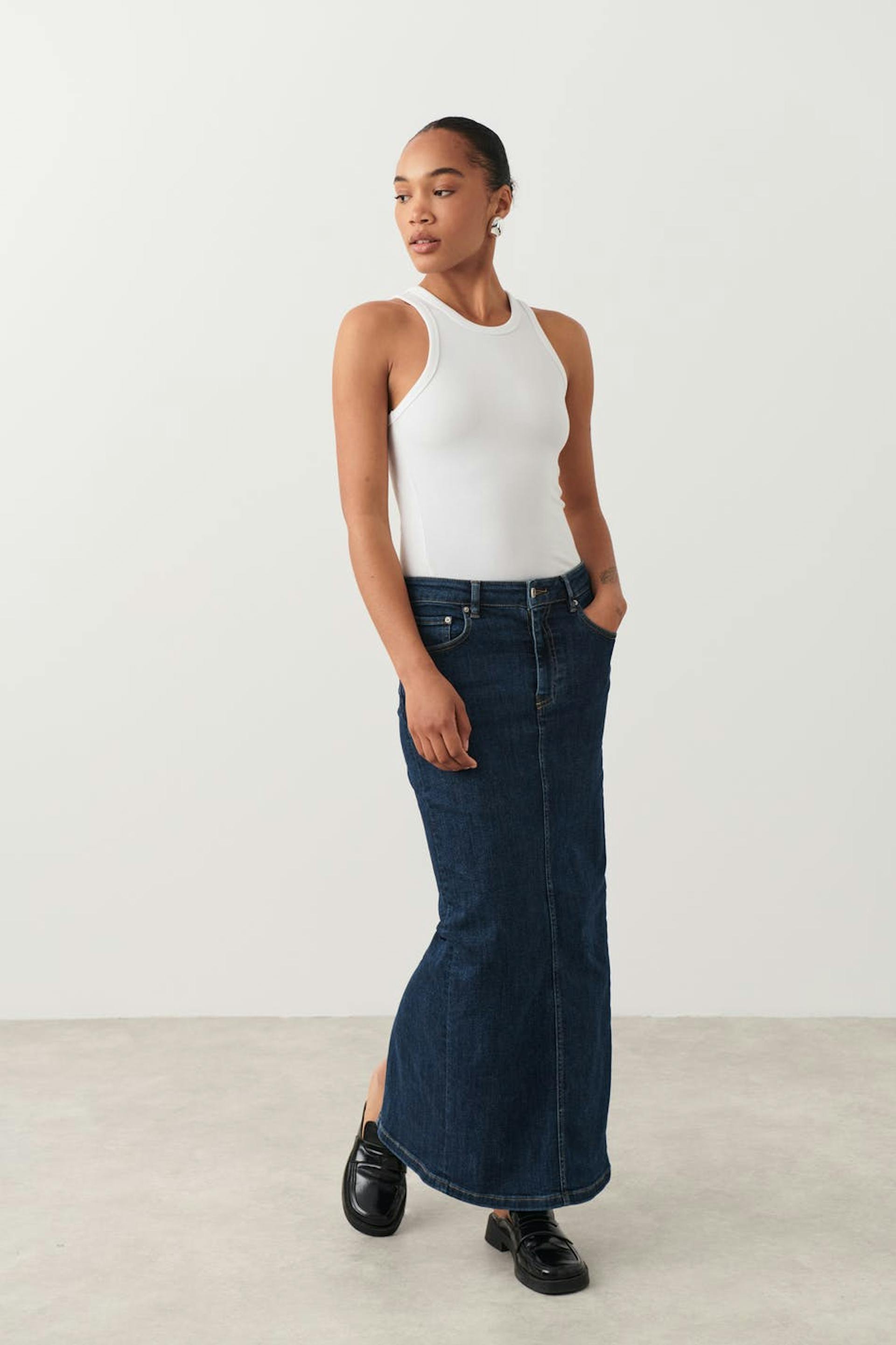Column denim skirt