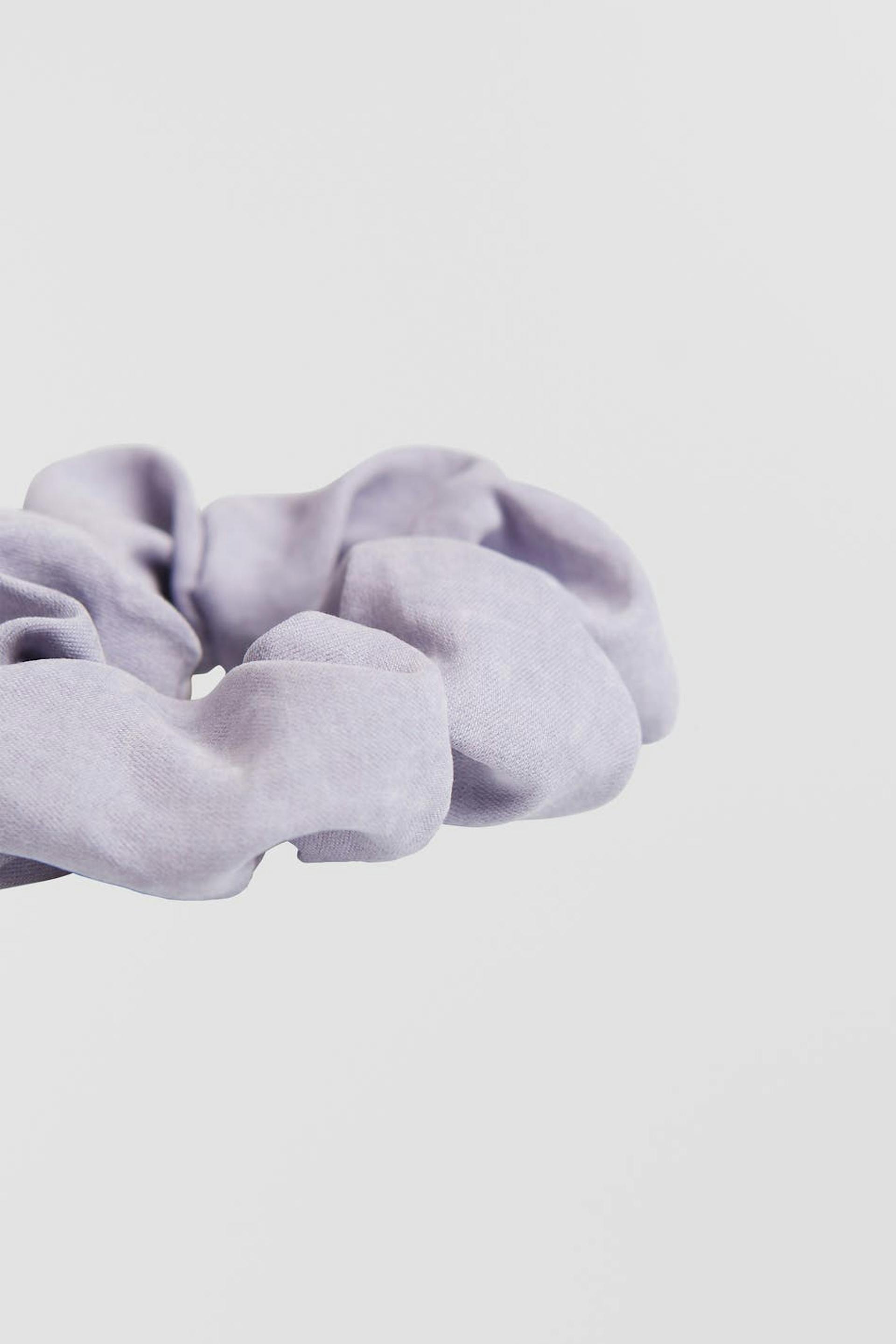 Haargummi mit einem elastischen Band. Das Accessoire ist lila.