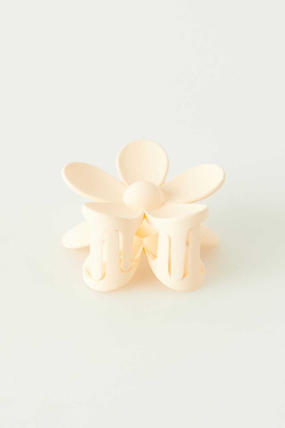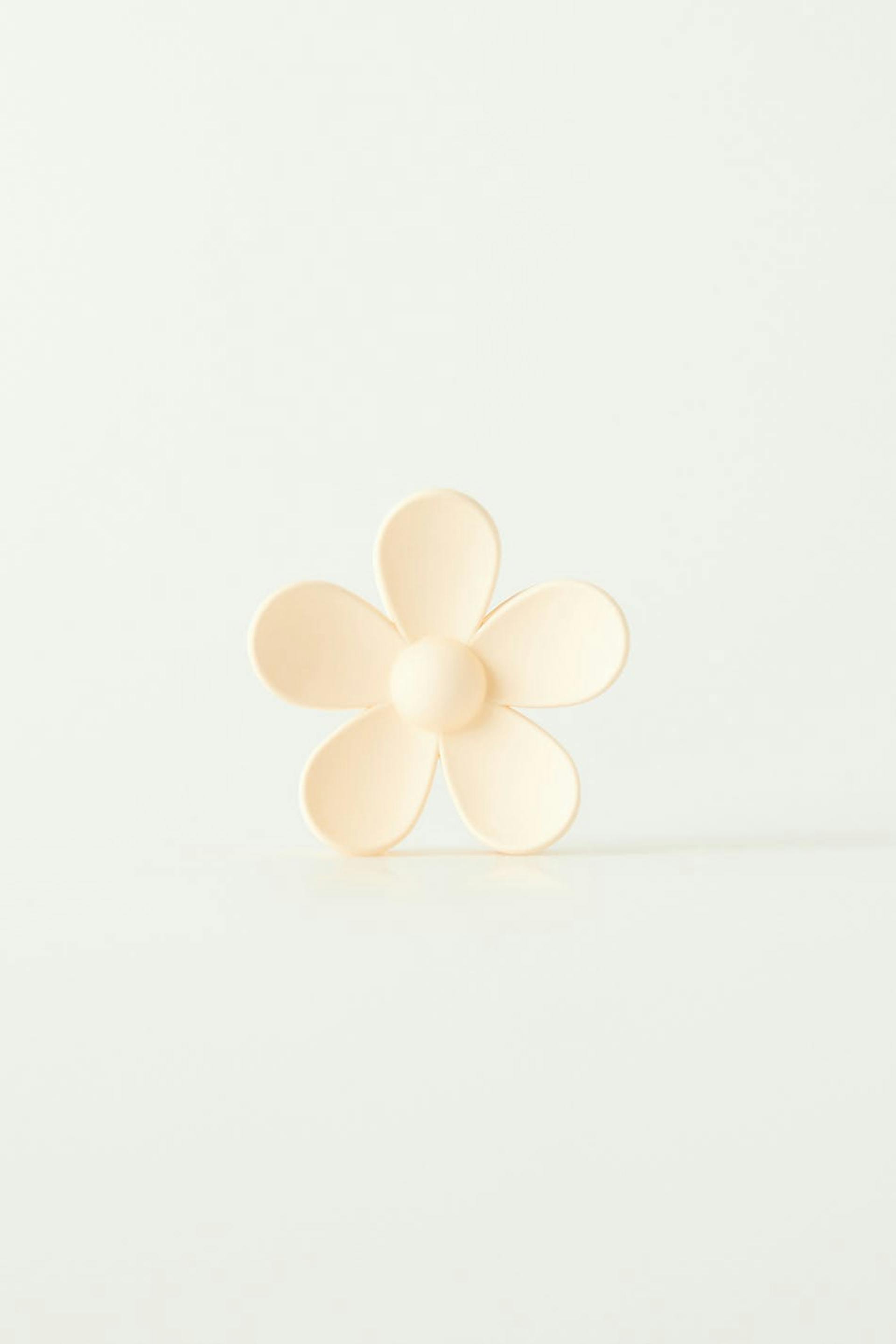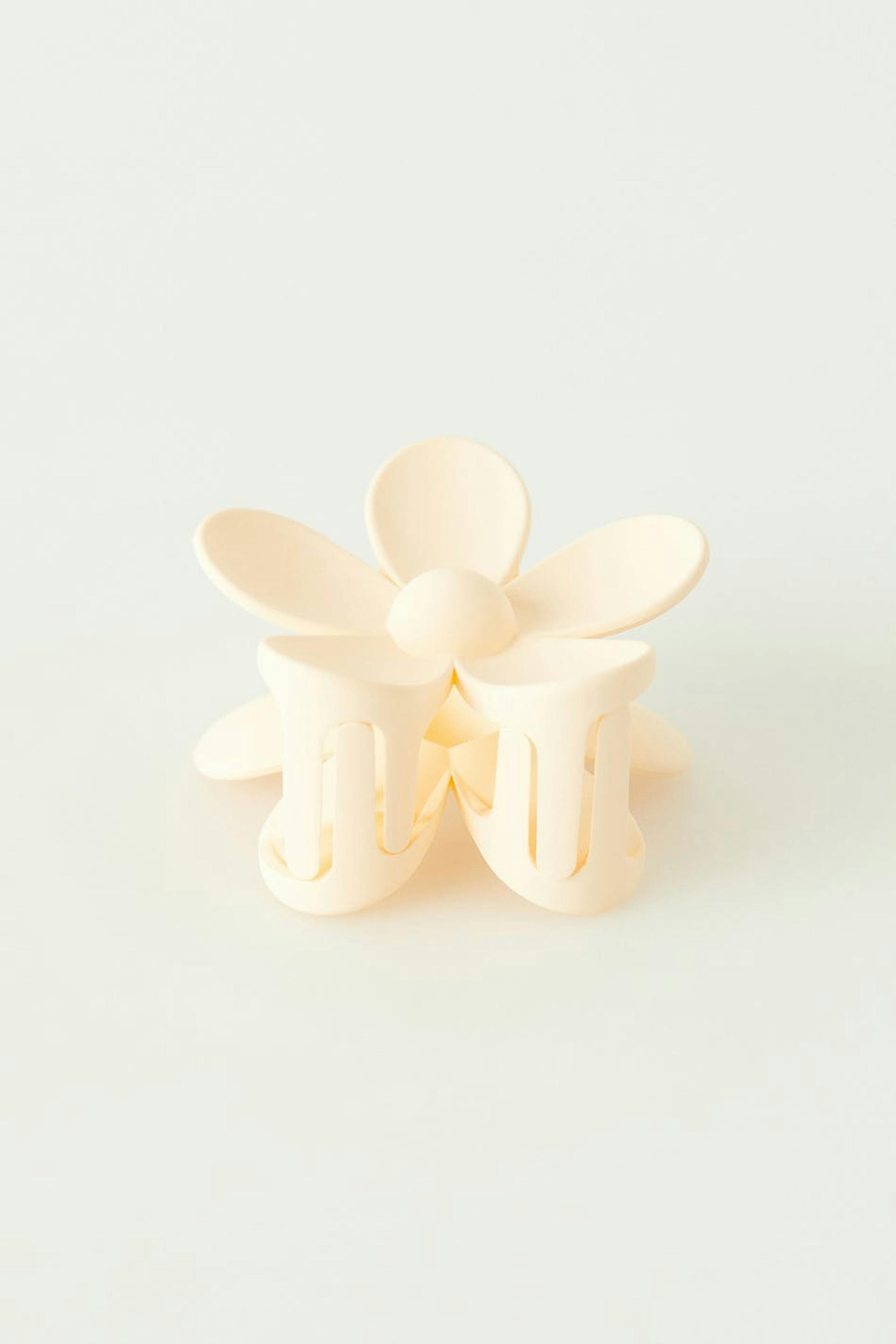 Haarklammer aus Plastik in Form einer Blume. Die Haarklammer ist weiβ.