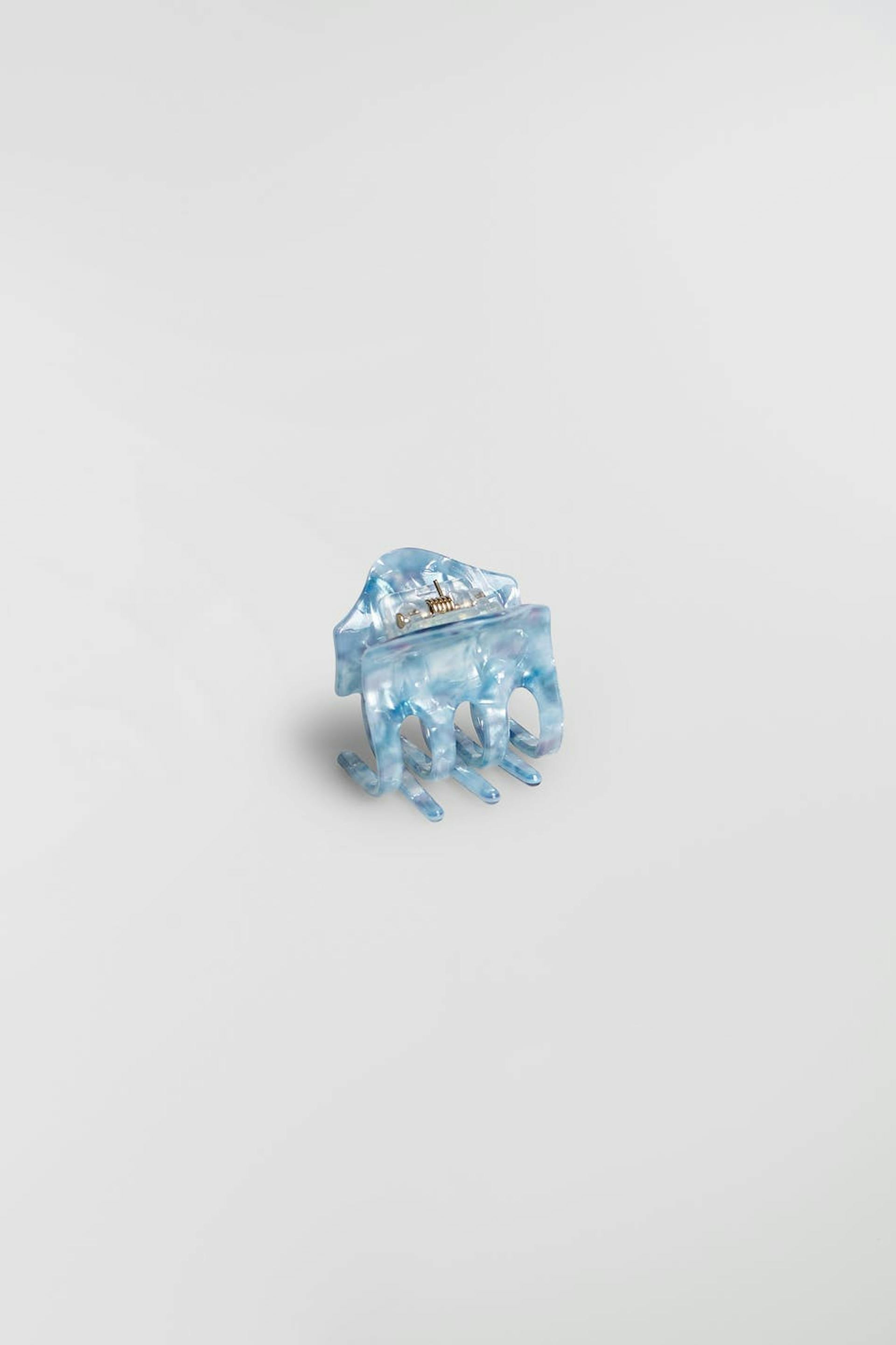 Kleine Haarklammer mit schönem Muster. Die Haarklammer ist hellblau.