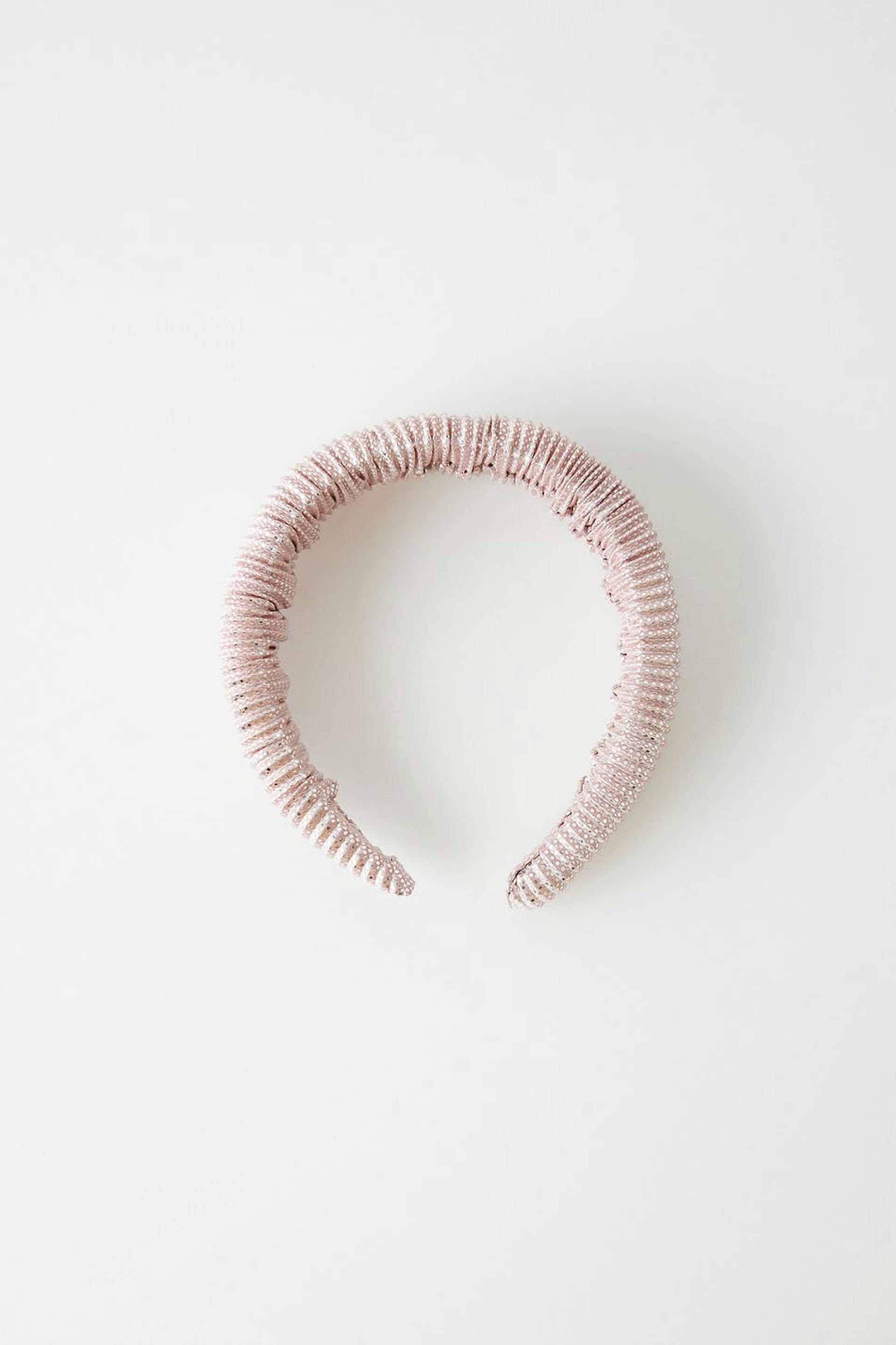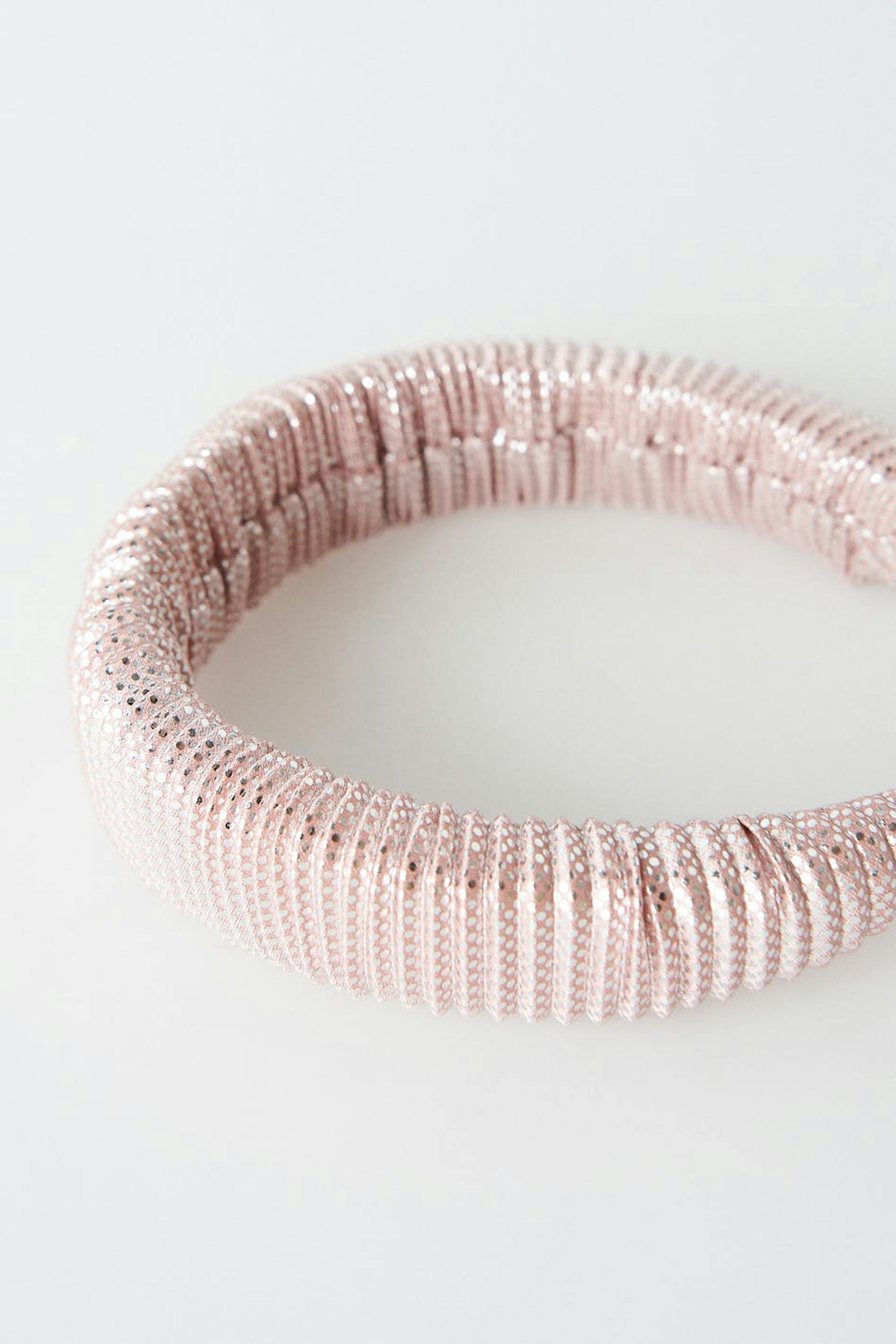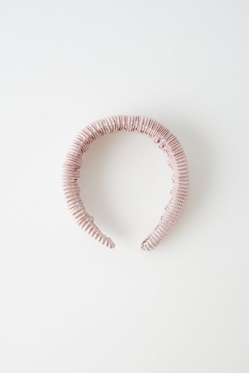 Haarreif aus Leinen mit Raffungseffekt. Der Haarreif ist hellrosa.
