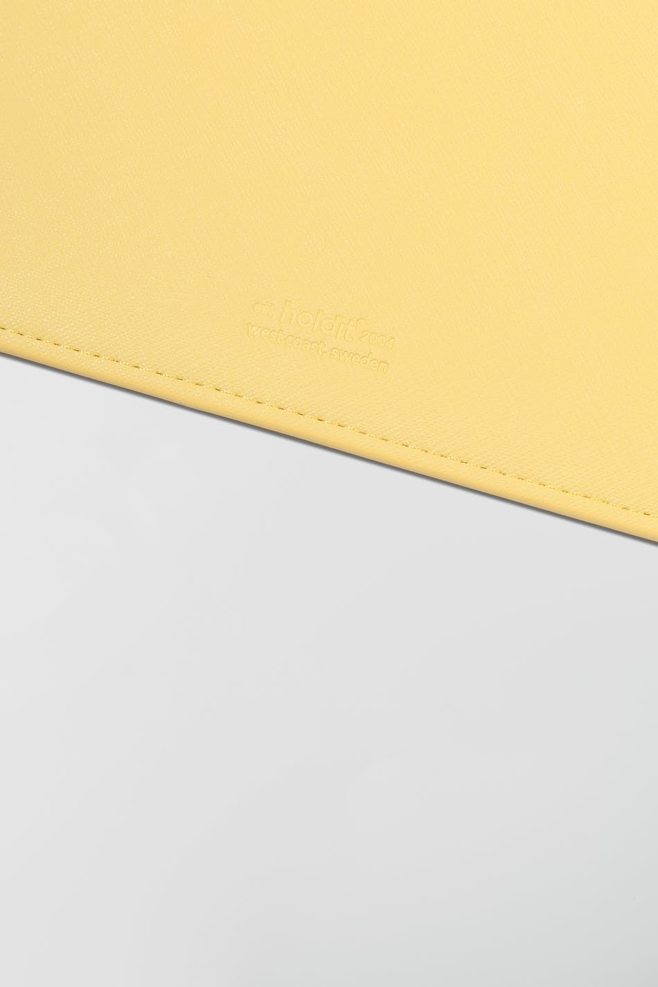 Laptoptasche von Holdit mit einem Reißverschluss oben. Die Hülle ist gelb. 16".