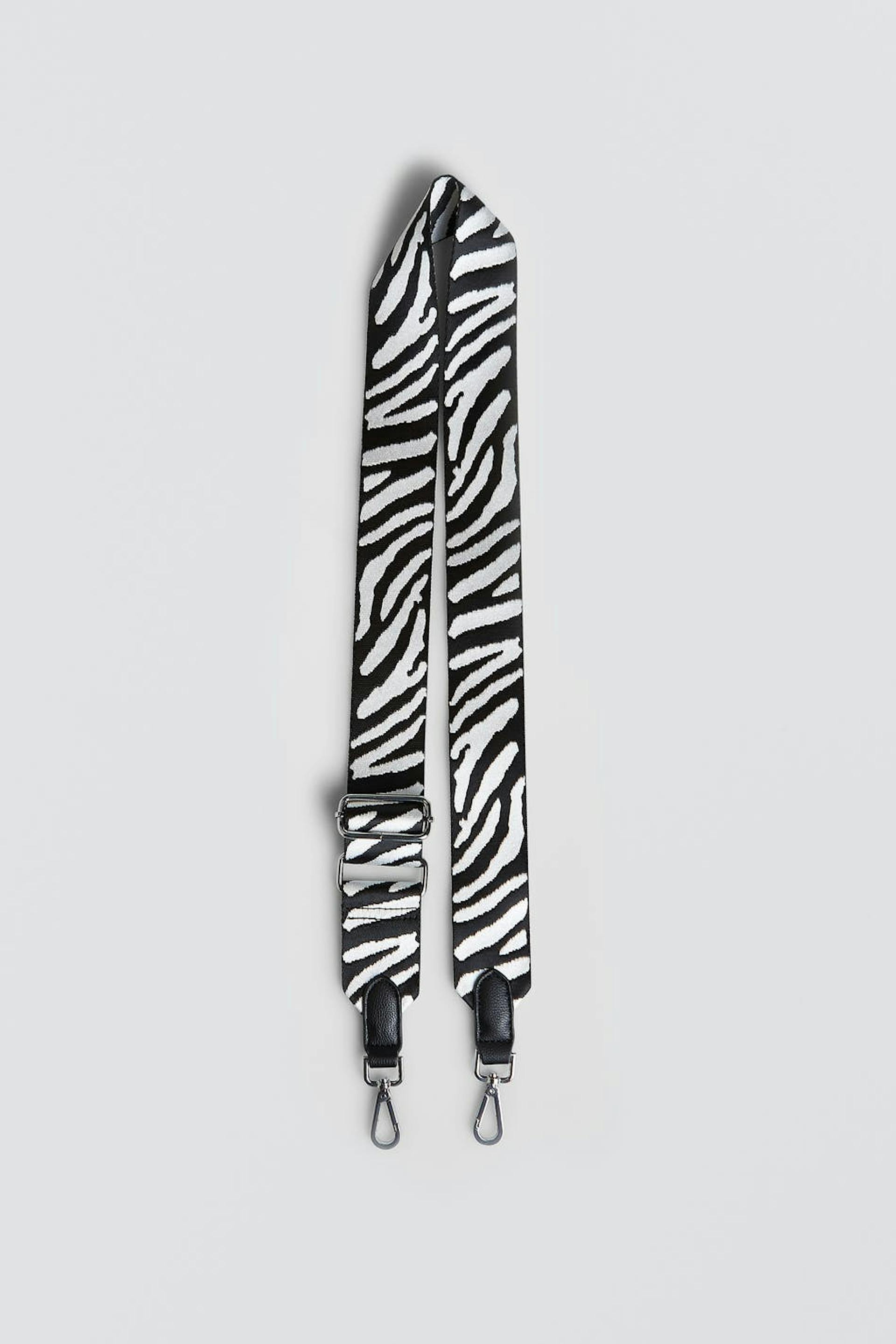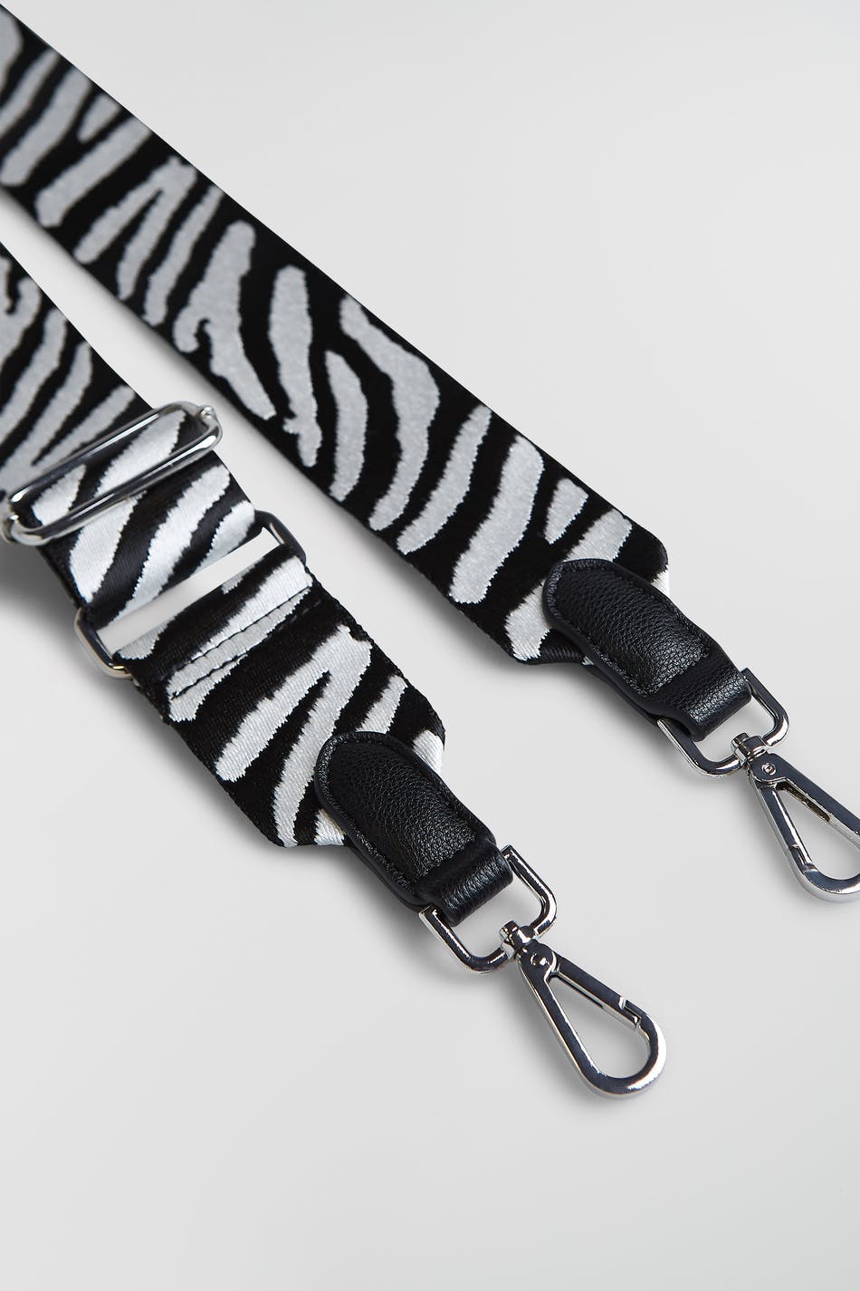 Zebra-gemusterter Schulterriemen. Der Träger ist einstellbar.