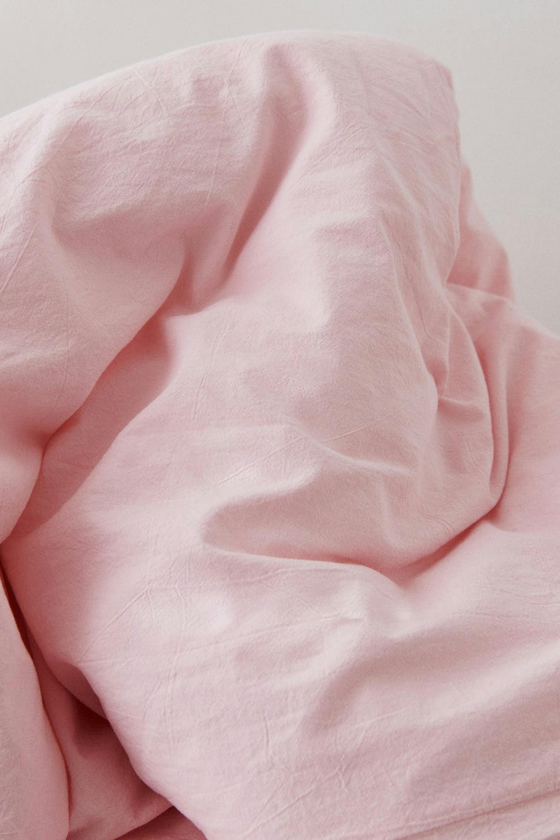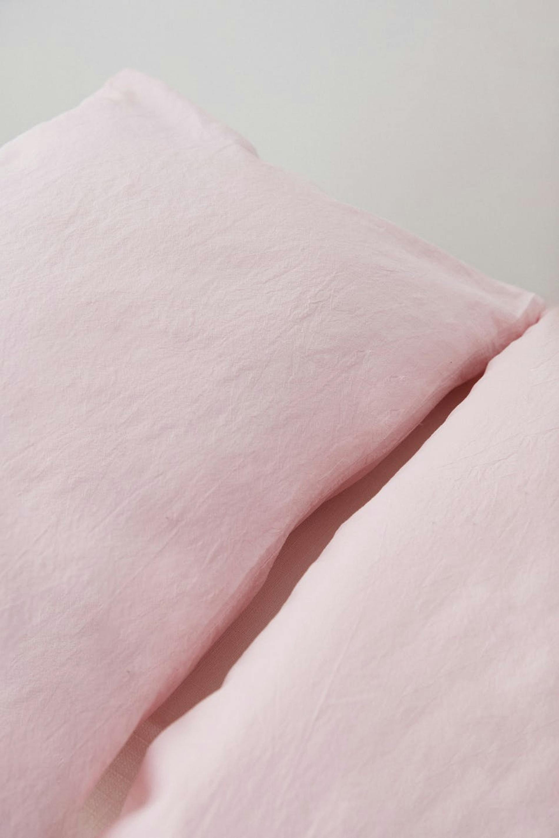 Bettbezug-Set von Gina Home mit einem weichen Material aus Baumwolle. Das Bettbezug-Set ist rosa und hat ein einzelnes Laken mit einem passenden Kissenbezug.