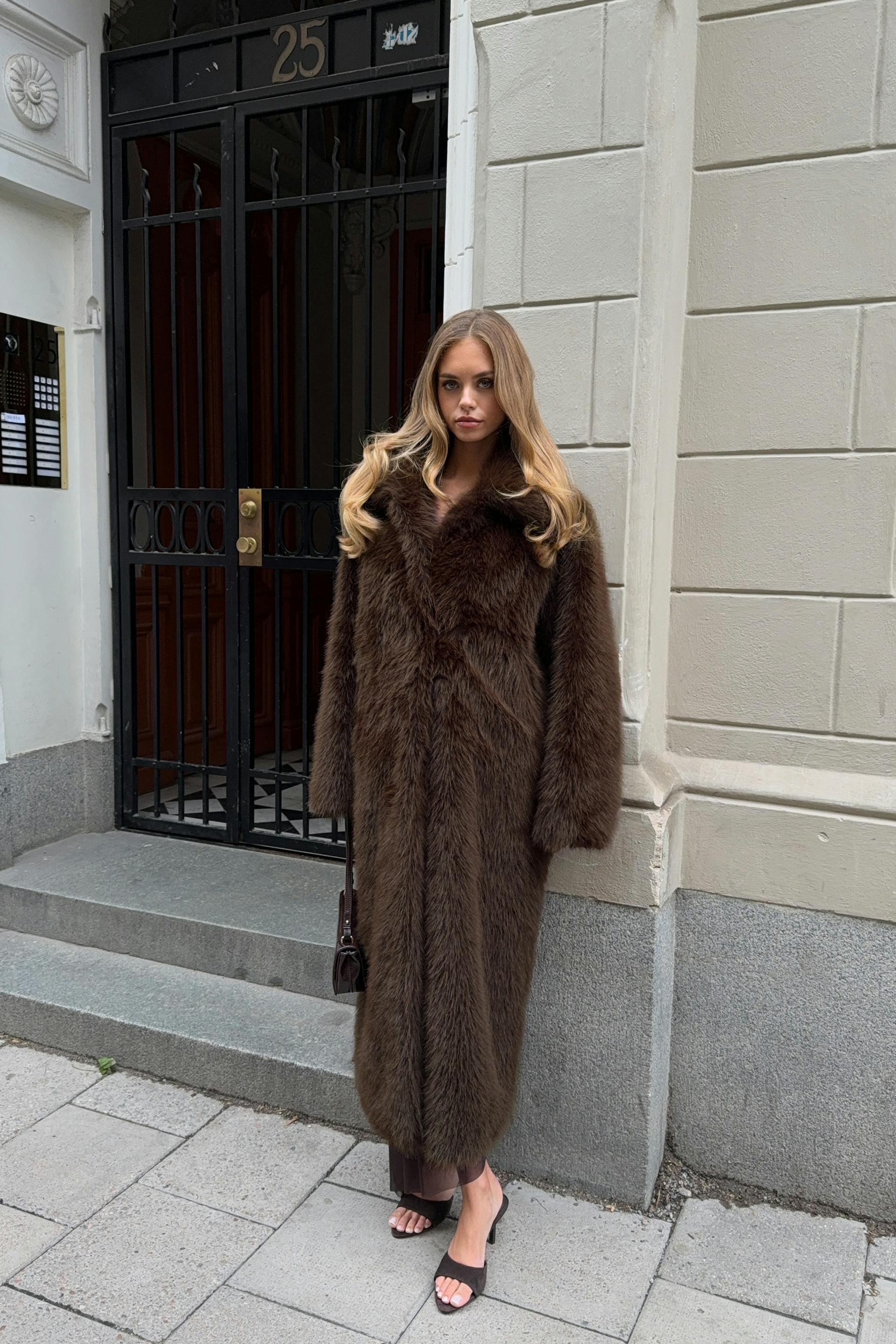 Faux fur long coat