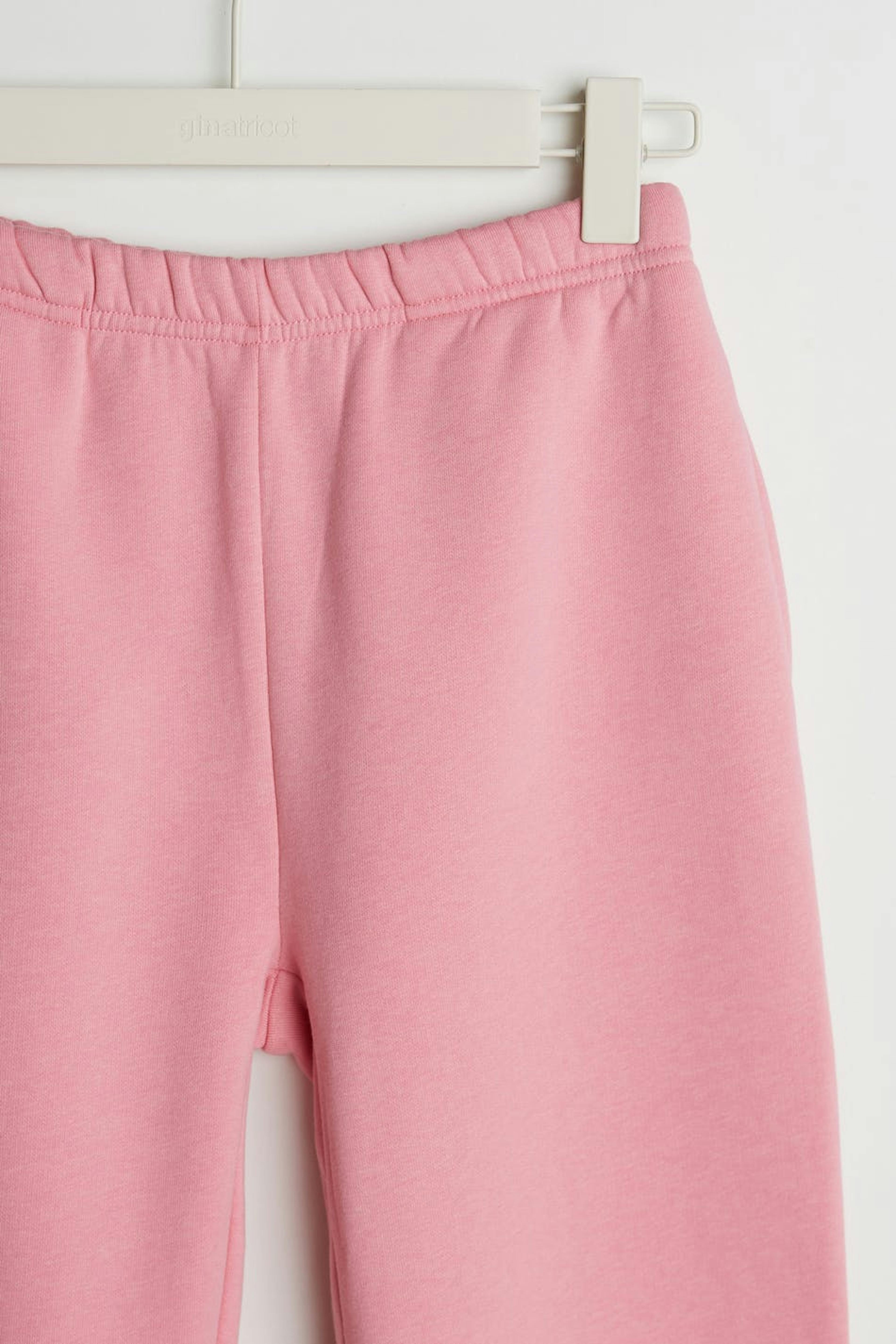 Zierliche Jogginghose mit einer normaler Passform. Die Hose ist rosa und hat elastische Gurte in der Taille und am Beinende. Ideal bei einer Körpergröße bis 1,60 m.