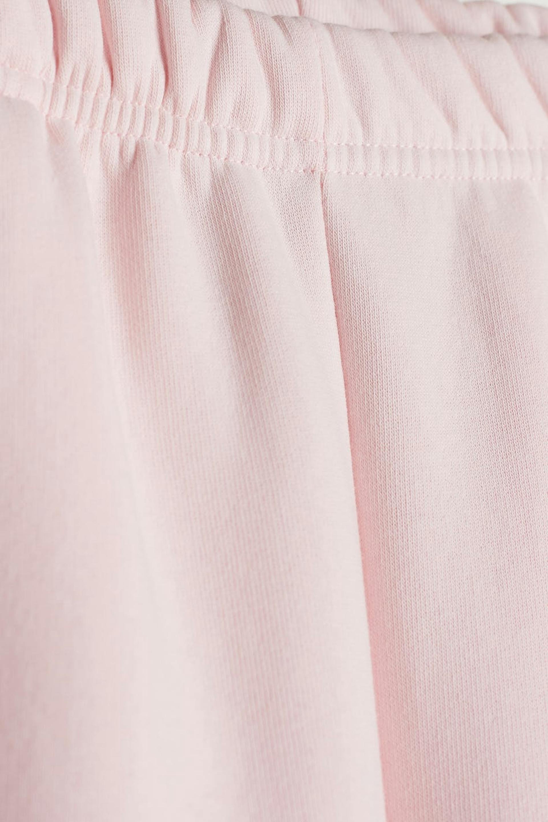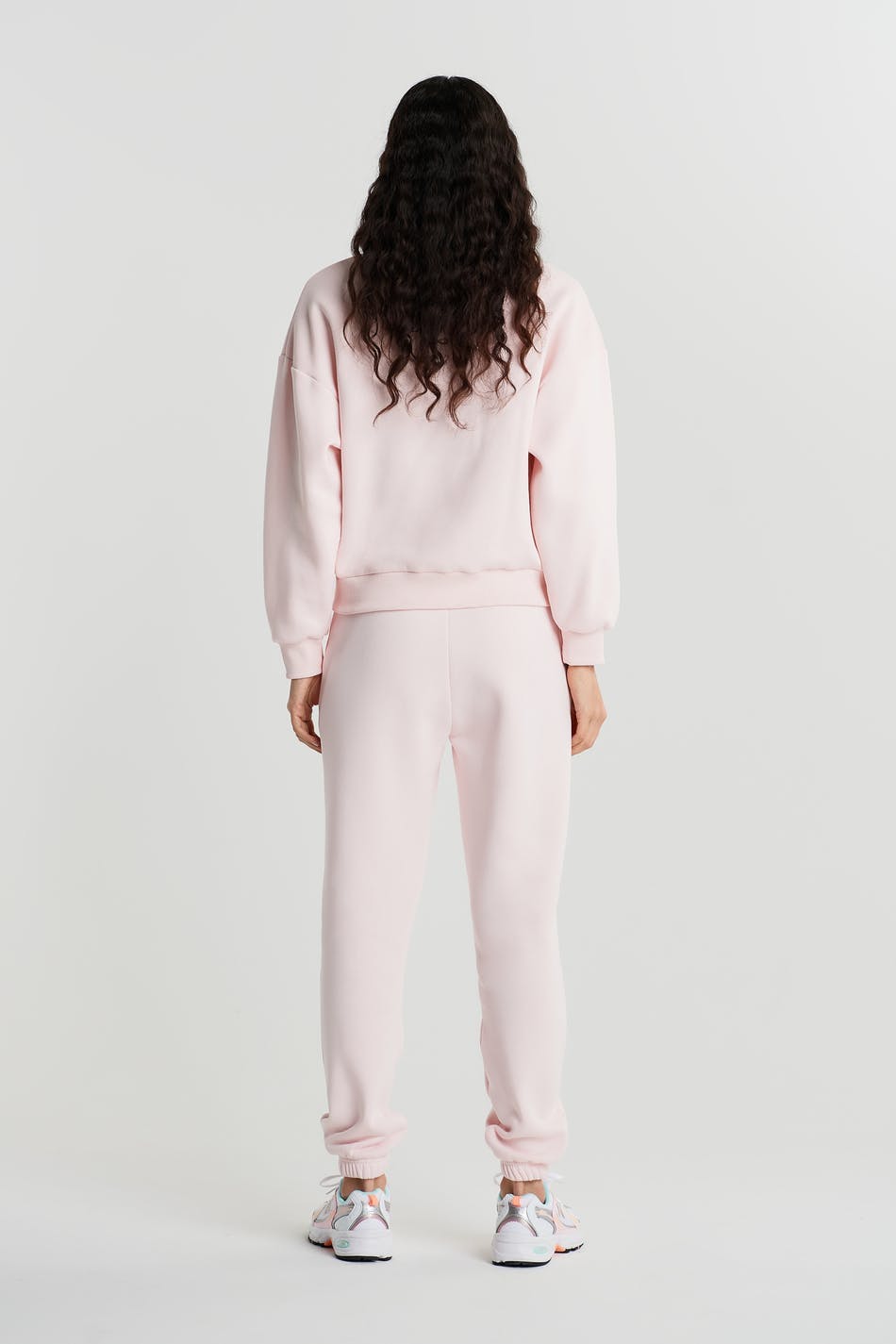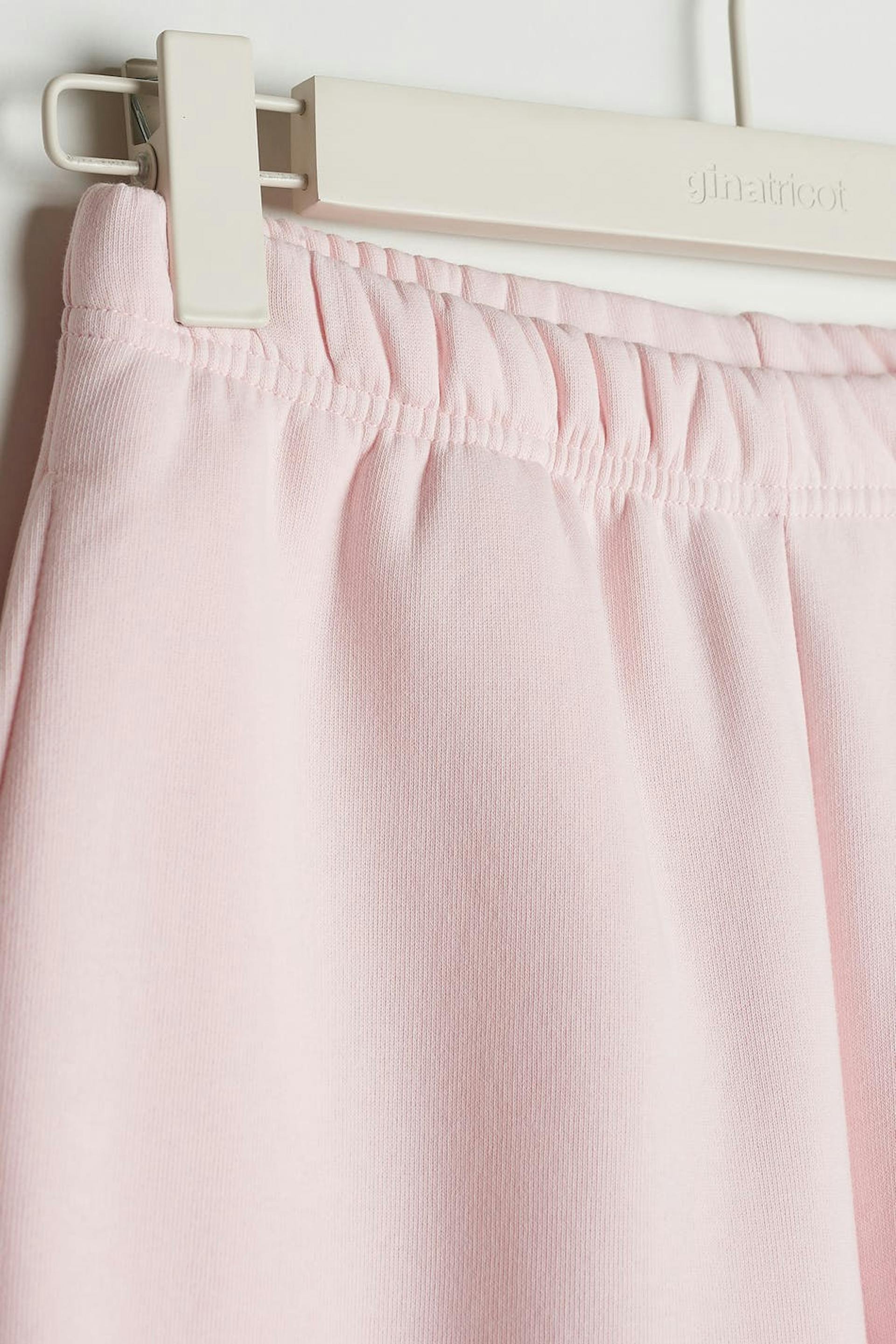 Jogginghosen mit einer normaler Passform. Die Hosen sind rosa und haben ein Gummiband in der Taille und am Beinende.