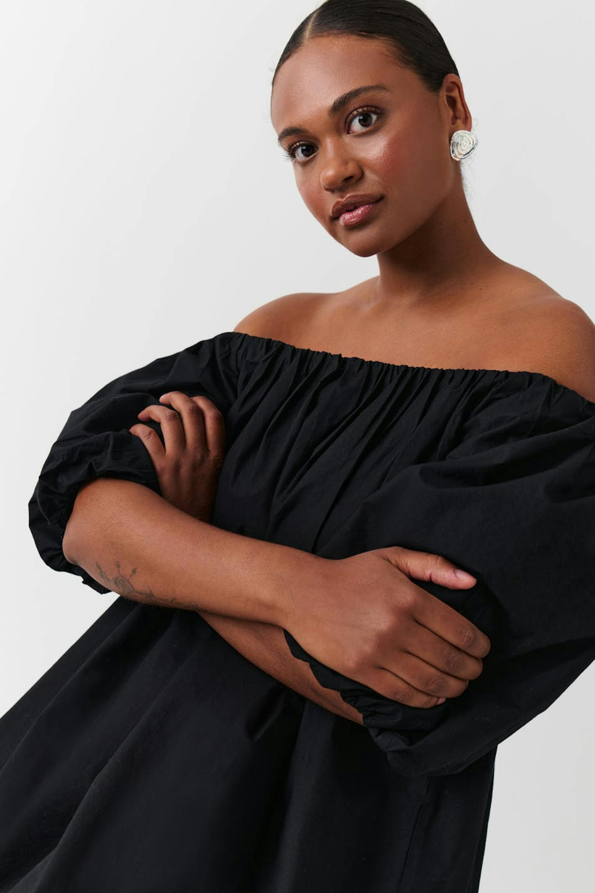 Off shoulder poplin dress