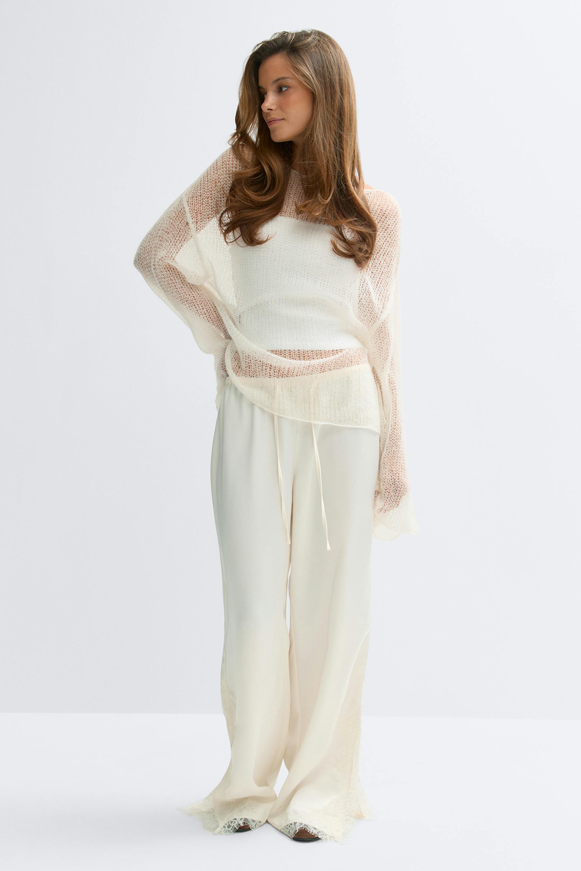 Sleeve style: Long sleeve Neck: Boatneck Fit: Generous Description: Sheer, Wash in a laundry bag, Wash with similar colours