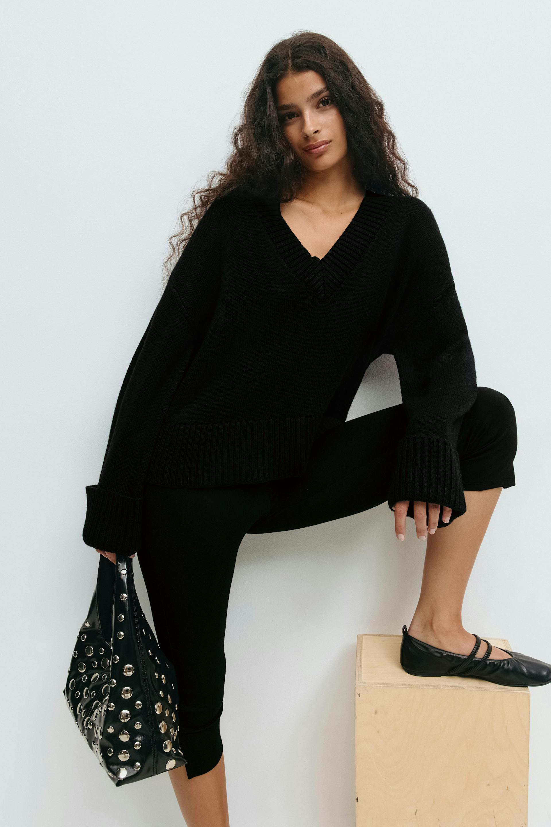 V-neck knitted sweater
