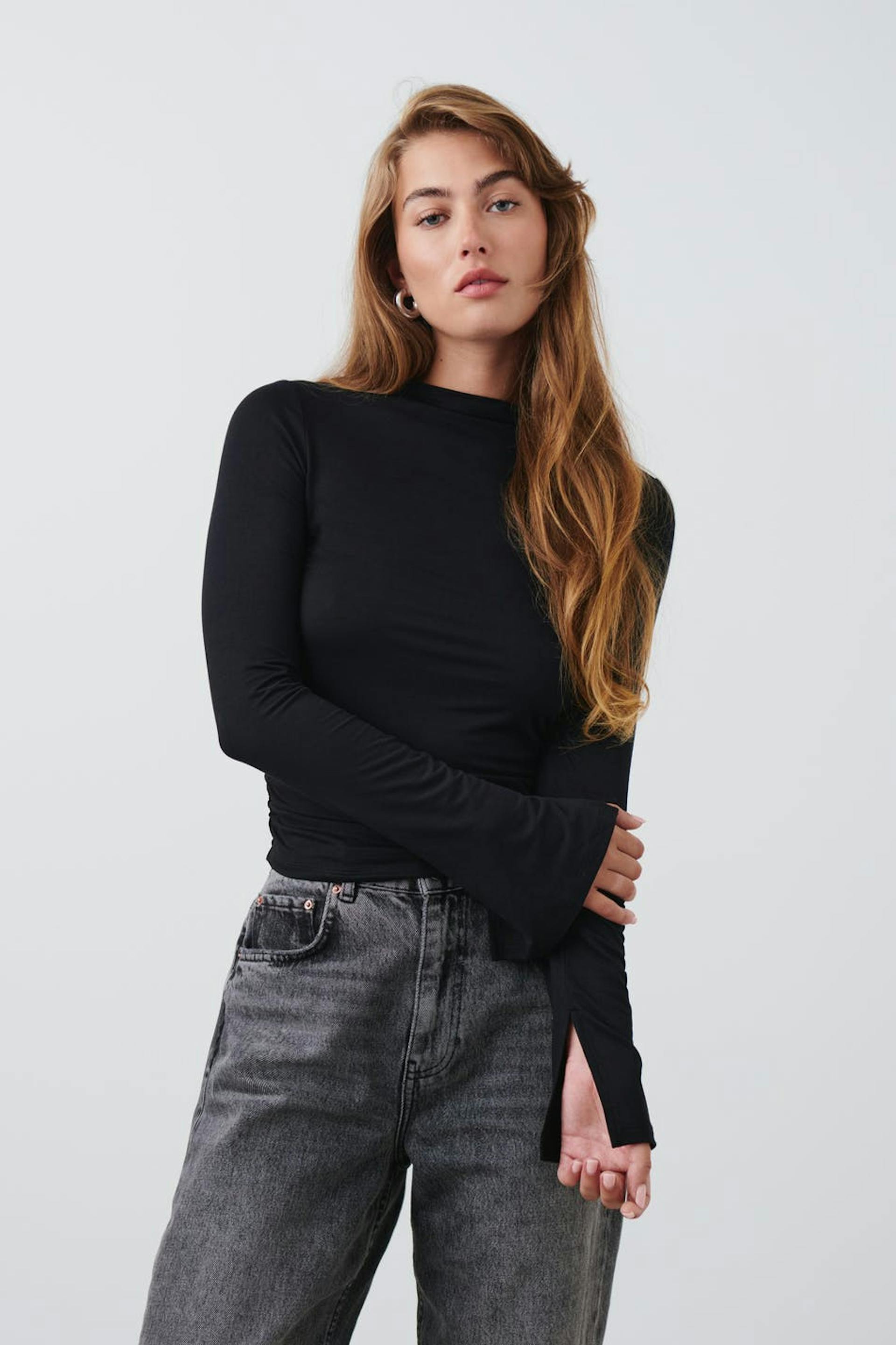 Soft touch funnel neck ls top