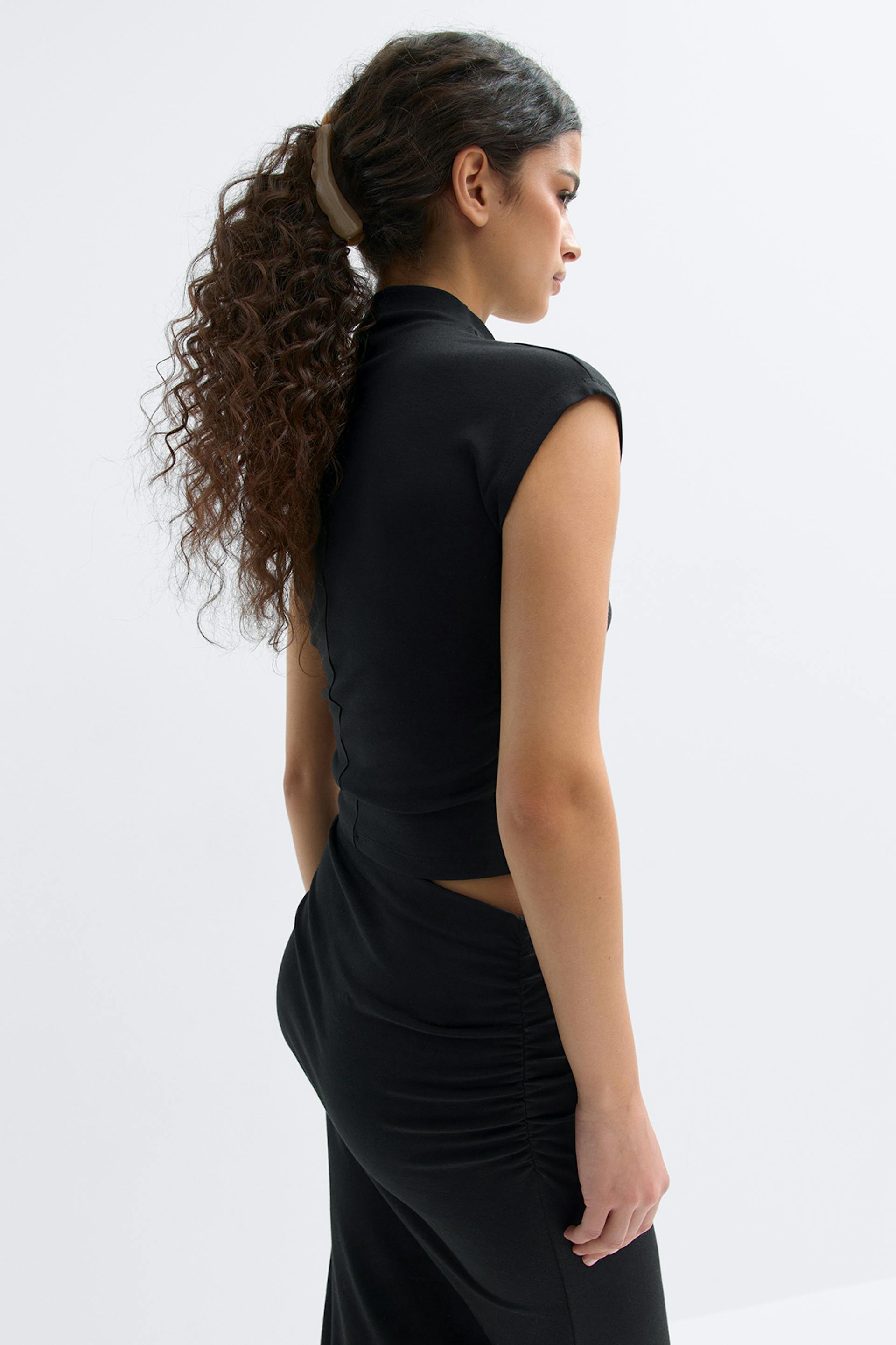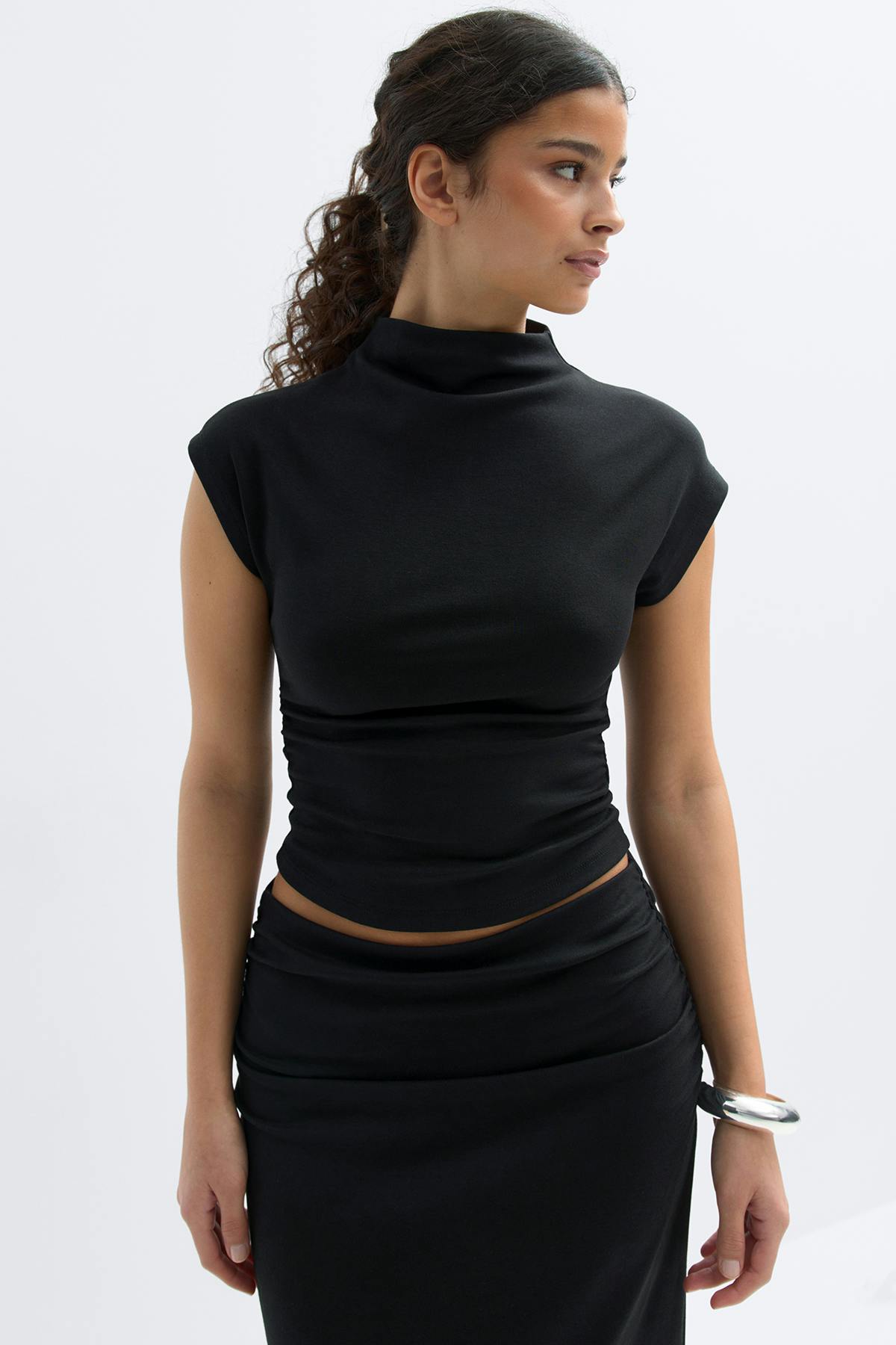 Ruched funnel neck top