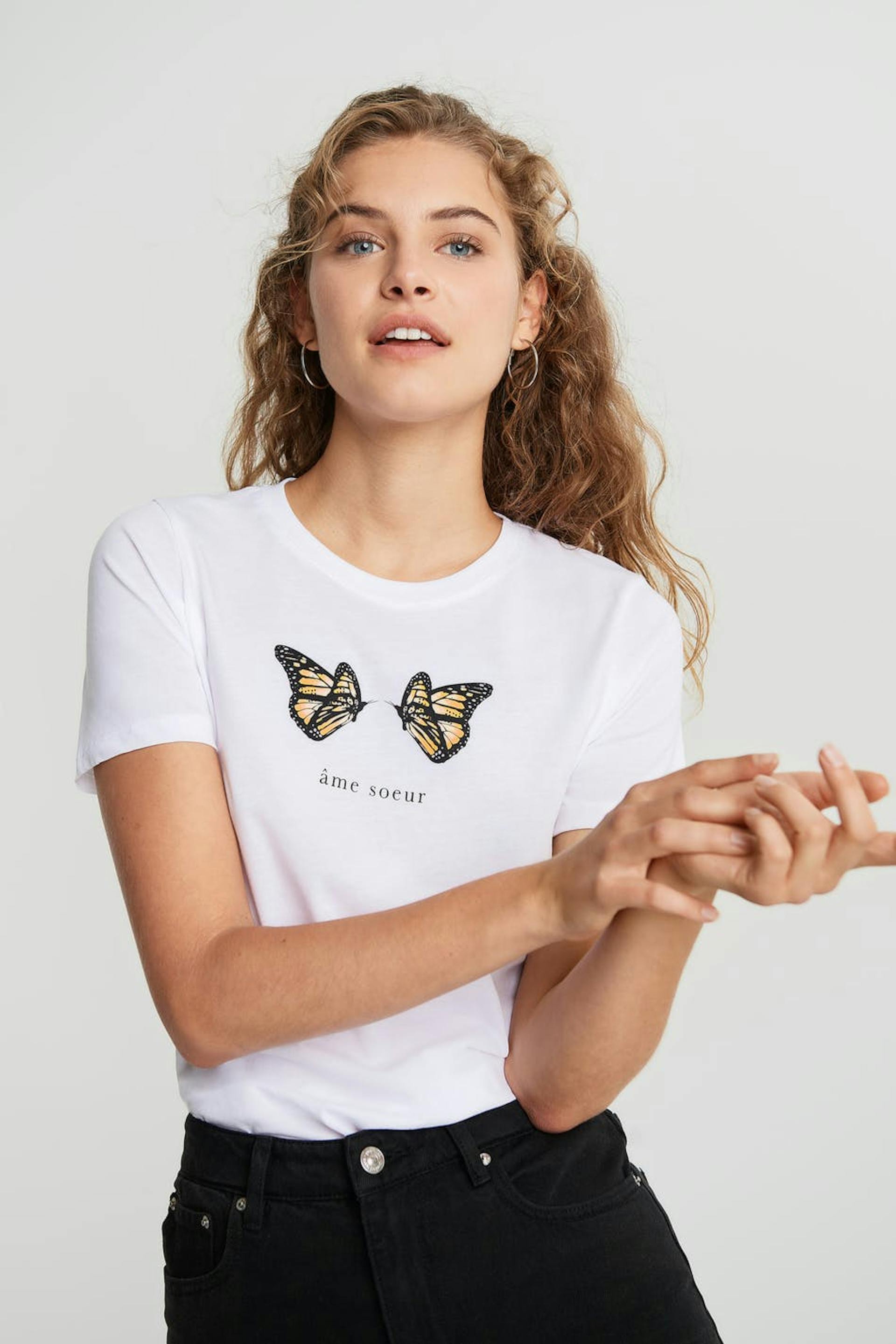 Top mit einer normaler Passform. Das Top ist weiβ und hat einen Rundhalsausschnitt. Es hat eine schmale gerippte Manschette.