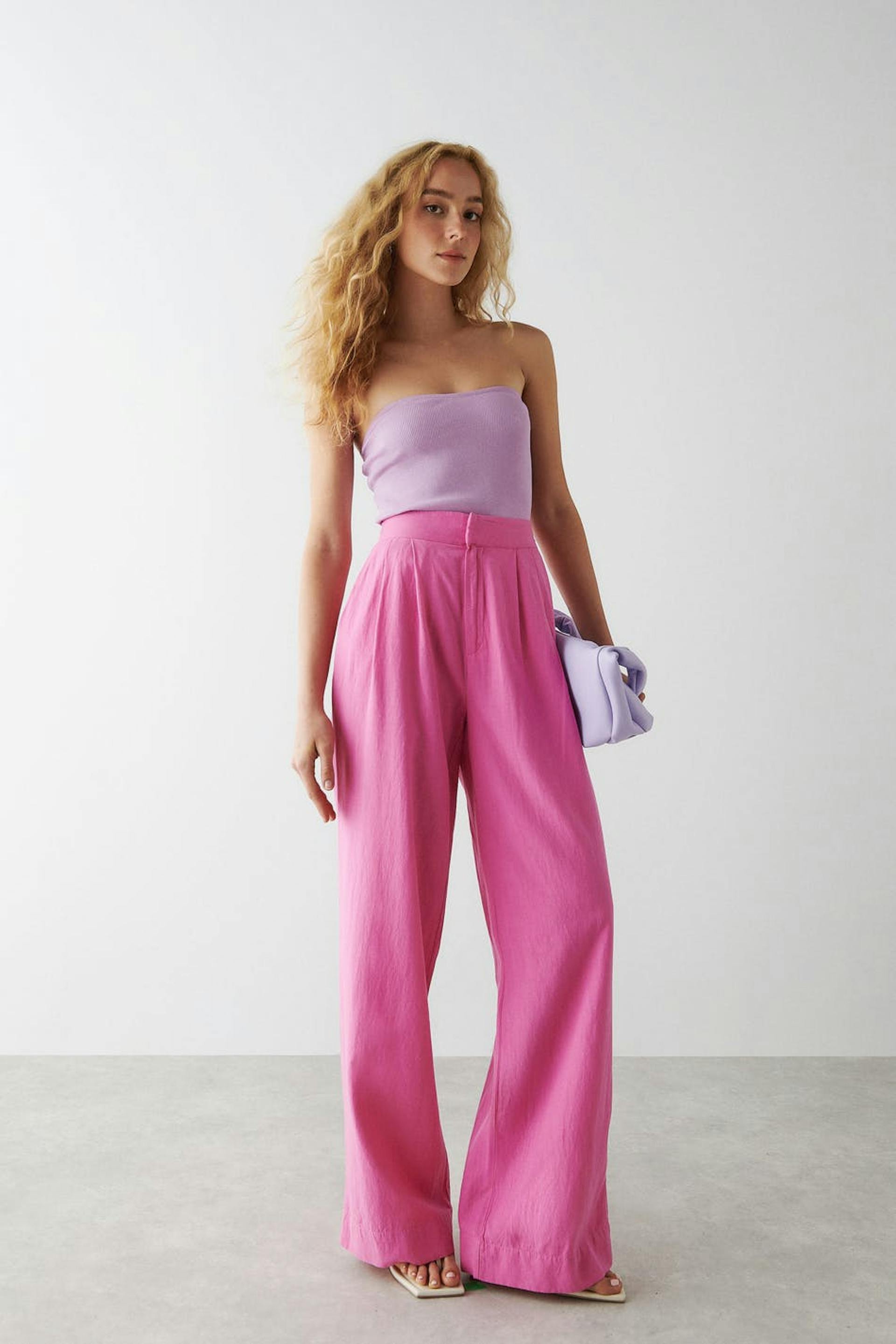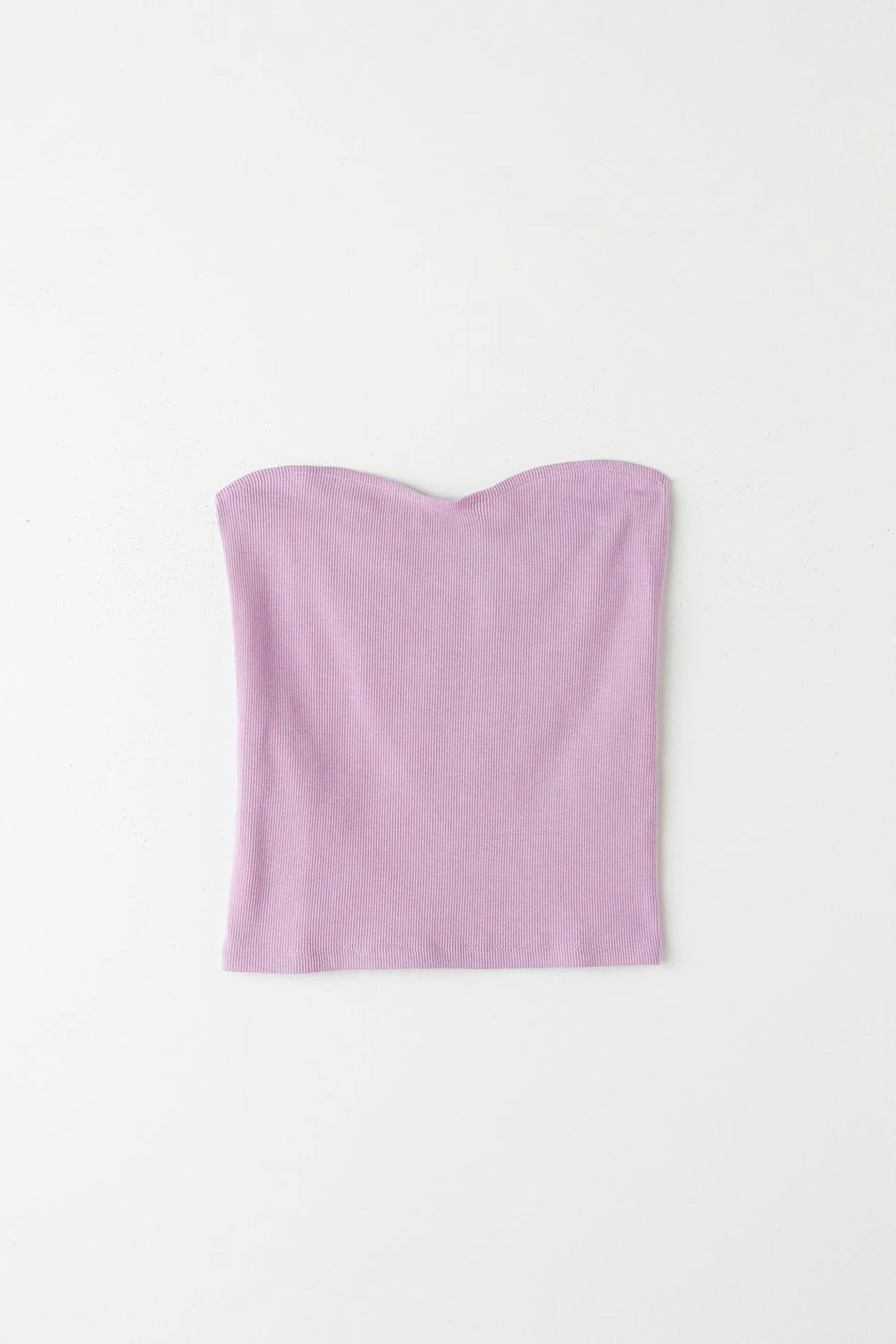 Röhrenoberteil aus Jersey mit Herzausschnitt. Das Oberteil ist rosa und hat innere Silikonverkleidung mit elastischem Klebeband.