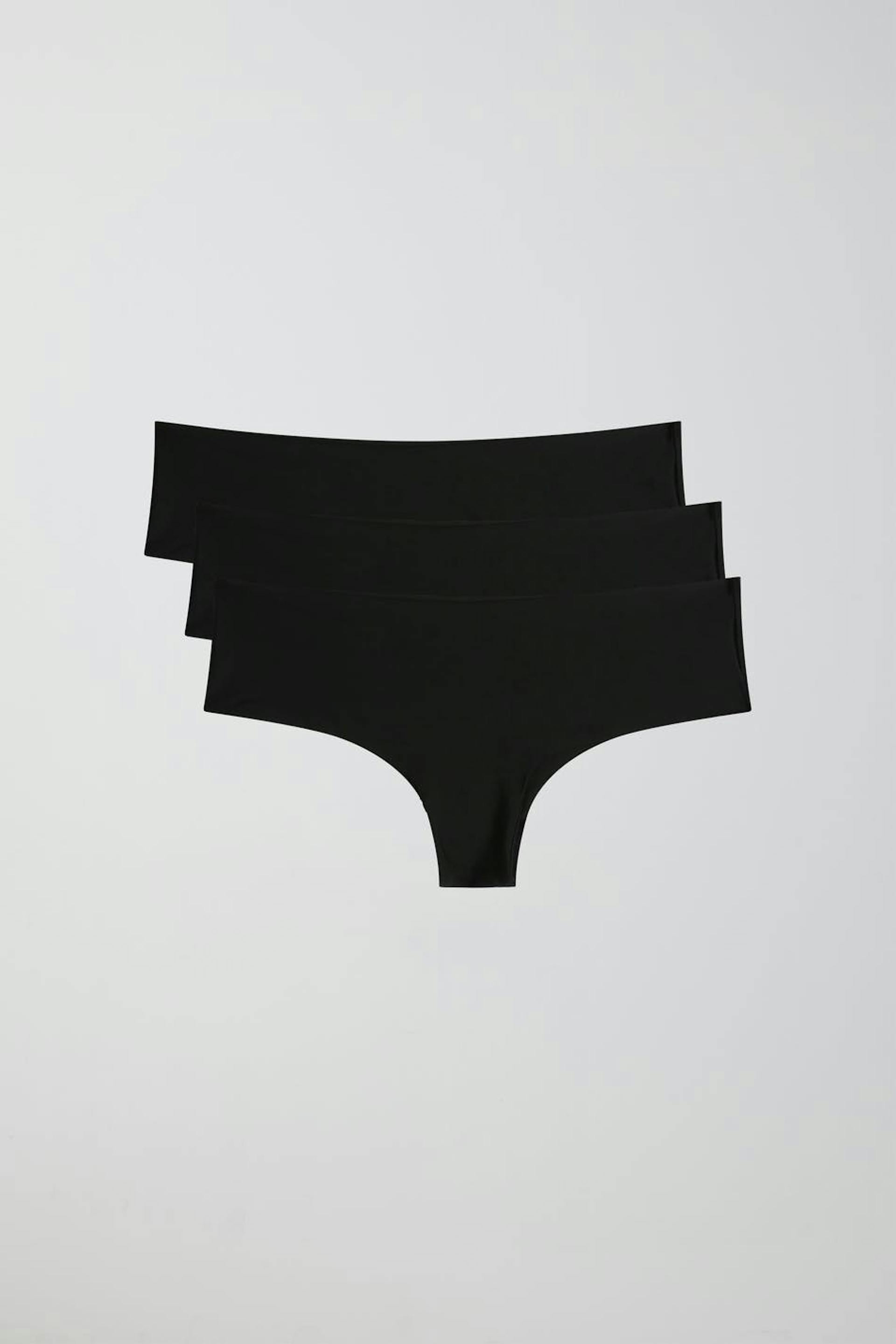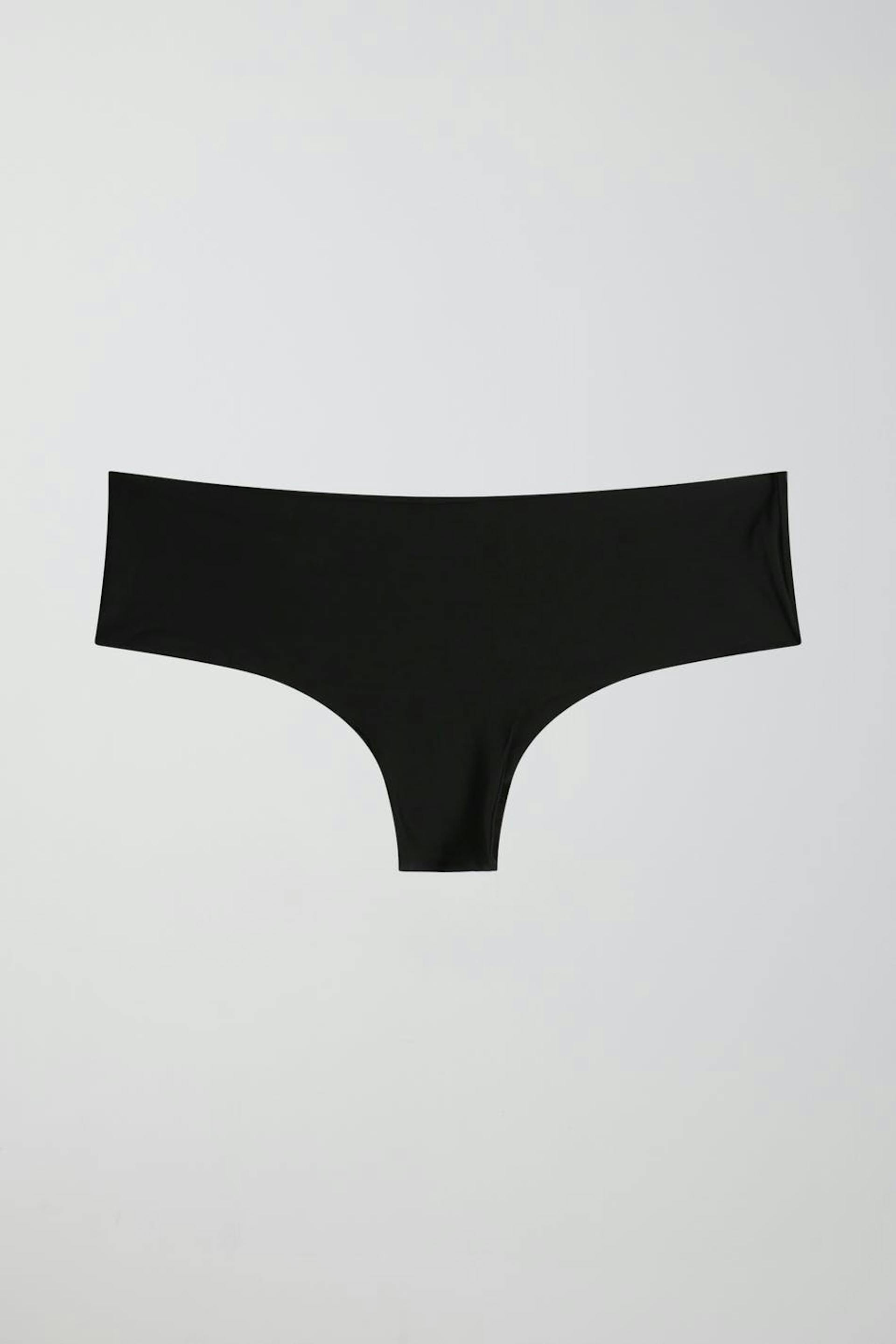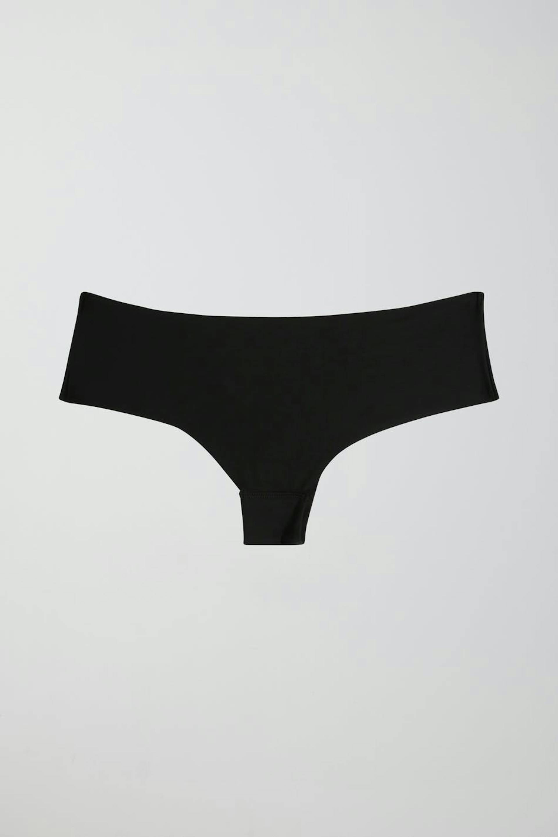 Brazilian Slips aus Mikrofaser mit rohen Kanten. Die Brazilian Slips sind schwarz und haben Schrittfutter.