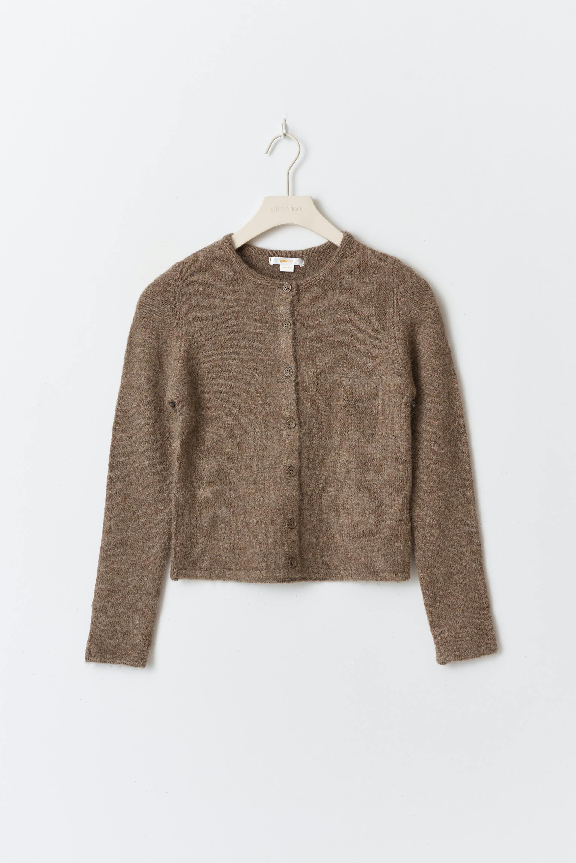 Strickjacke aus Wollmischung mit Knöpfung vorne. Der Cardigan ist beige und hat normale Passform. Er hat Rundhalsausschnitt und langen Ärmel.
