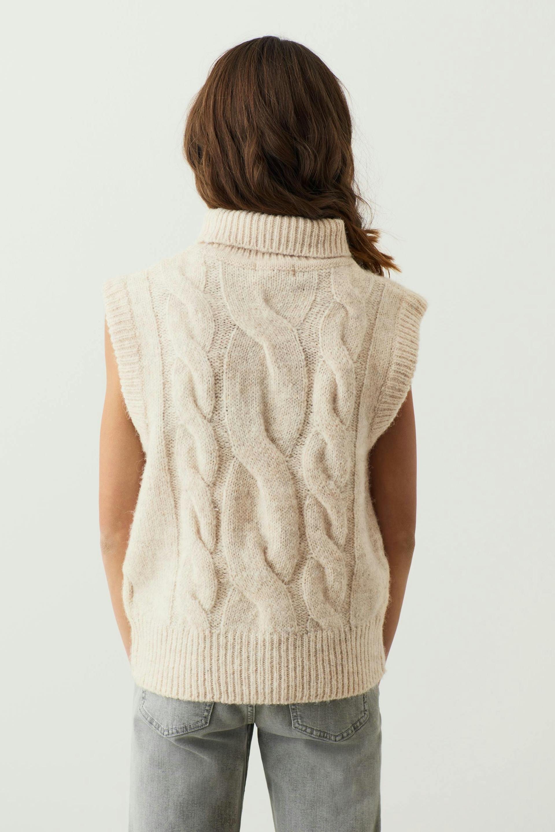 Im Zopfmuster gestrickte Weste von Gina Tricot Young mit Polo-Kragen. Die Weste ist weiβ und hat normale Passform.
