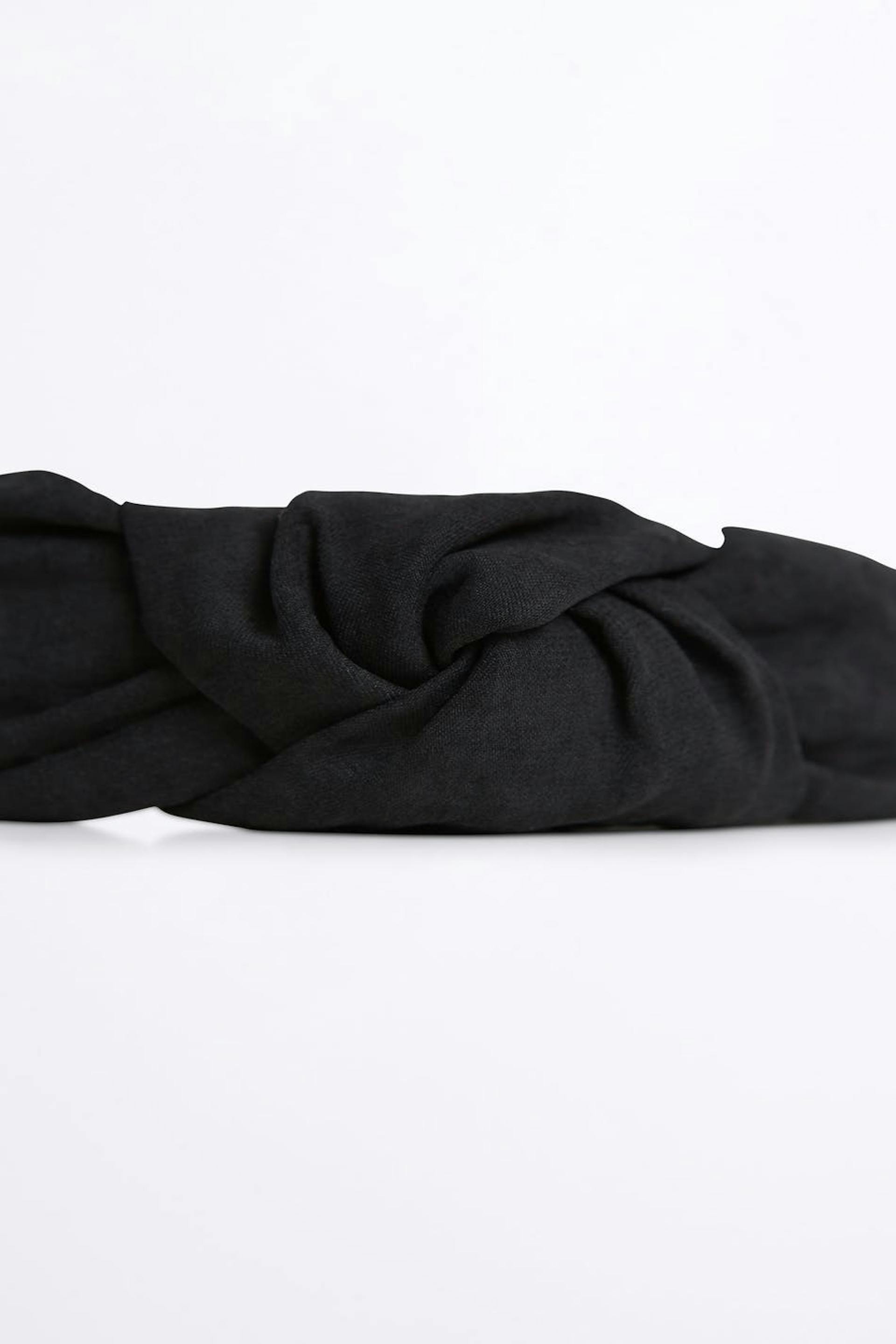 Haarreif mit einem Knoten-Detail oben. Der Haarreif ist schwarz.