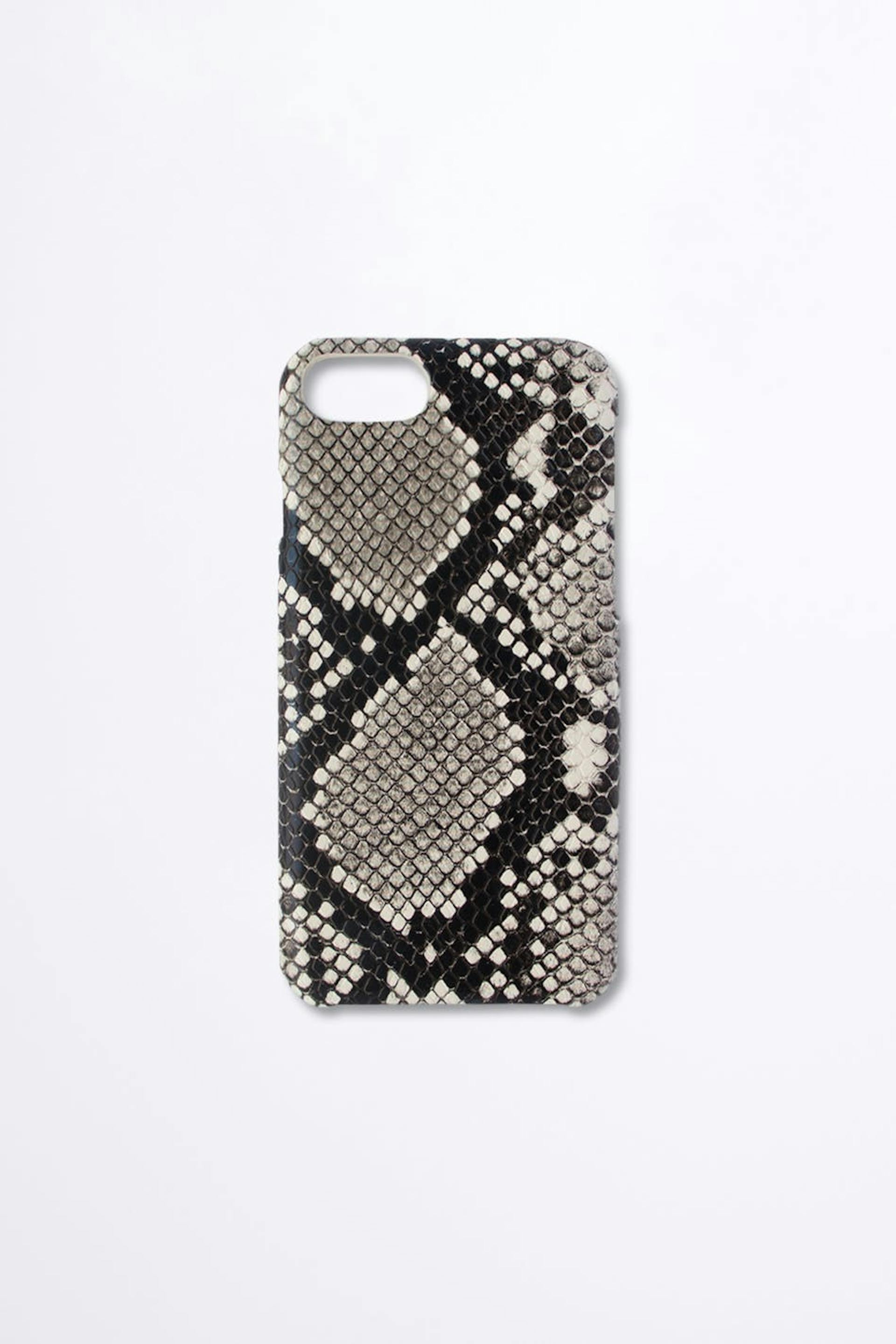 Smartphone-Hülle von Printworks mit Schlangenmuster. Die Smartphone-Hülle ist beige und schwarz. Iphone 7/8.