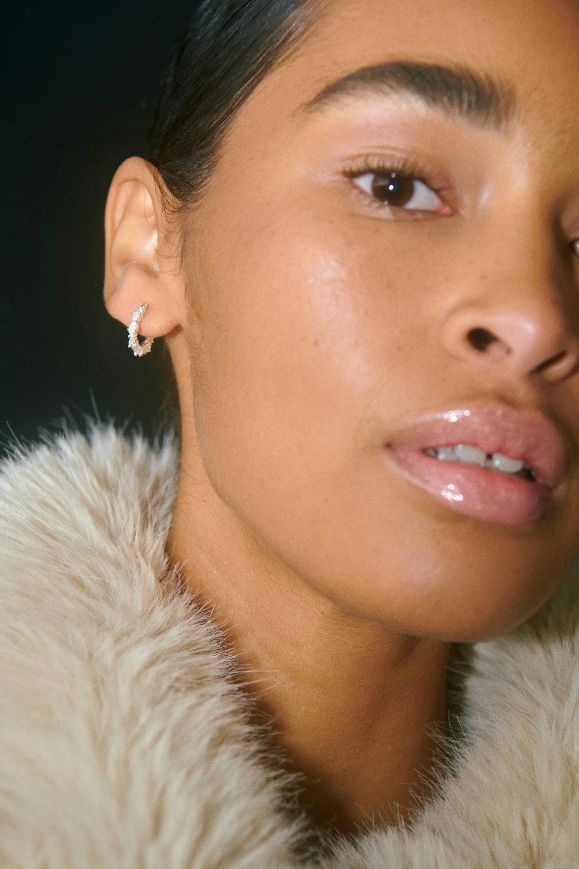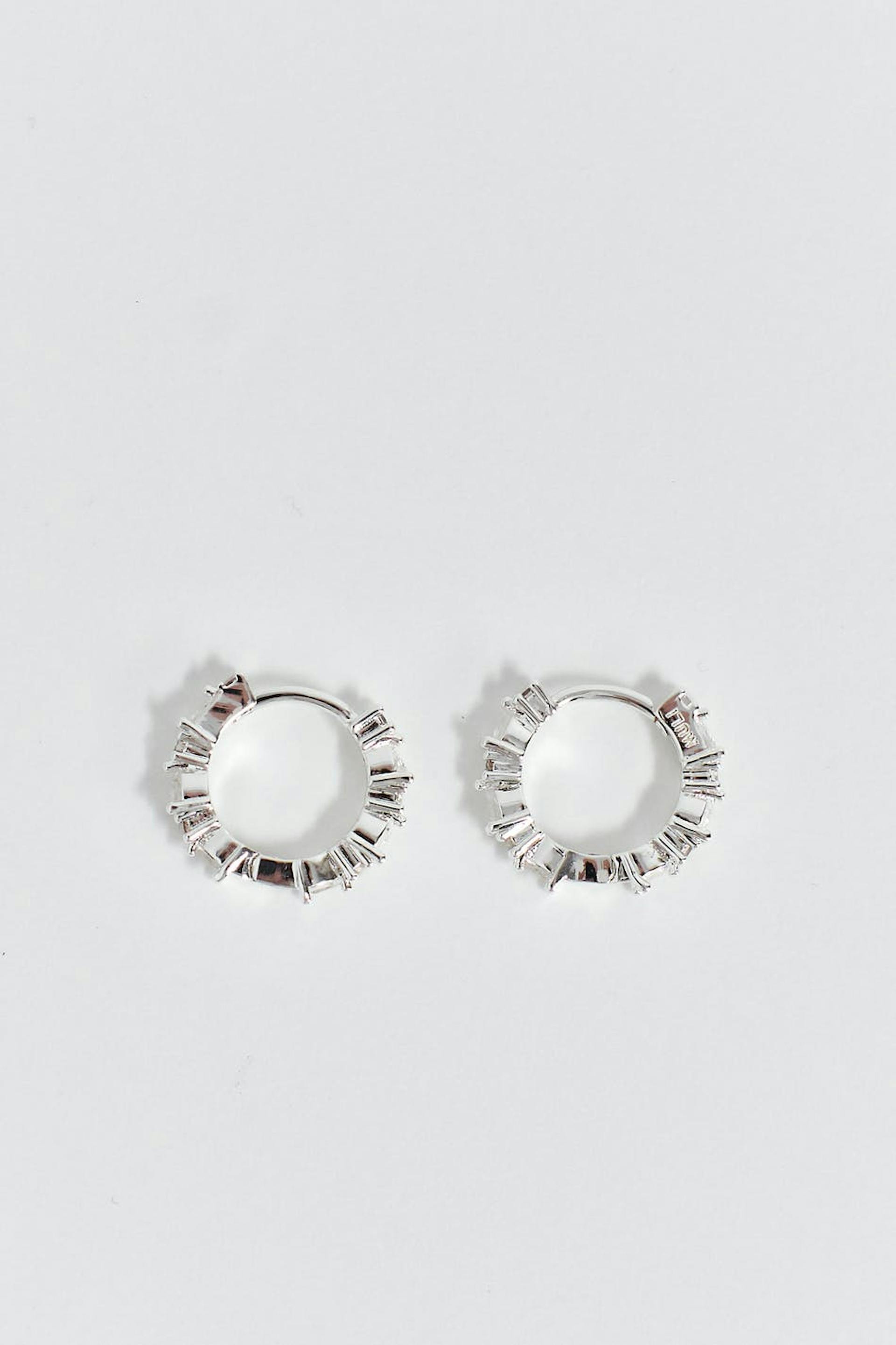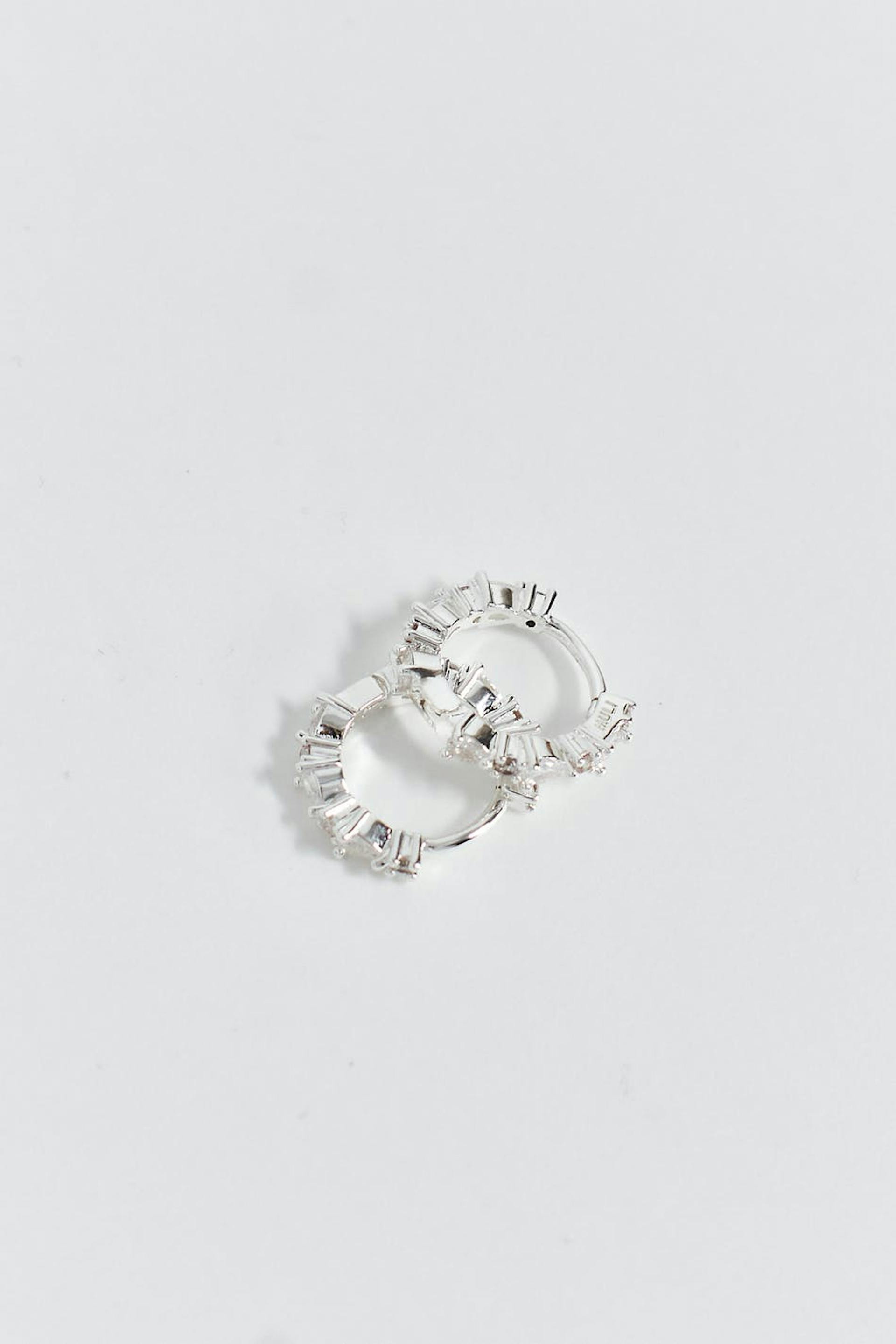 Muli Collection X Gina Tricot. Creolen aus 925er Sterlingsilber mit Steinen. Die Creolen sind versilbert.