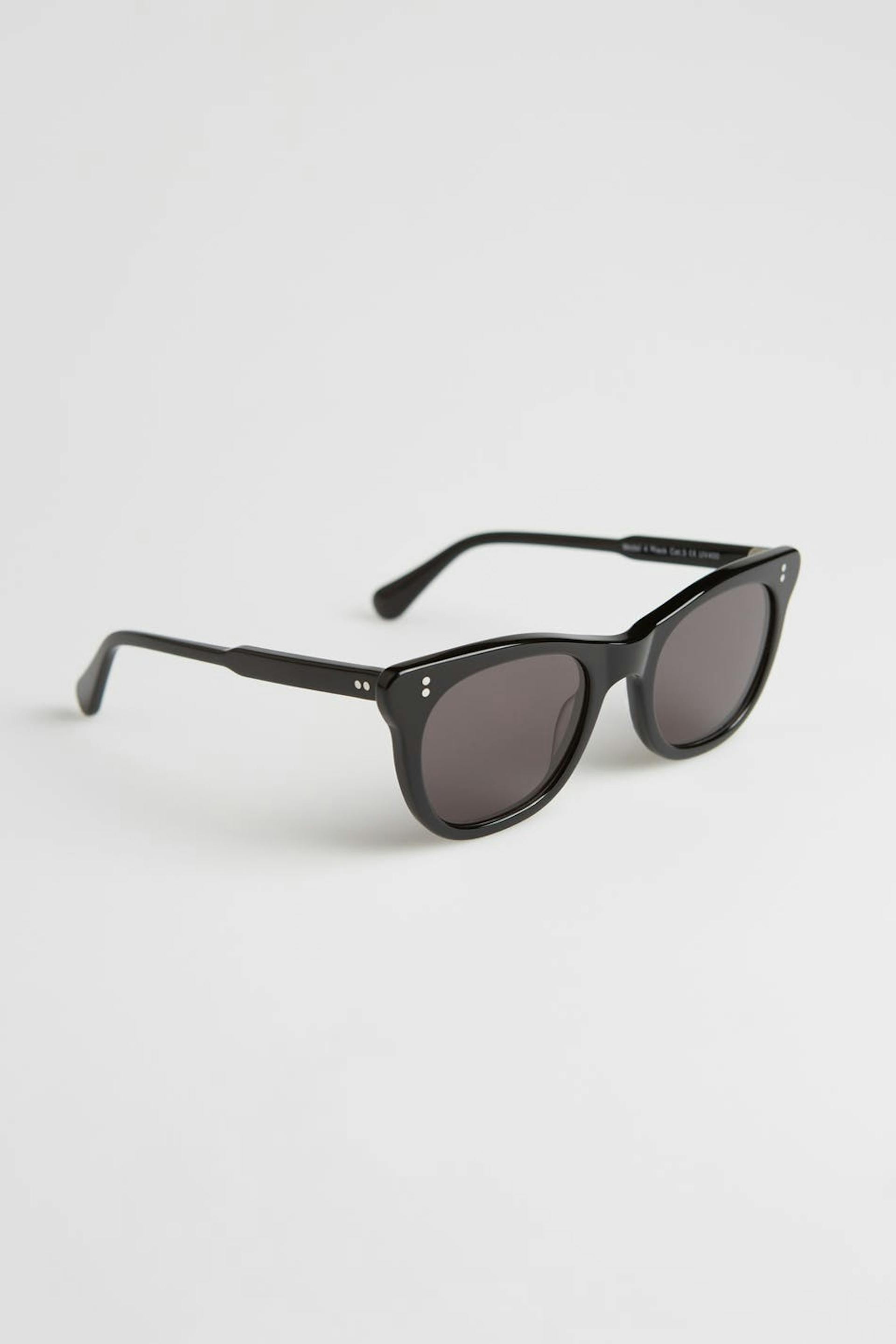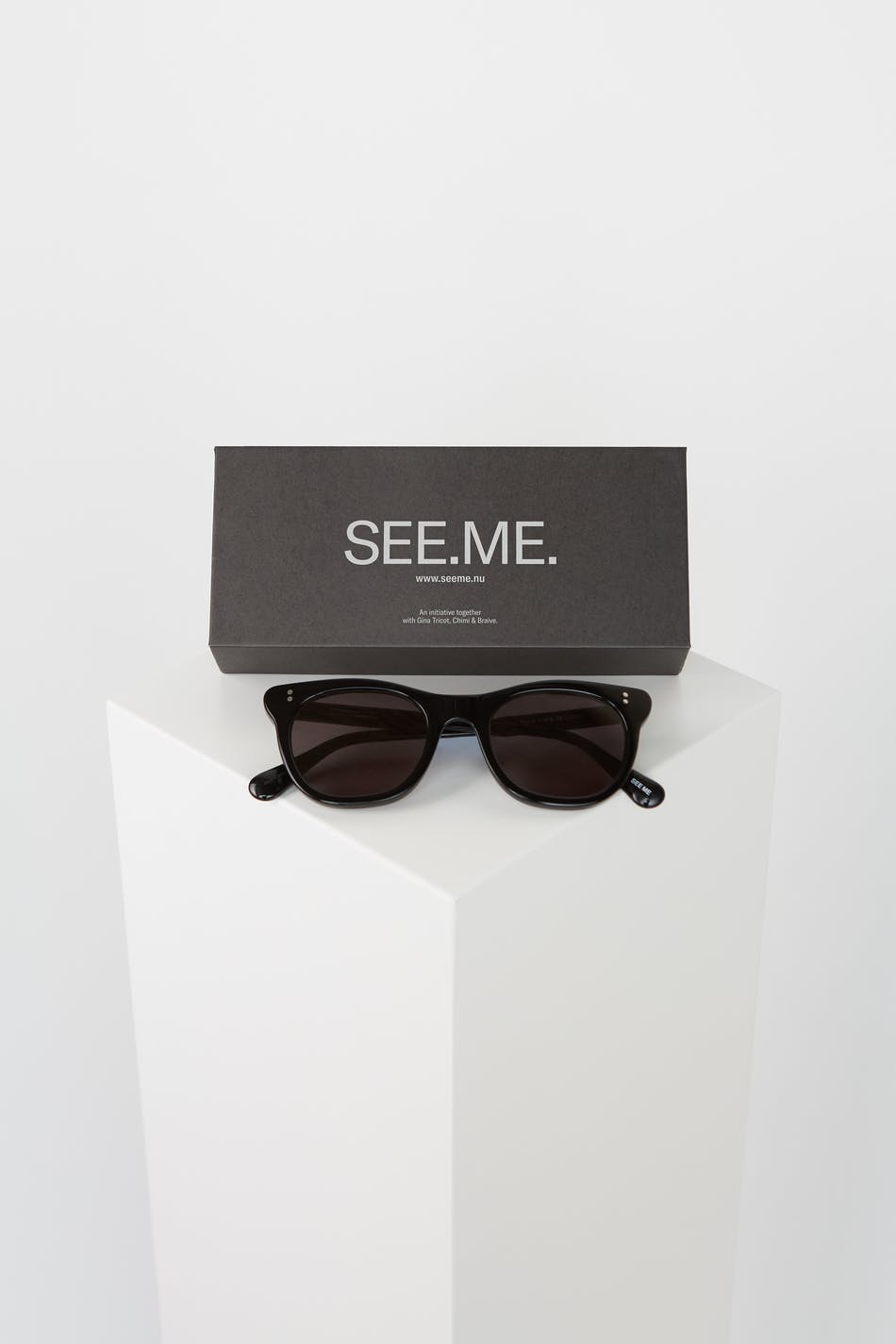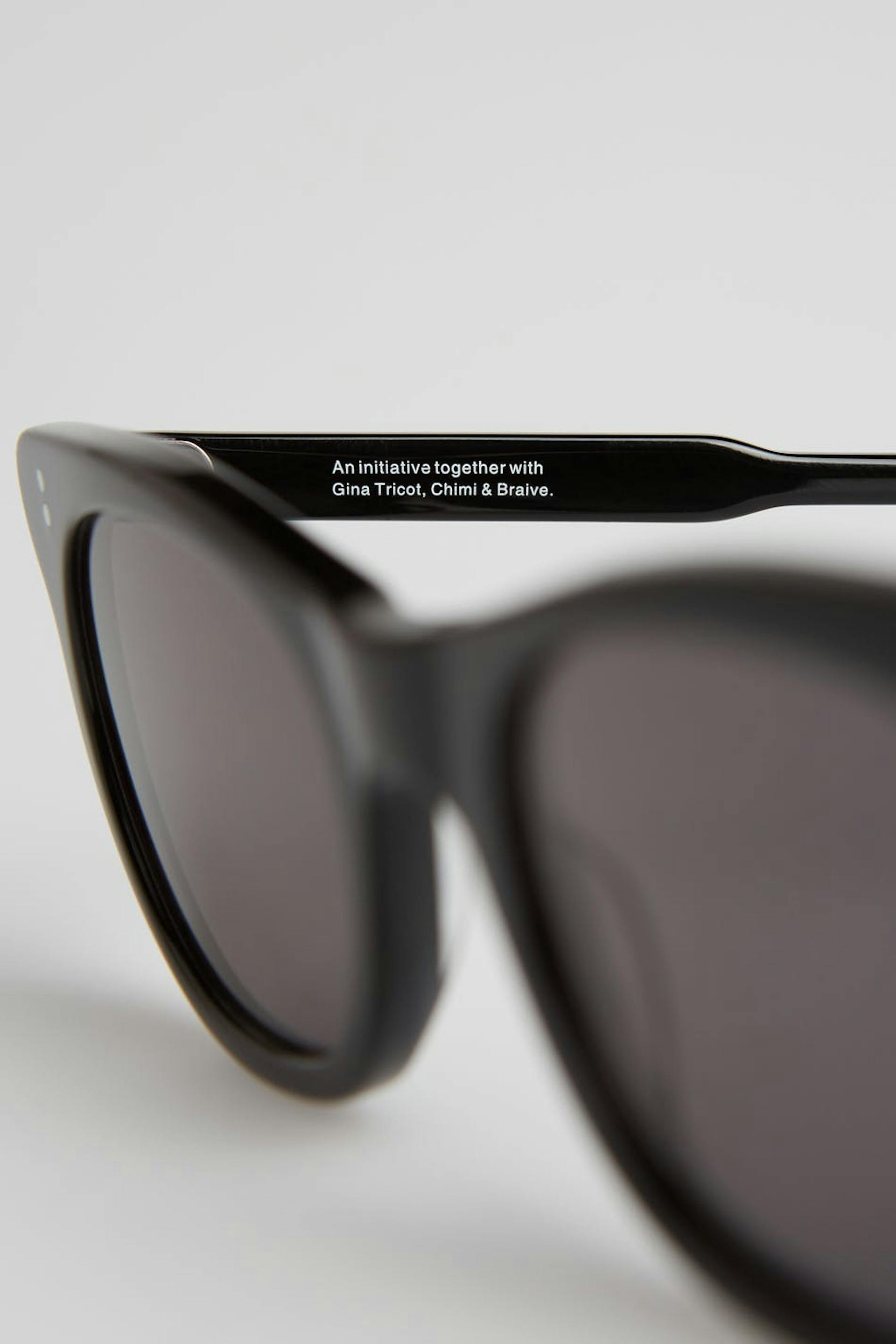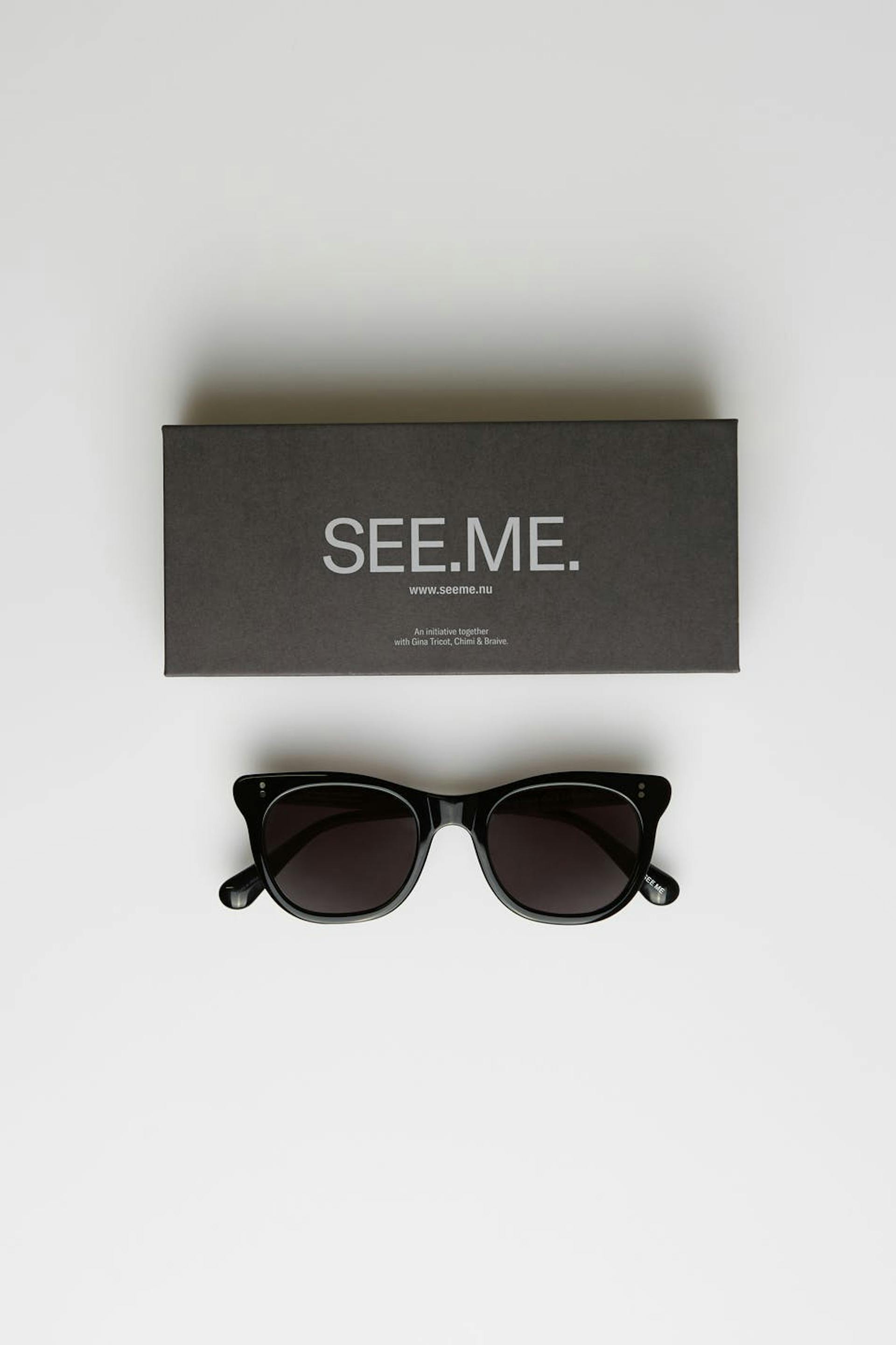 Chimi X Gina tricot. Sonnenbrillen in Zusammenarbeit mit Chimi & Braive. Feine Sonnenbrillen. Die Sonnenbrillen sind schwarz.