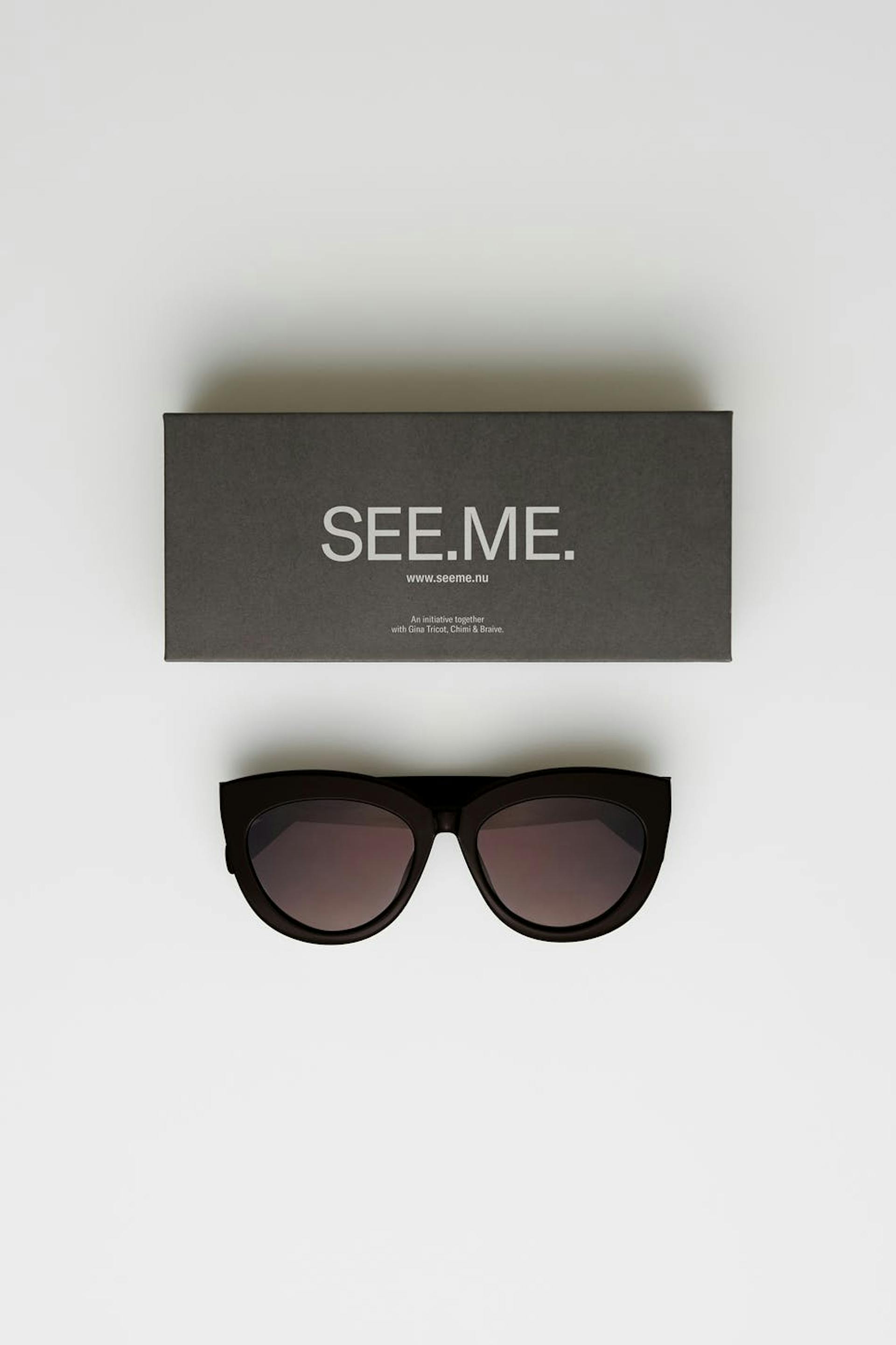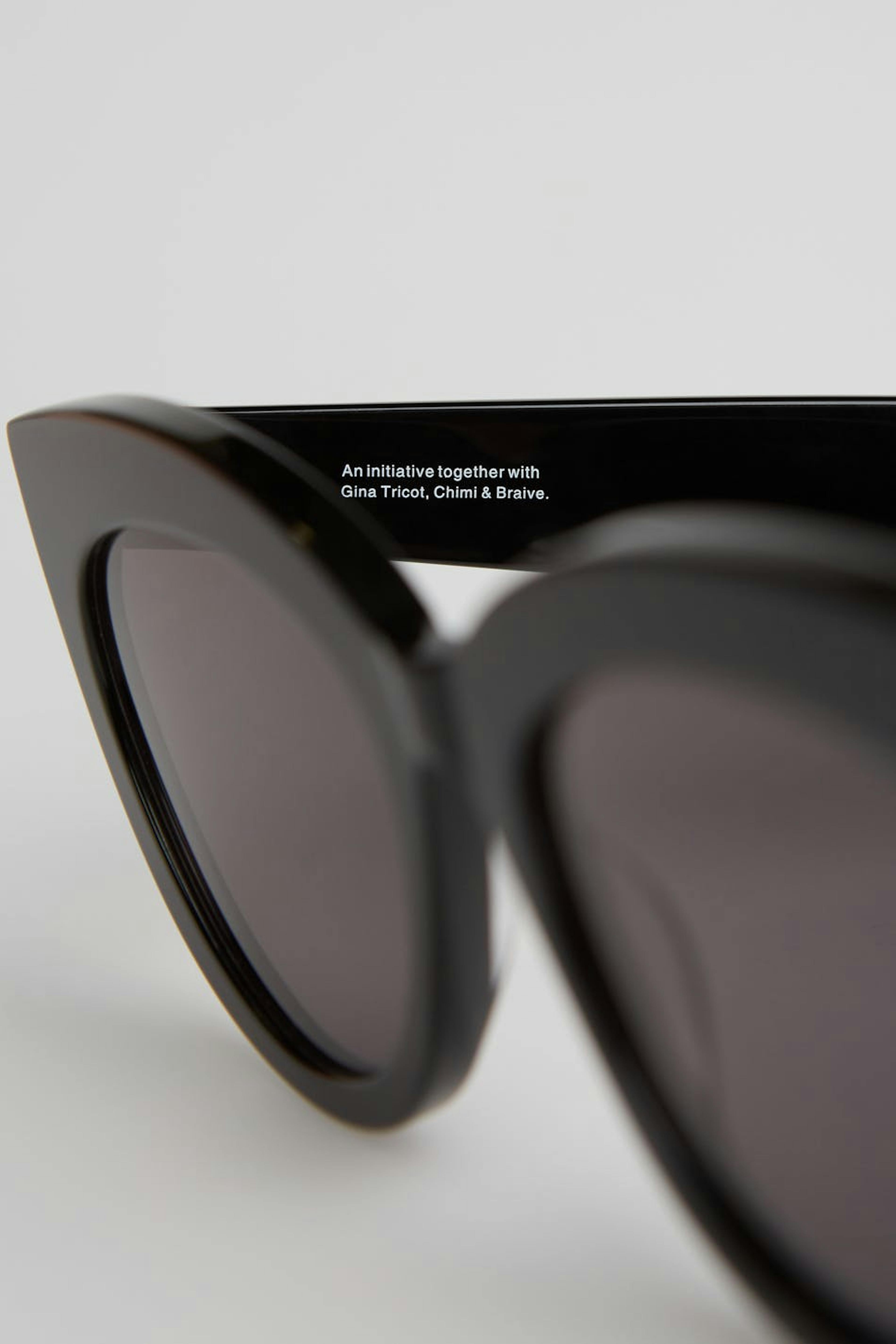 Chimi X Gina tricot. Sonnenbrillen in Zusammenarbeit mit Chimi & Braive. Sonnenbrillen. Die Sonnenbrillen sind schwarz.