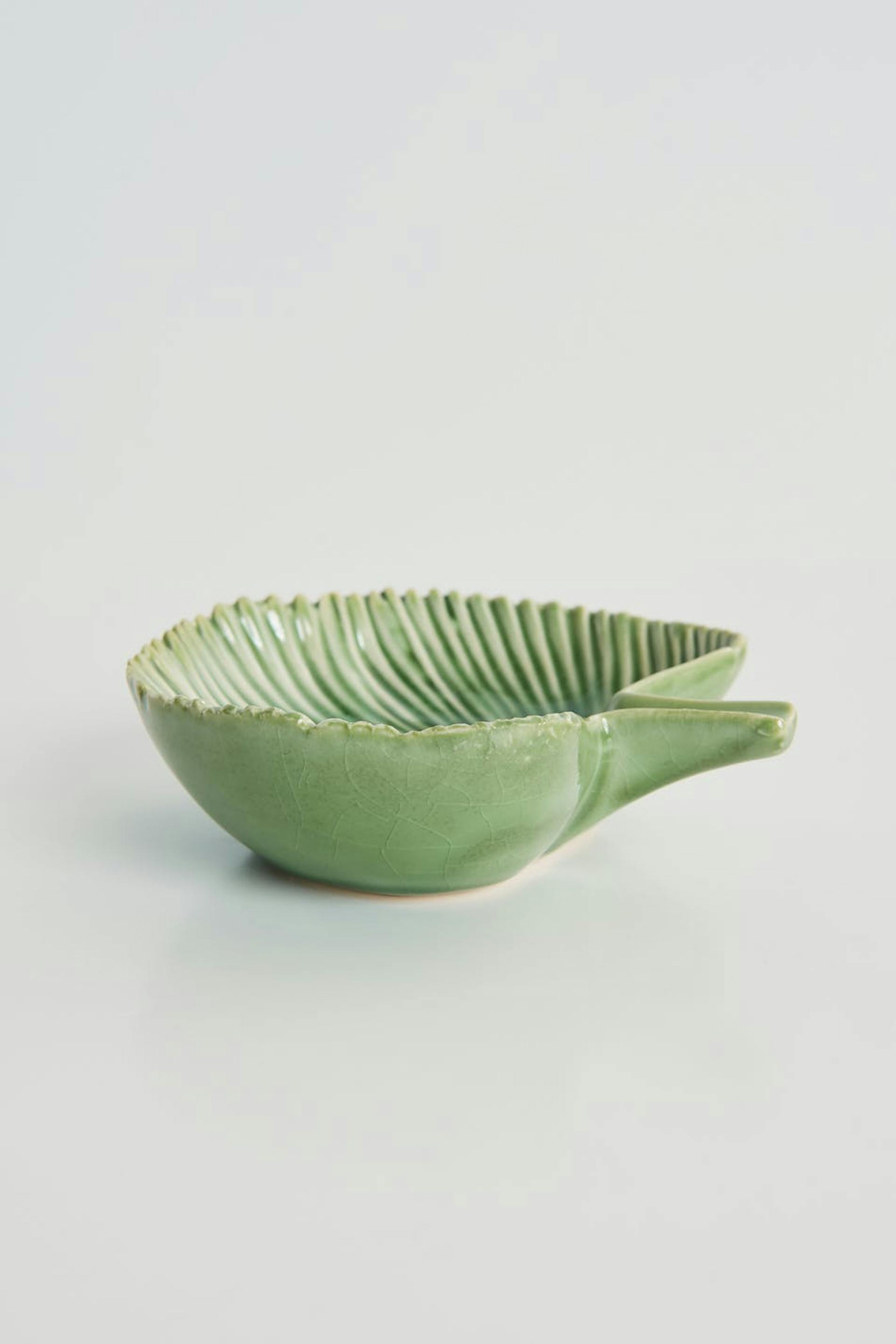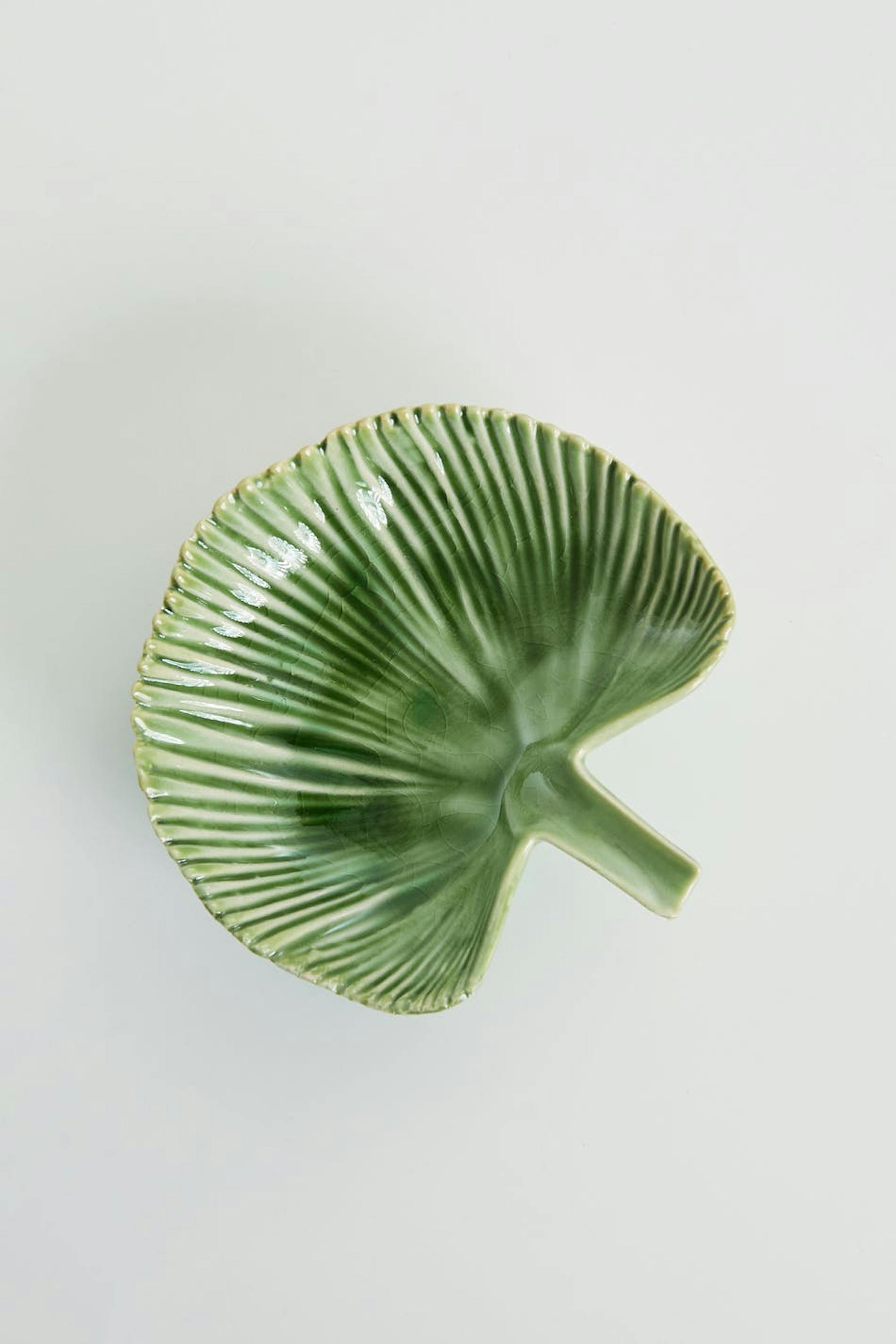 Teller von ByOn mit einer Form mit einem Palmblatt. Der Teller ist grün.