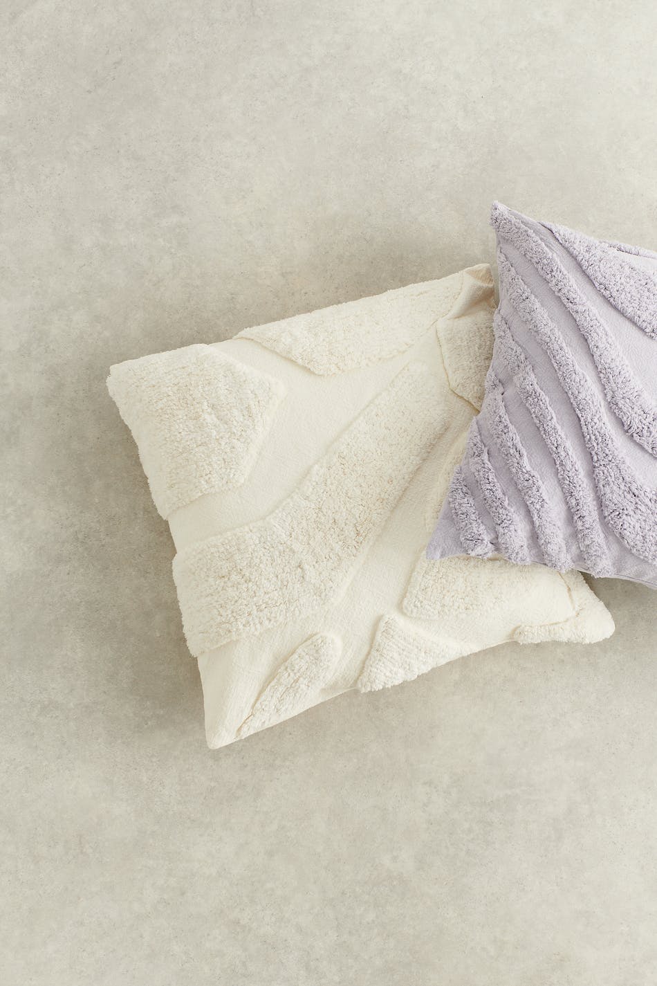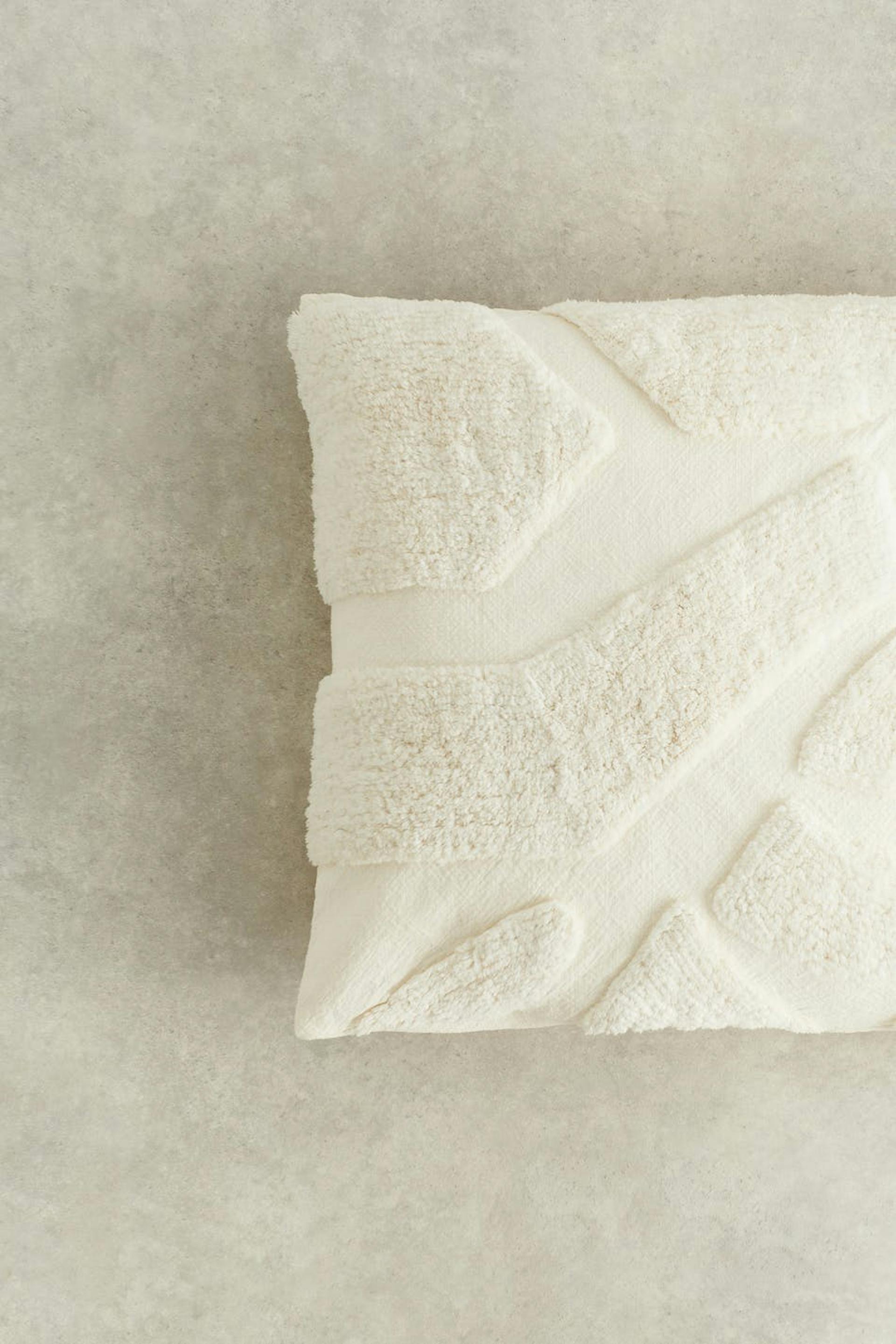 Kissenbezug von Gina Home mit büscheligem Motiv. Die Hülle ist weiβ und hat ein weiches Material aus Baumwolle. Sie hat einen versteckten Reißverschluss hinten.