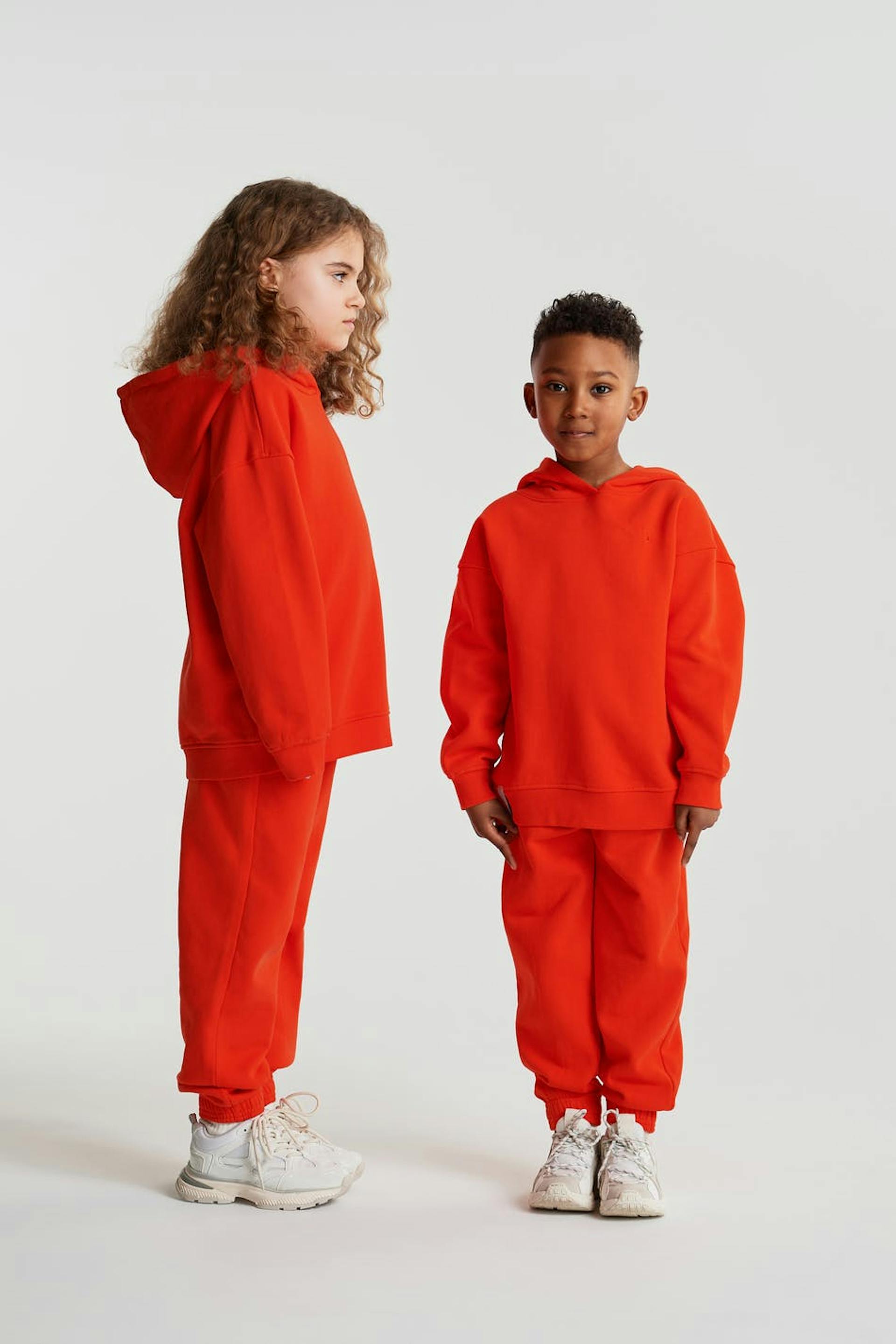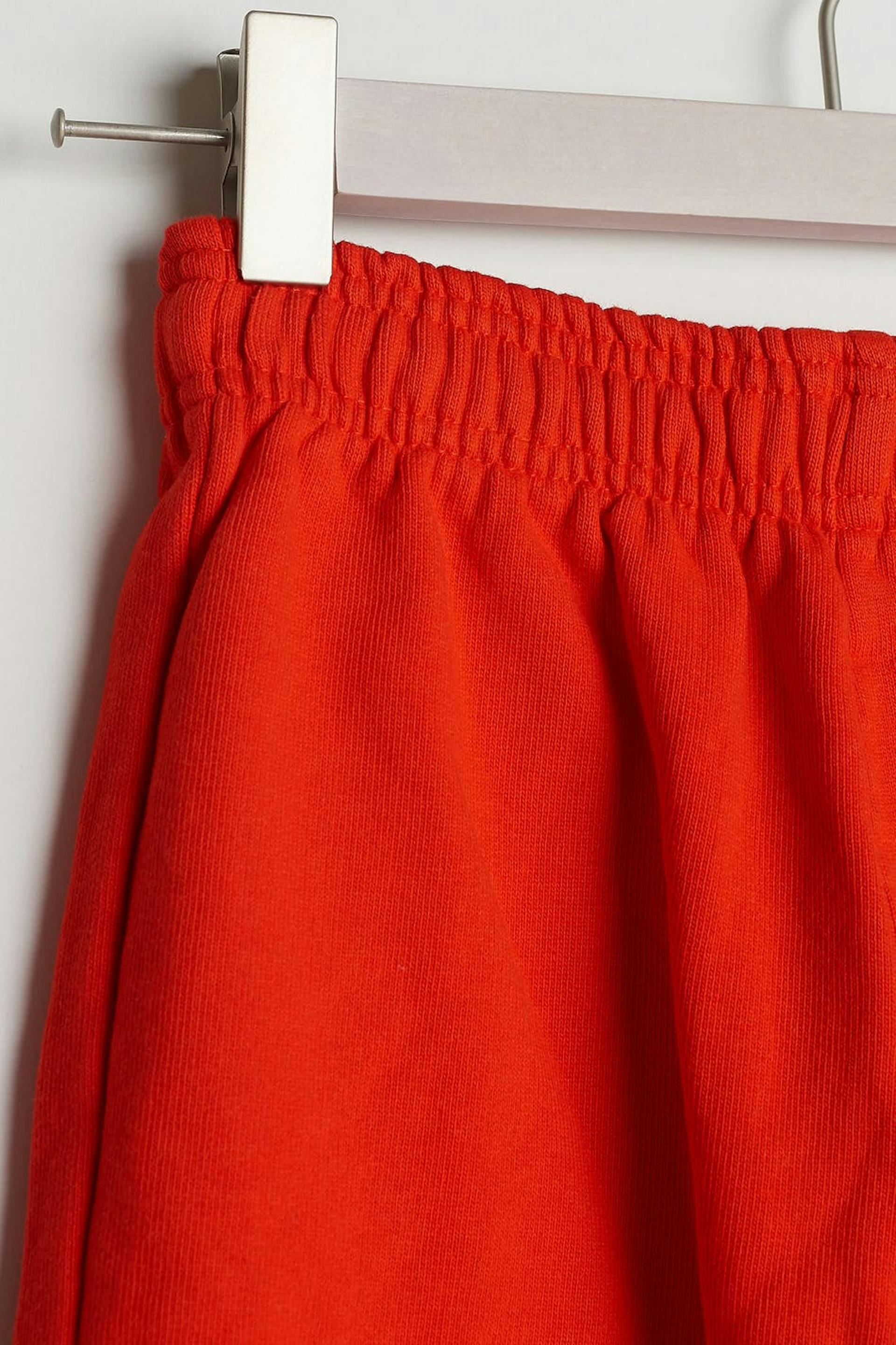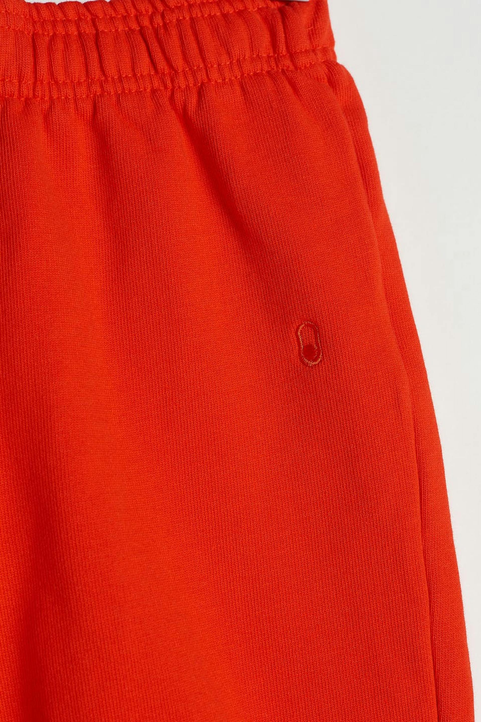 Unisexe Jogginghosen von Gina Lab für Kinder mit einer normaler Passform. Orange, gender-neutral, zeitlos und bequem. Sie haben ein Gummiband am Beinende und eine Taille aus Gummiband mit einem Kordelzug.