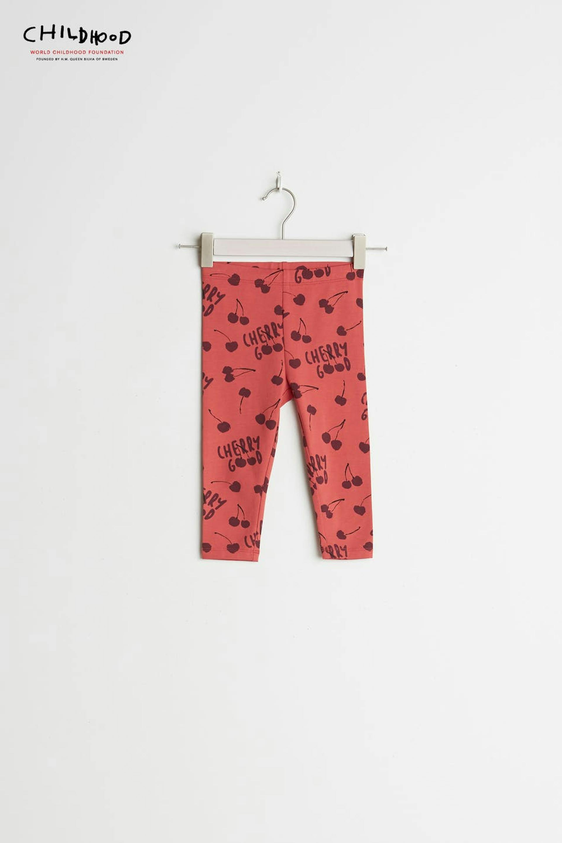 Leggings für Babys. Die Leggings sind rosa und gemustert.