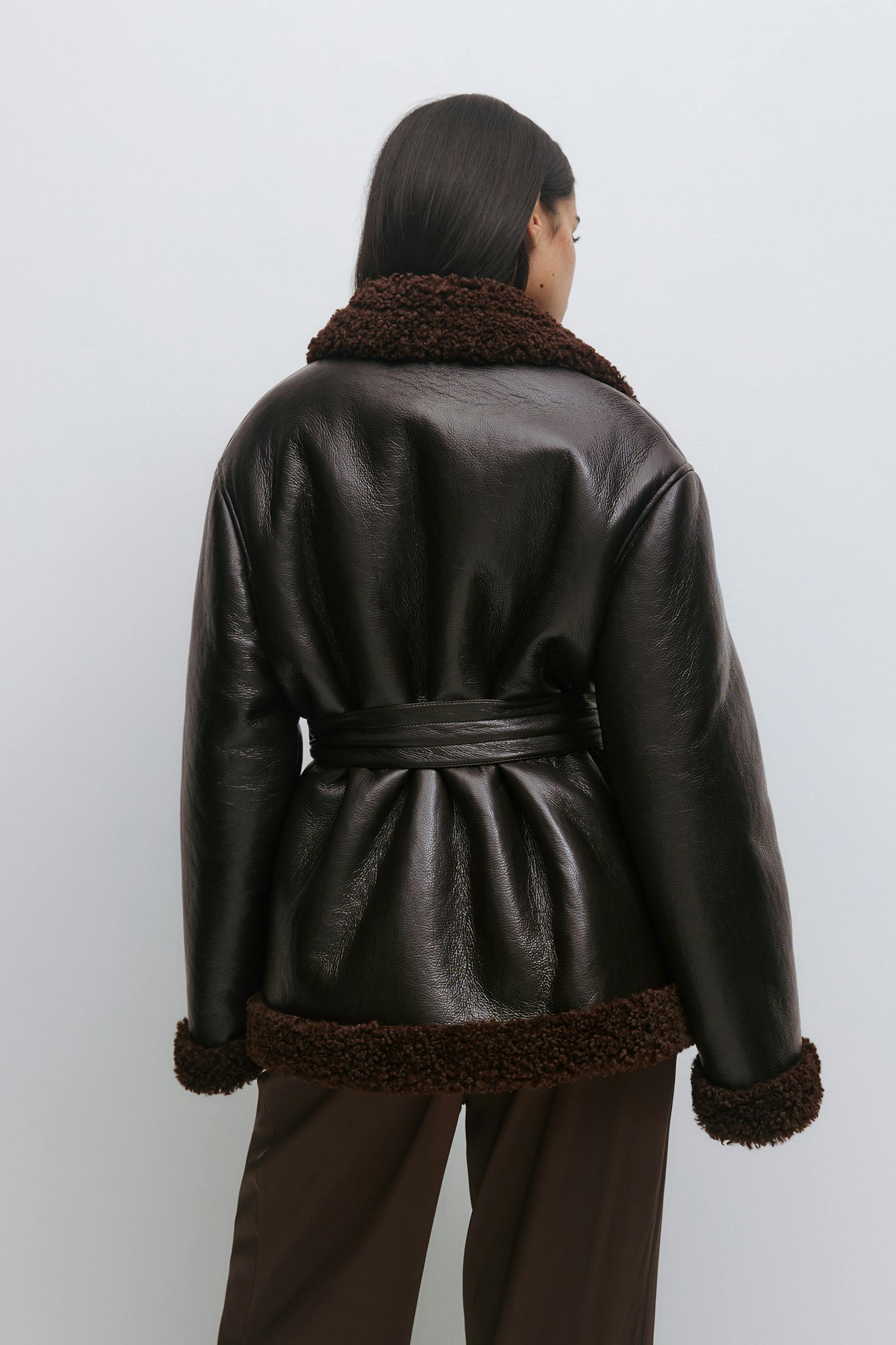 Teddy pu belted jacket