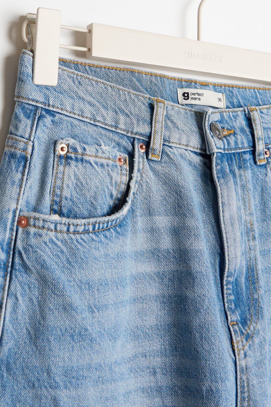 Jeans mit hohem Bund. Die Jeans ist blau und hat eine 90er inspirierte Passform. Sie ist hergestellt aus nicht dehnbarem Denim und hat Hosenbeine mit voller Länge, Schlitz am Beinende und Taschen vorne und hinten. Ideal bei einer Körpergröße ab 1,75 m.