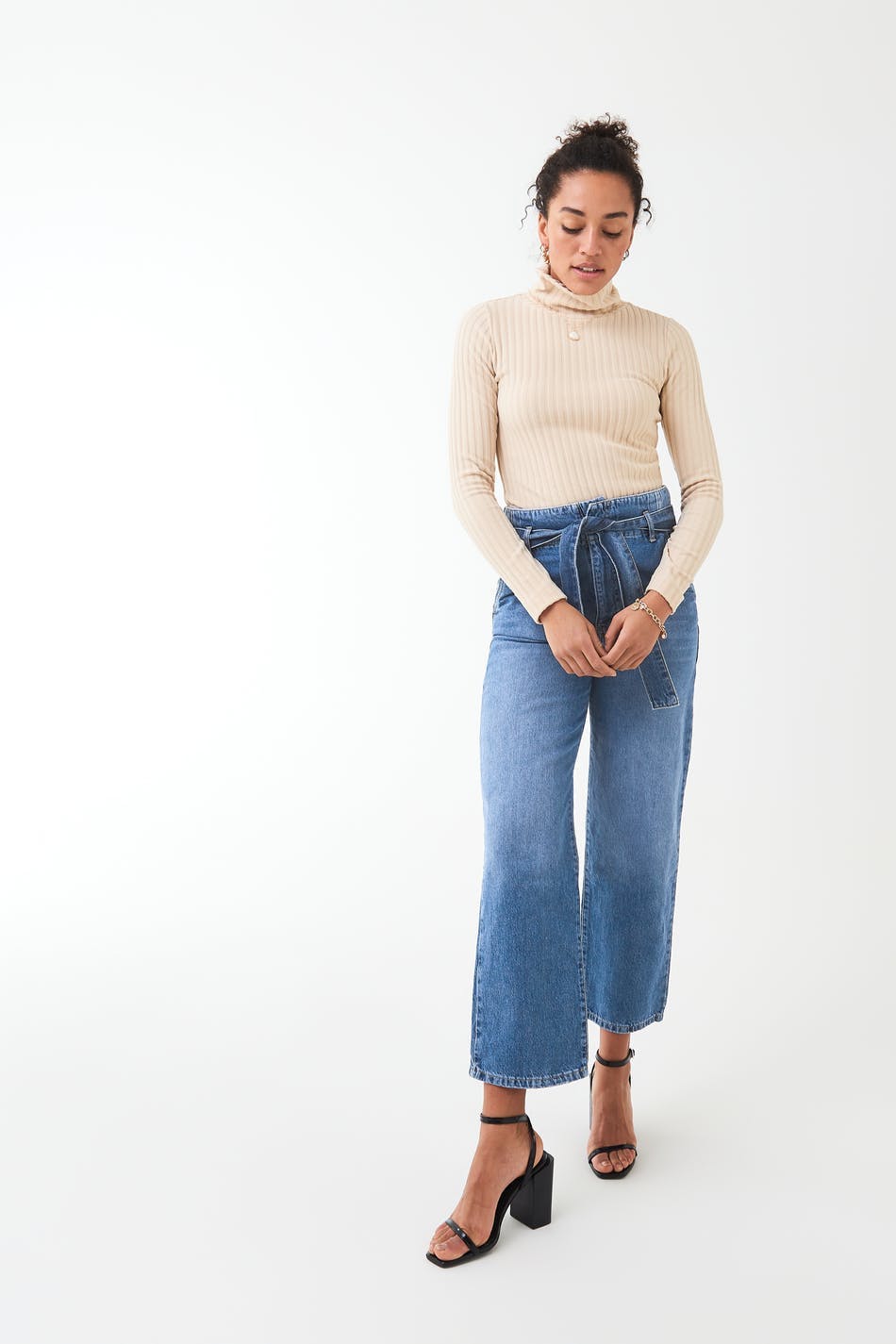 Belted paperbag jeans