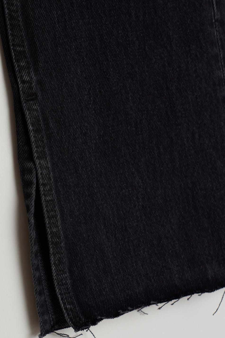 Straight Leg Jeans mit einem hohem Bund. Die Jeans ist schwarz und hat eine figurbetonte Passform. Sie hat ein Detail mit einem Schlitz am Inneren des Beins und ein nicht dehnbares Material aus Denim.