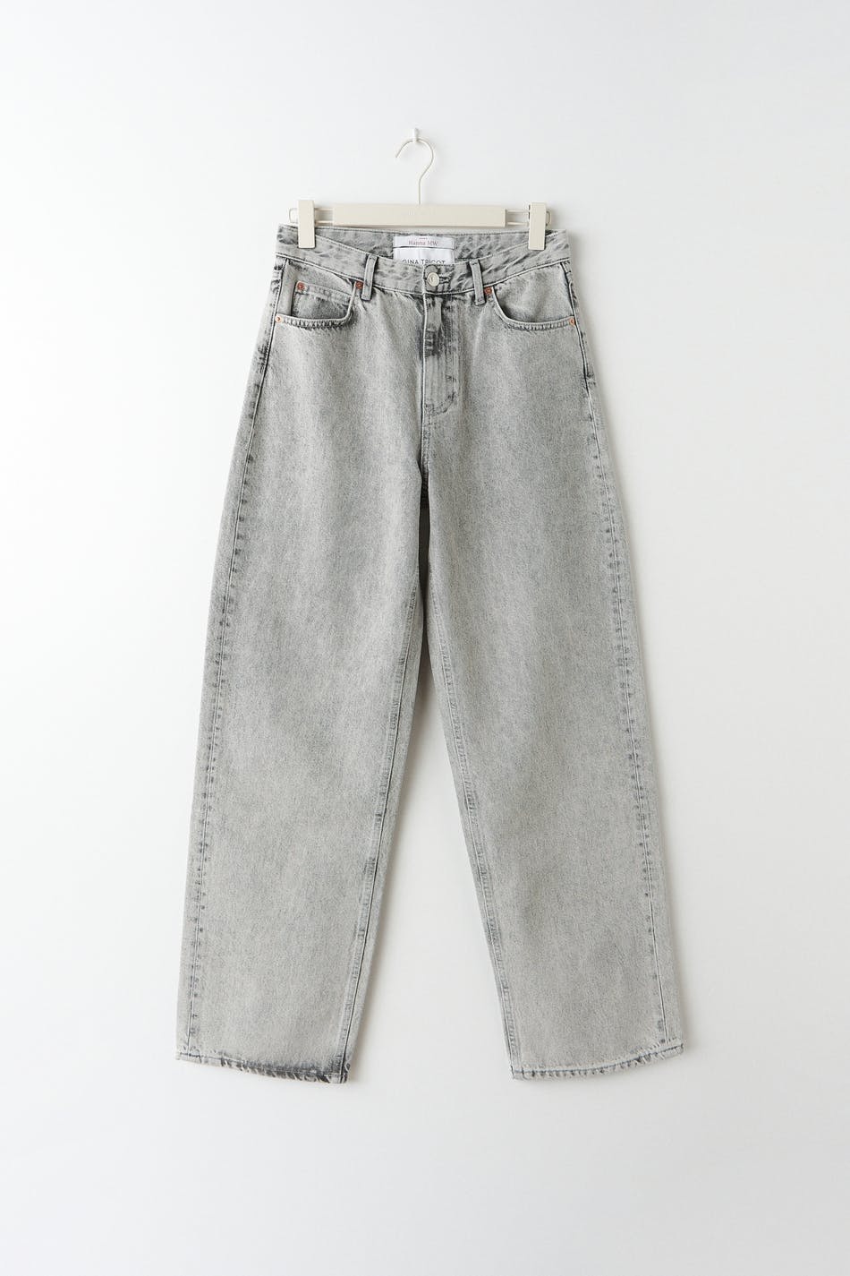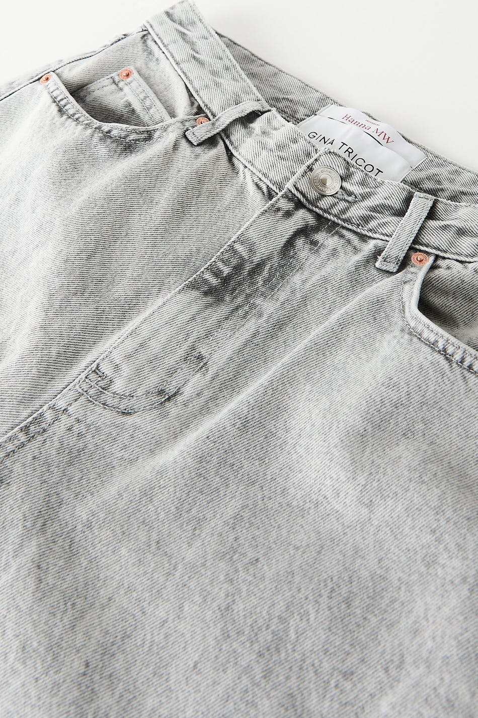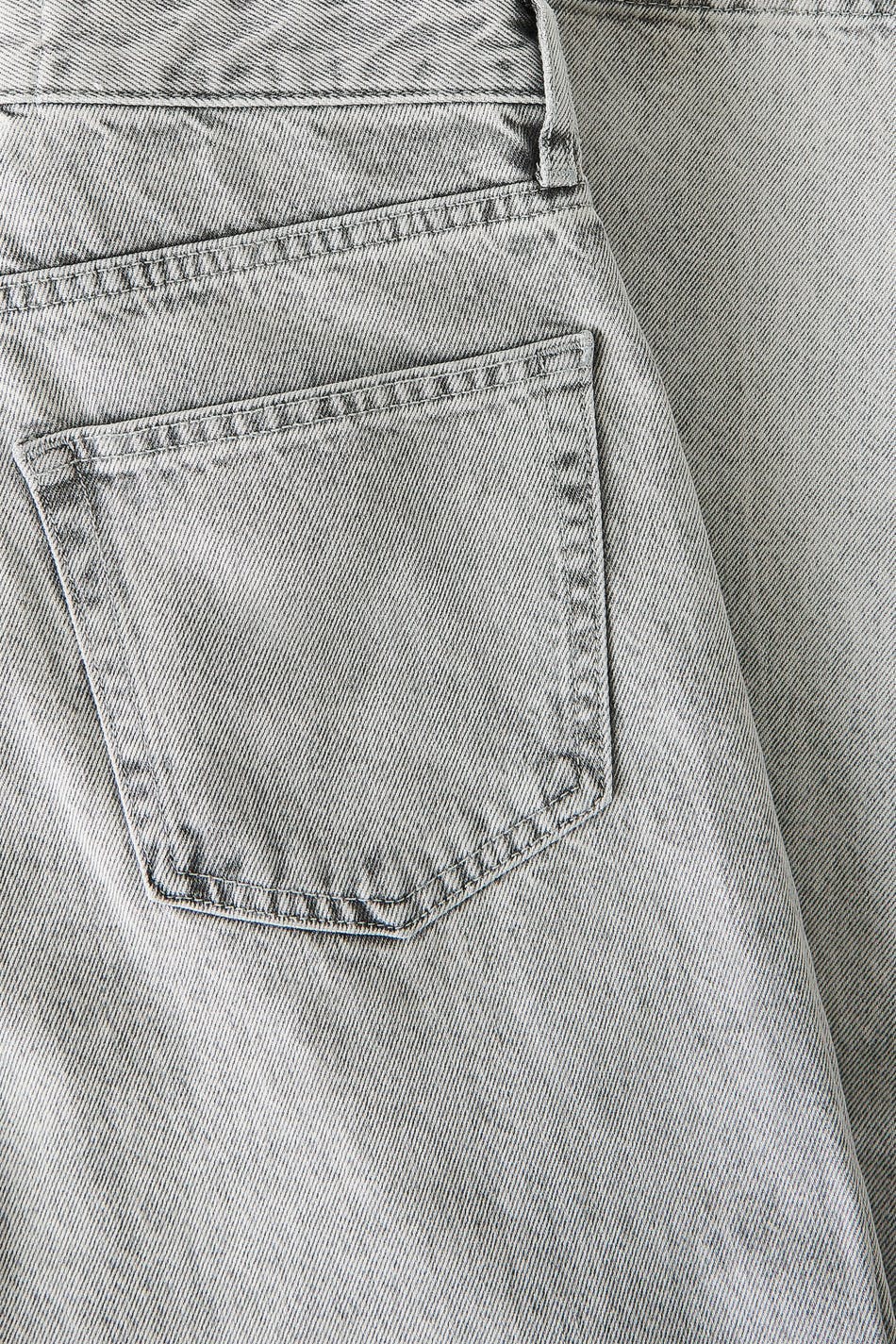 Hanna MW X Gina Tricot. Lässige Jeans mit einer Oversize-Passform aus nicht dehnbarem Denim. Die Jeans ist grau und hat eine mittlere Taille. Sie hat einen Knopfverschluss und gerade geschnittenen mit kürzerer Beinlänge. Die Jeans werden aus übriggebliebenen Stoffresten und umgearbeiteten Jeans gefertigt.