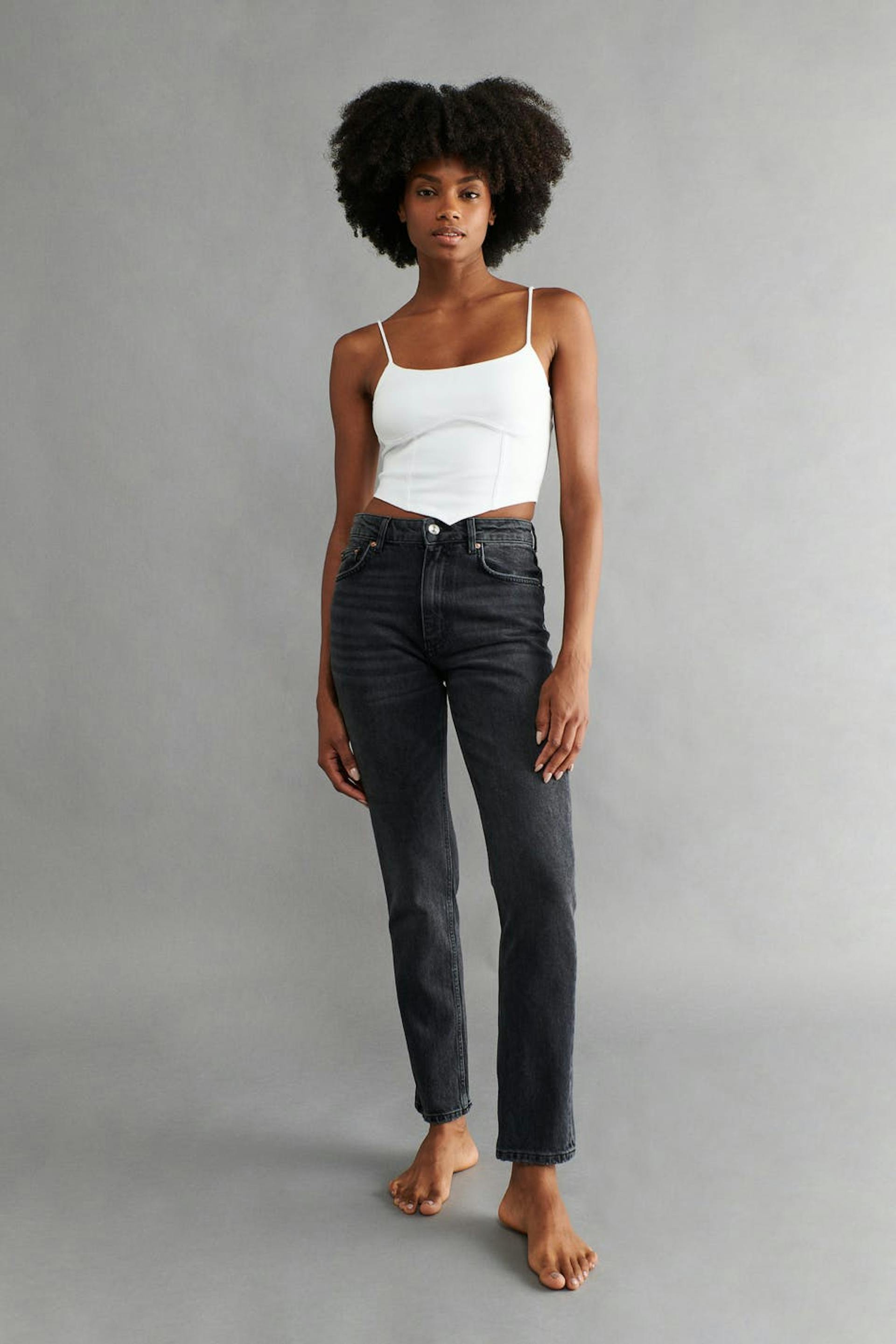 Slim-Fit Jeans mit mittlerer Taille aus low stretch denim. Die Jeans ist schwarz und hat konische Beine mit Knöchellänge. Sie hat Vintage-Waschung, Reißverschluss und eine Passform zwischen Skinny und Straight Leg. Benutze unsere Größentabelle, um deine Größe zu finden..