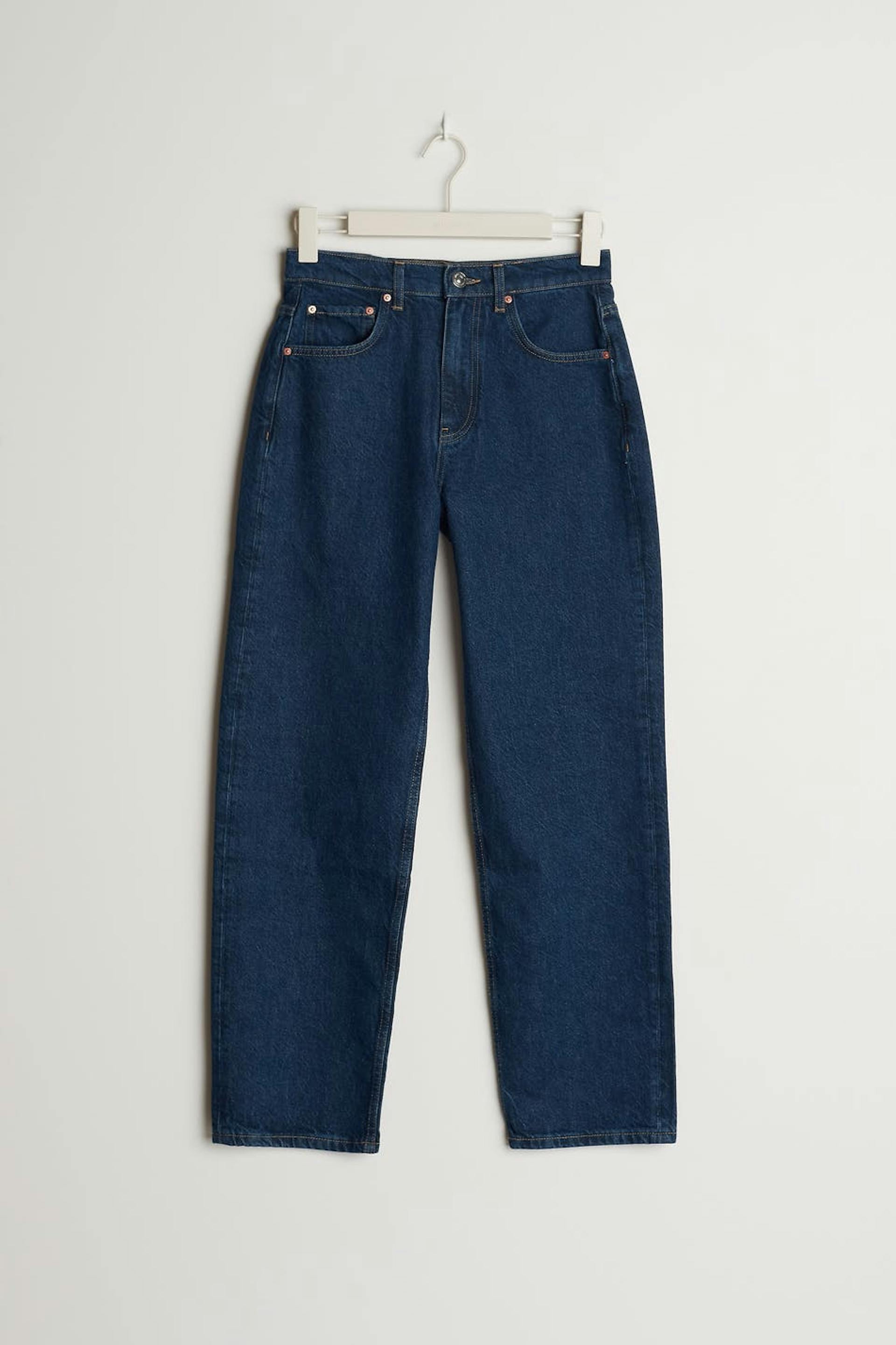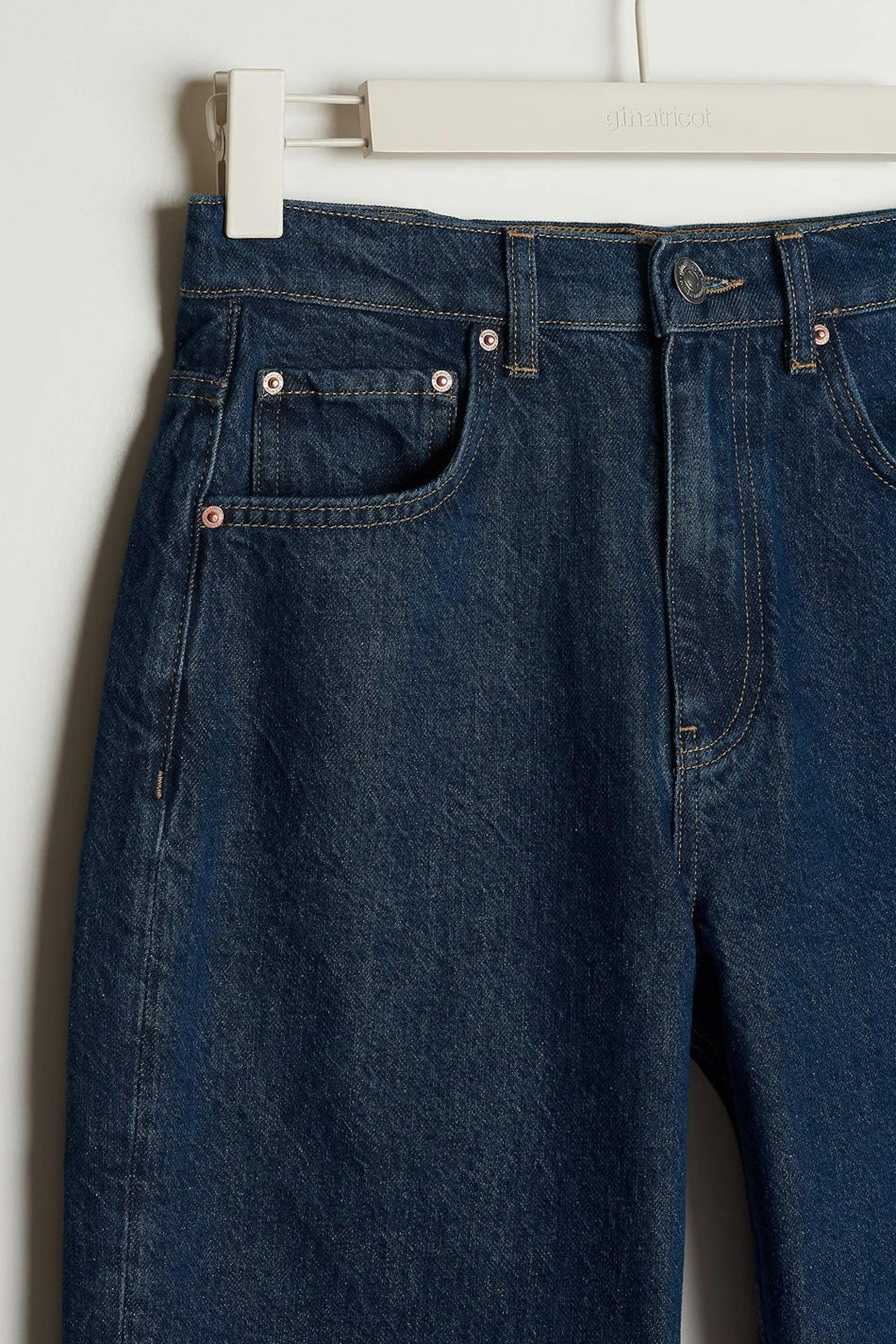 Zierliche Hüftjeans mit einer normalen Passform. Die Jeans ist blau, gerade und nicht dehnbar. Sie hat eine 90er inspirierte Passform, eine Vintage-Waschung, Taschen vorne und hinten und eine kürzere Beinlänge. Ideal bei einer Körpergröße bis 1,60 m.