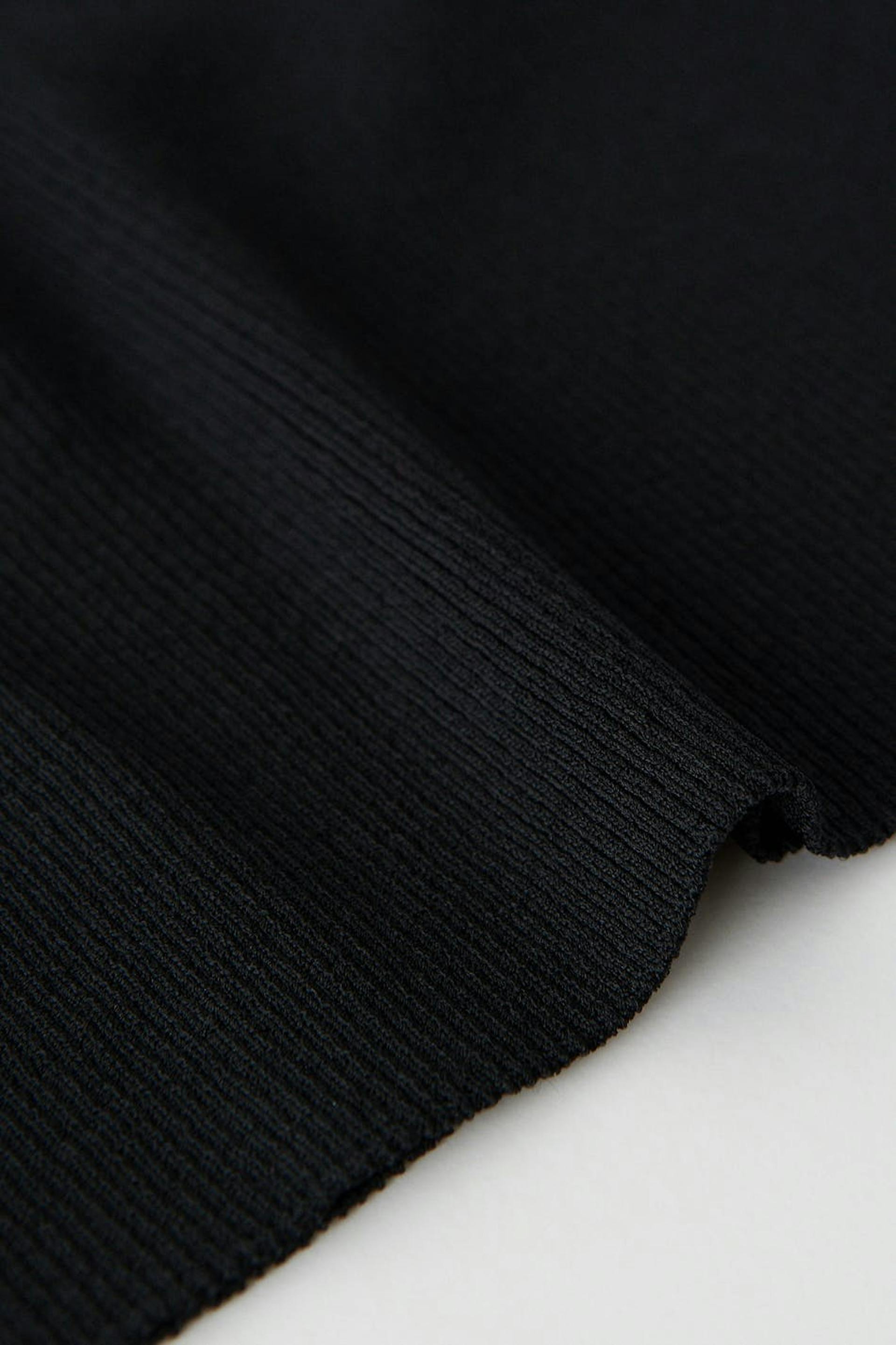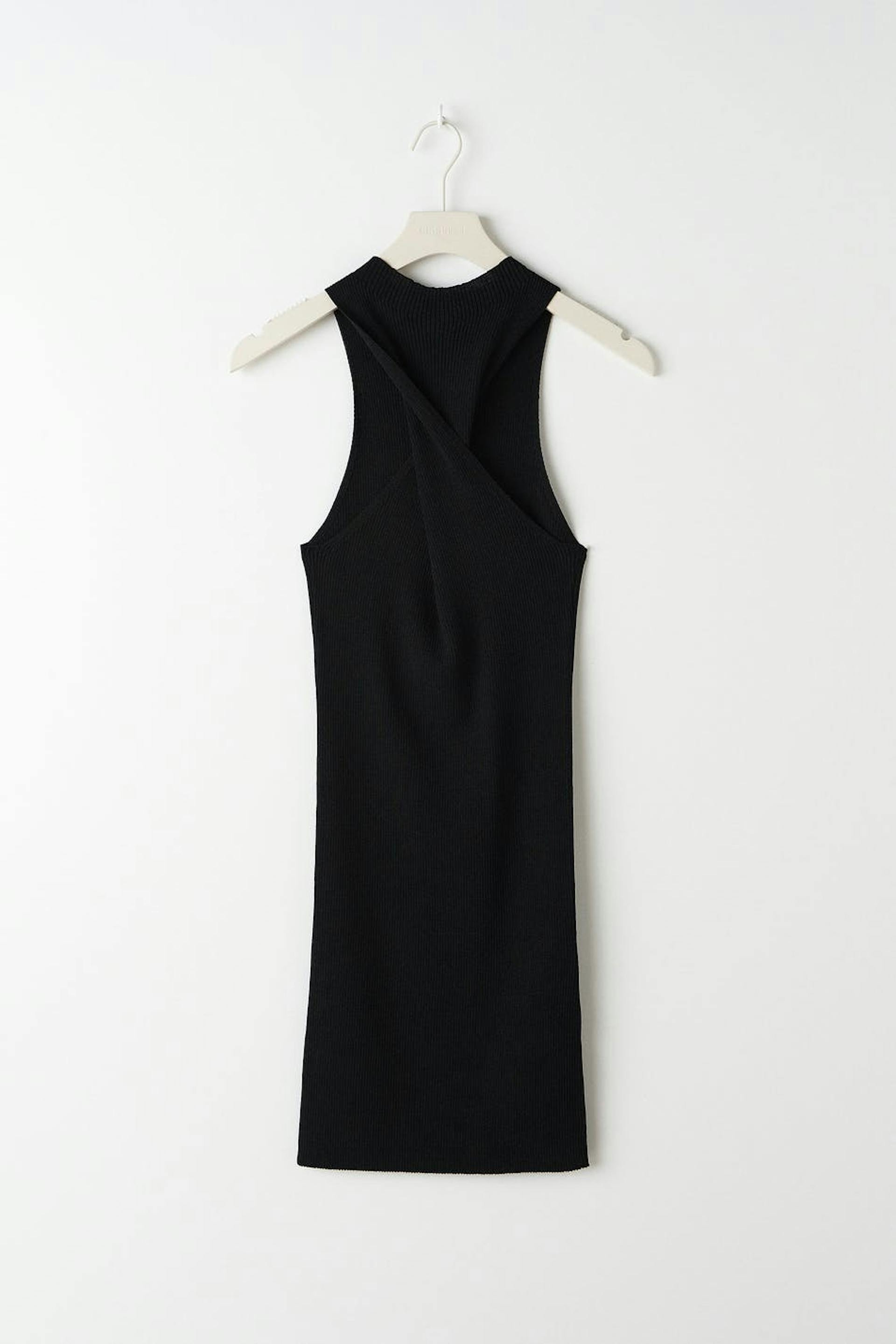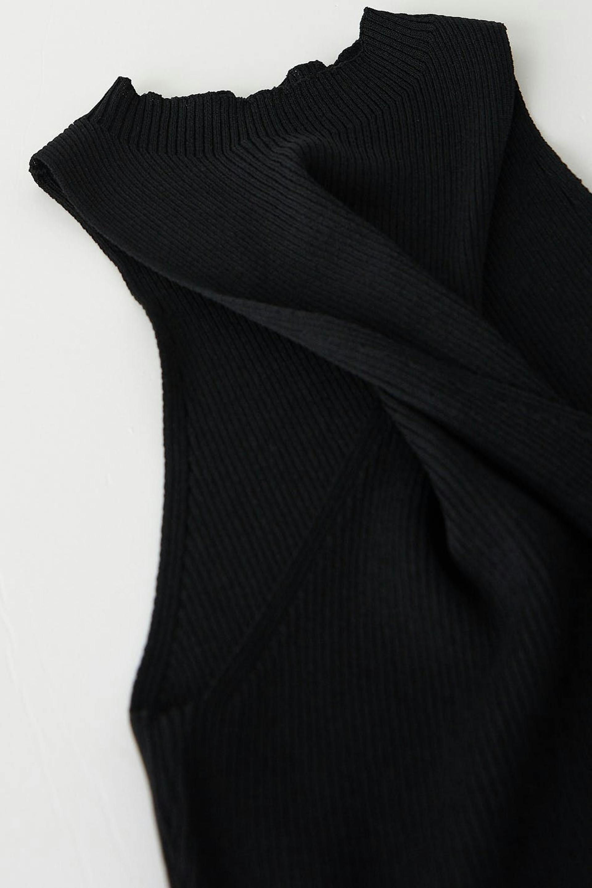 Slim-Fit Kleid mit einem Twist am Ausschnitt. Das Kleid ist perfekt für eine Party, schwarz und gerippt.