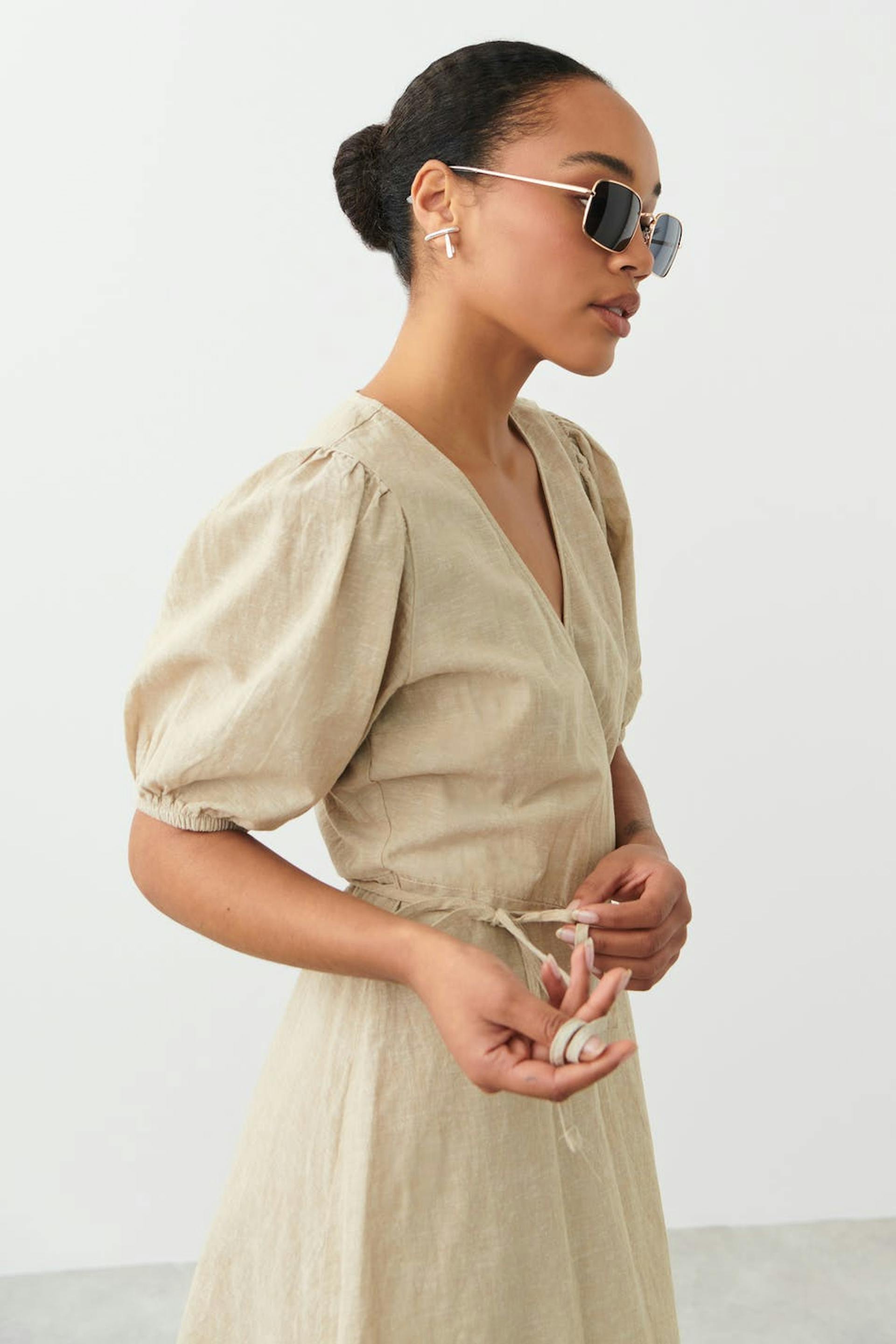 Glimma linen blend wrap dress