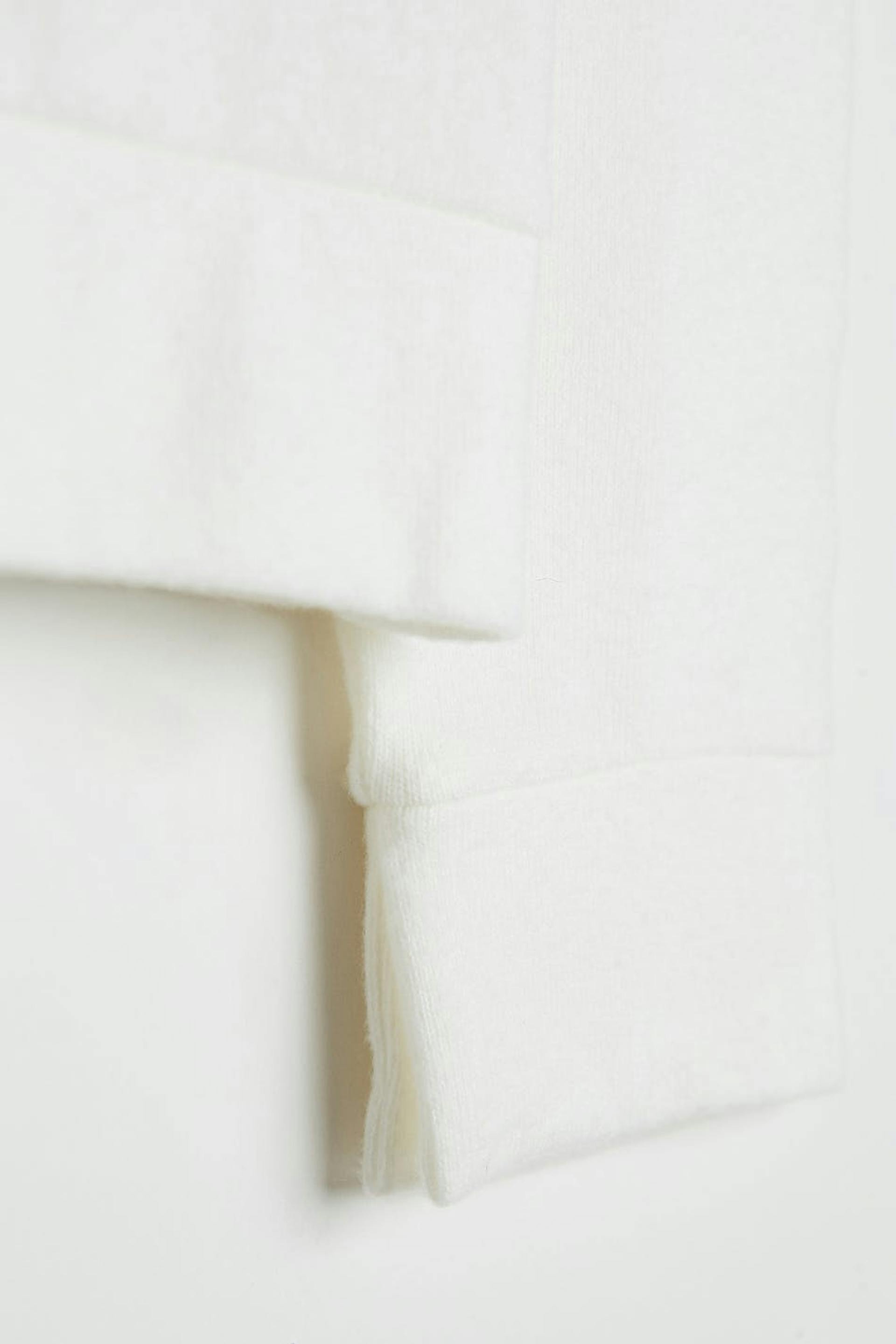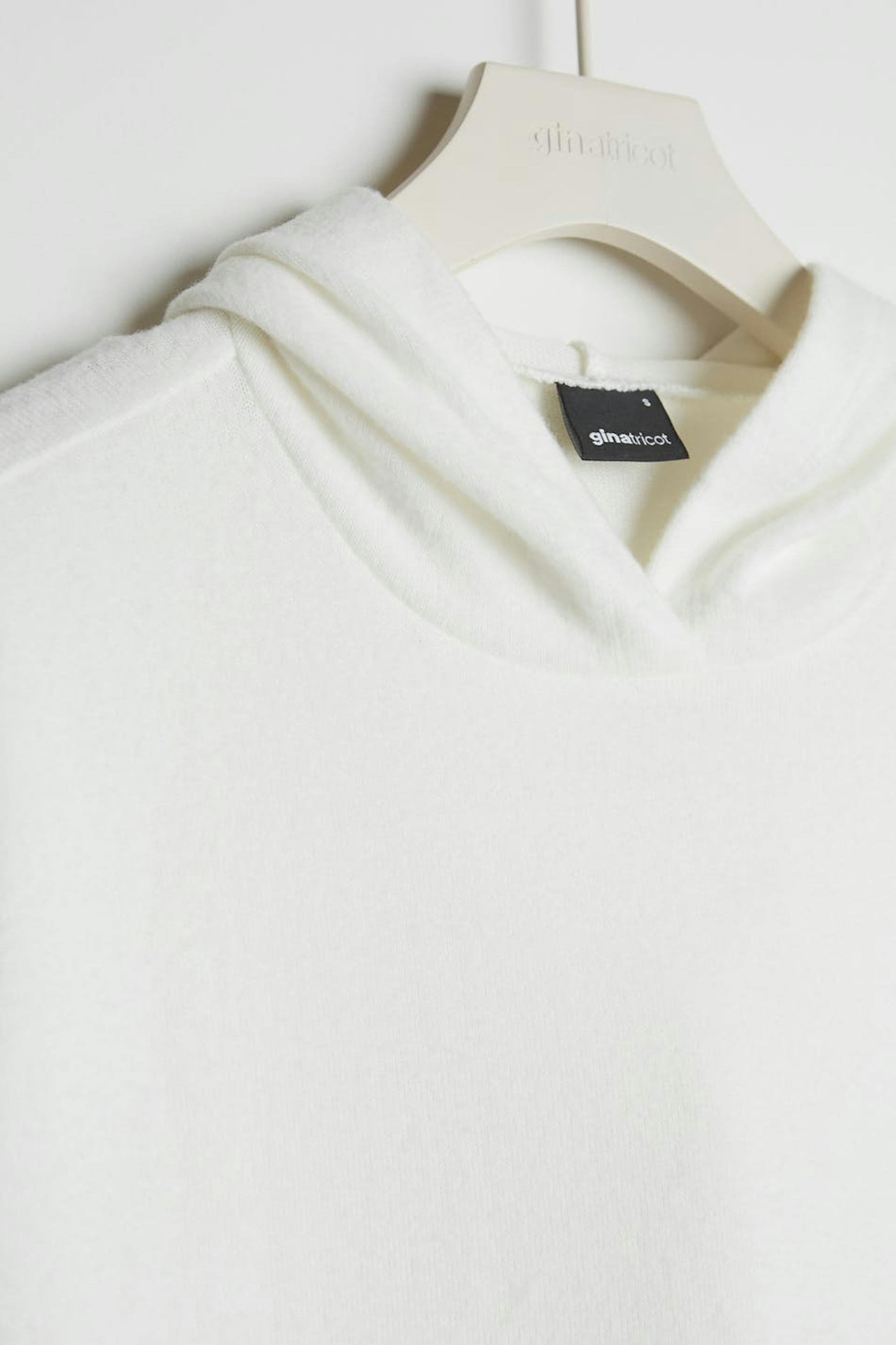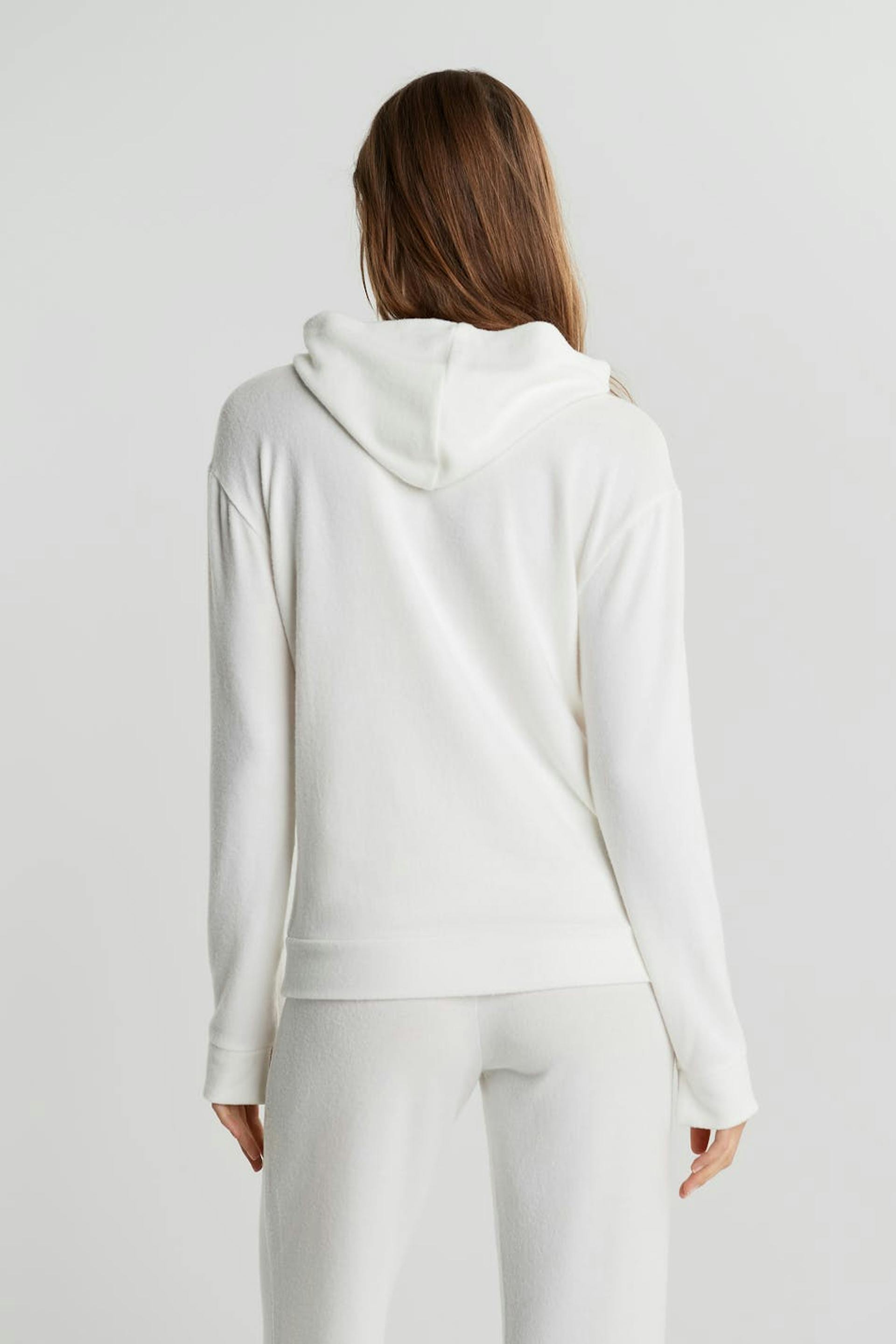 Weiches Sweatshirt mit einer normaler Passform. Das Sweatshirt ist weiβ und gebürstet und hat eine Kapuze. Es hat Spaltung an den Ärmelenden.