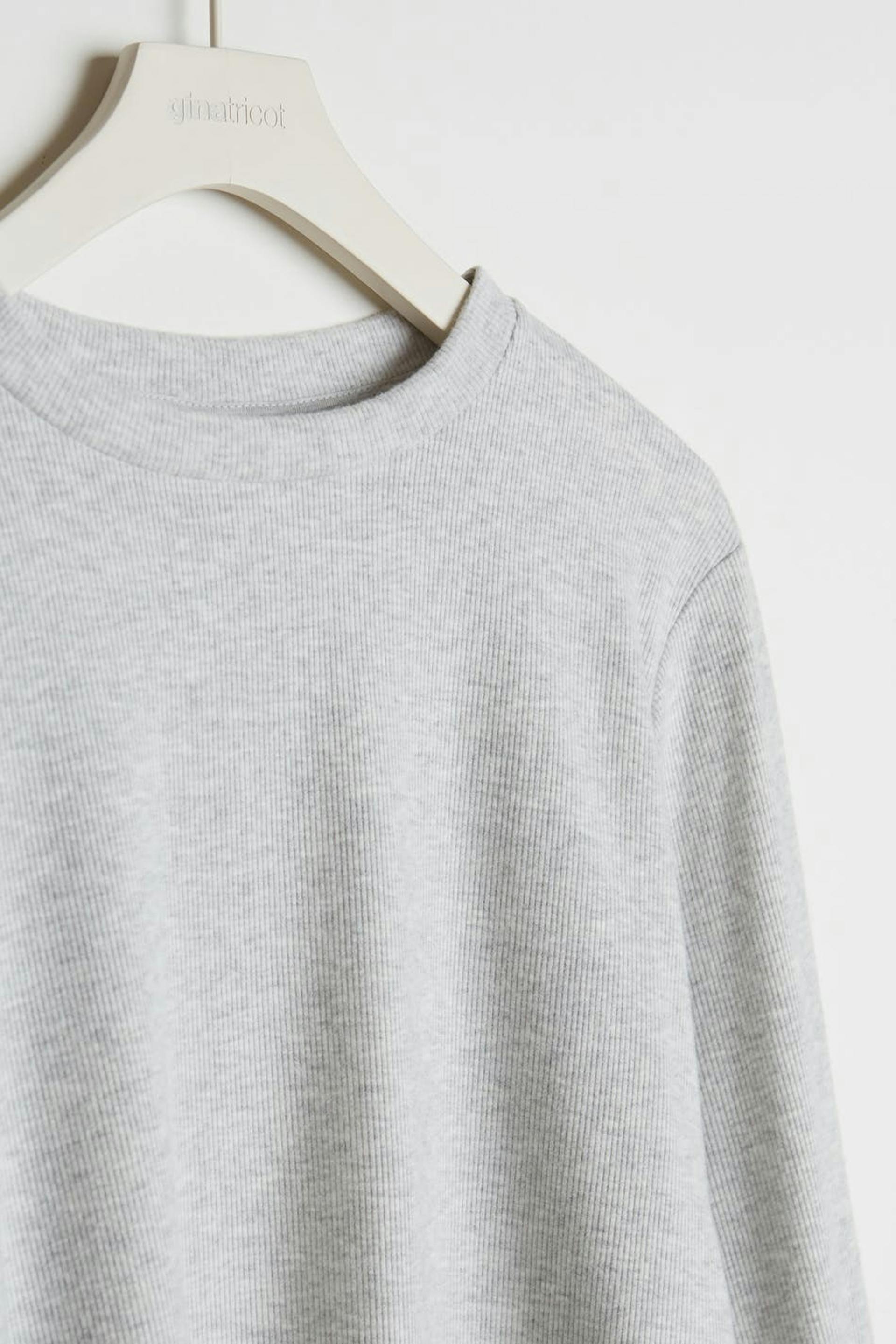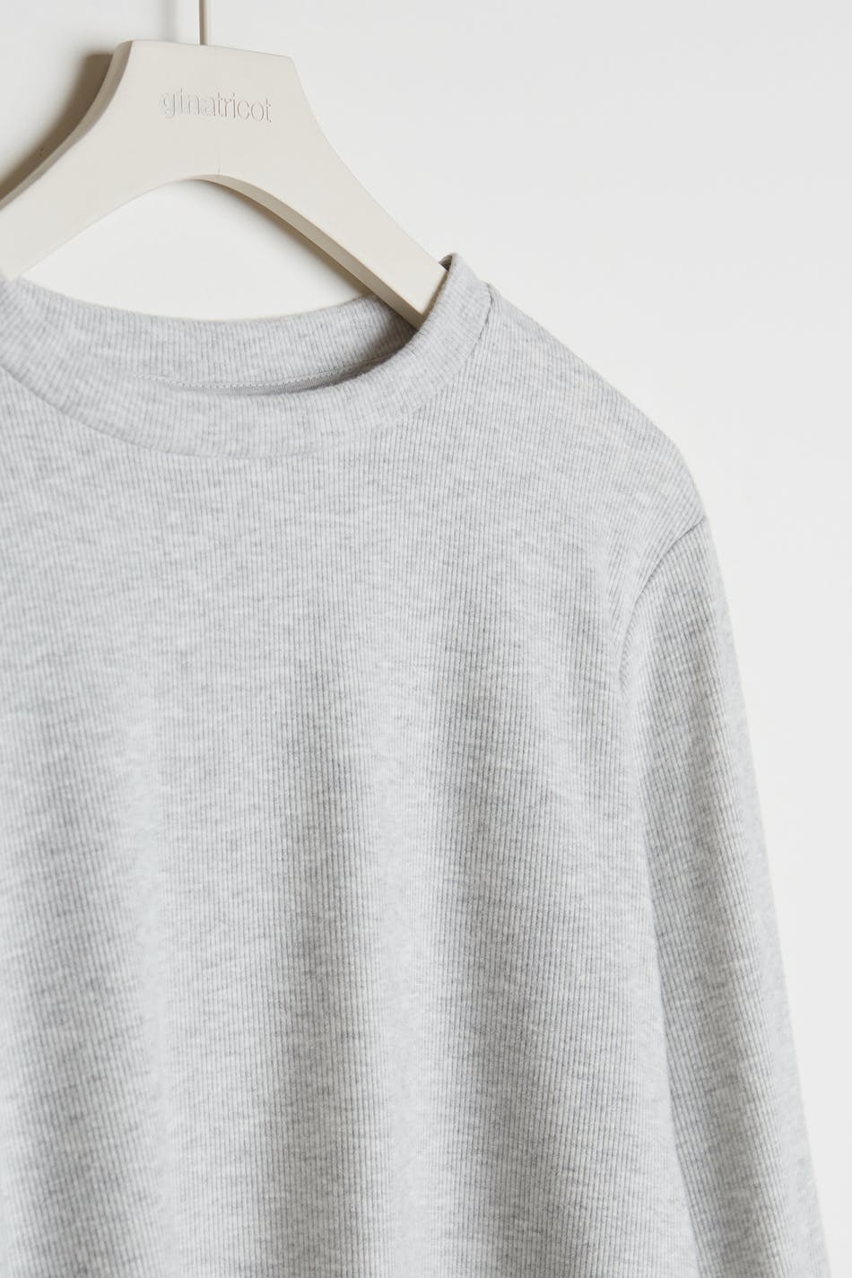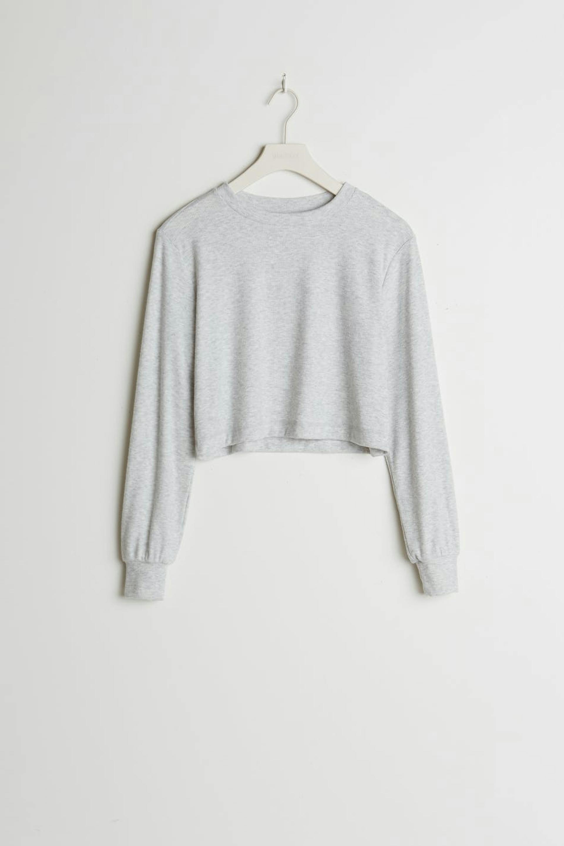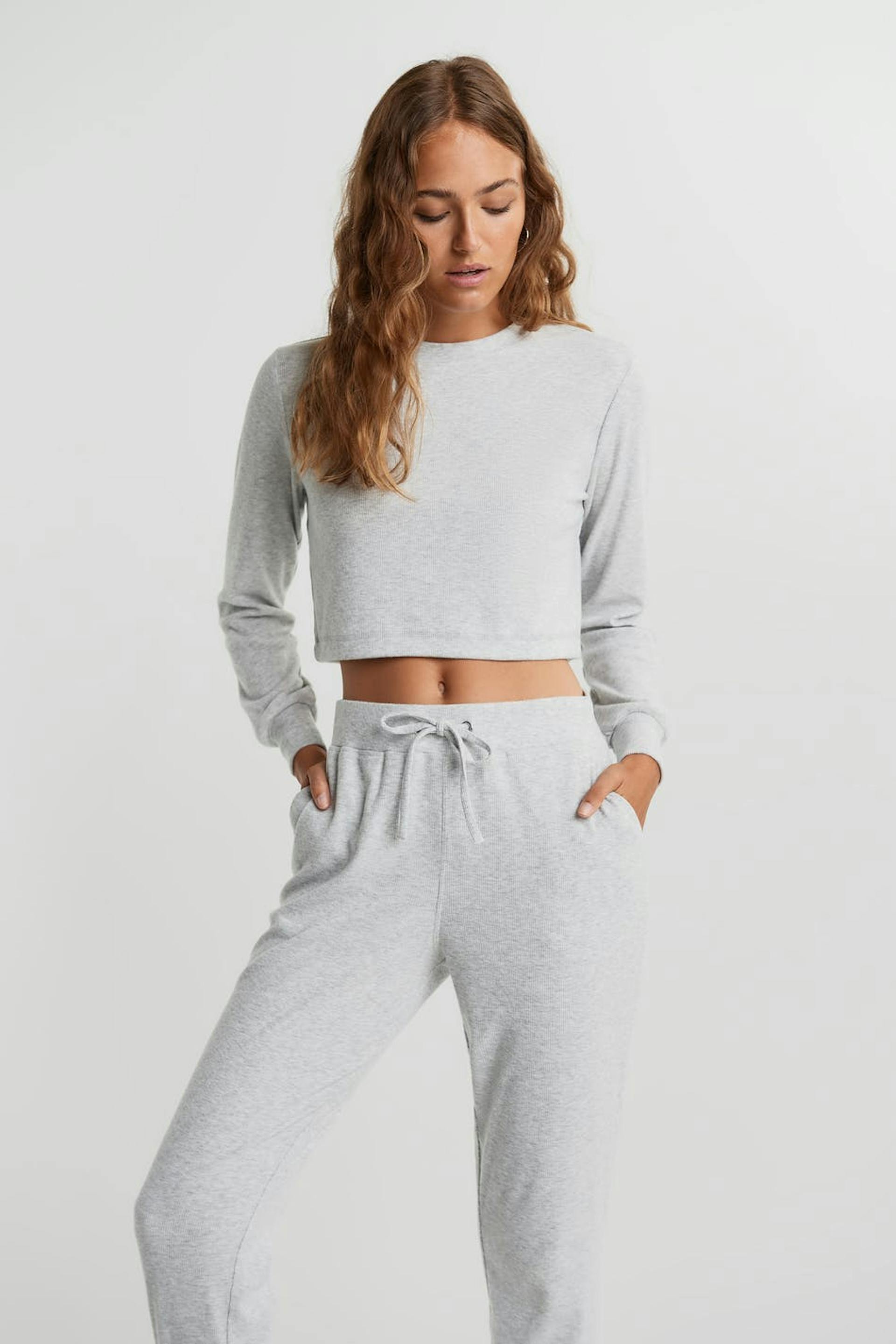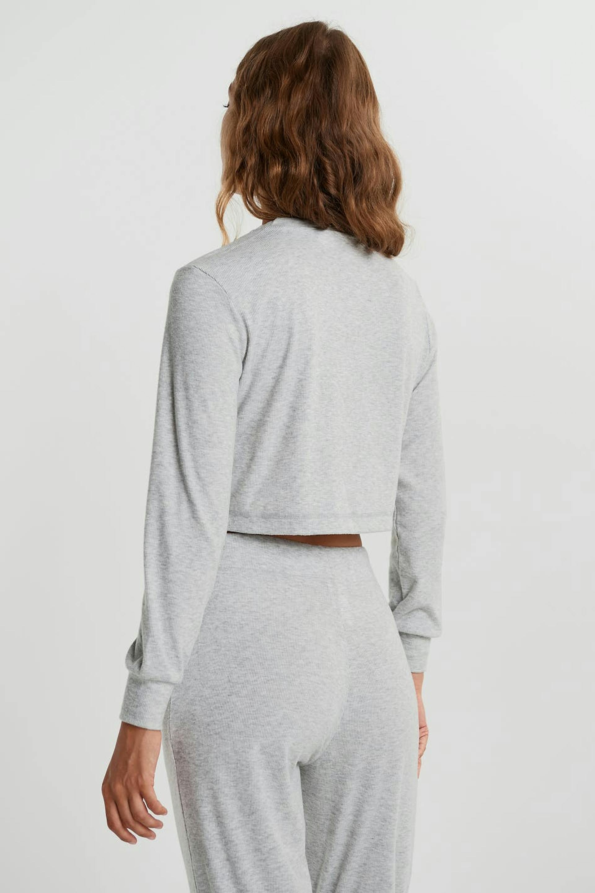 Abgeschnittenes Sweatshirt mit einer normaler Passform. Grau, langärmlig und weich und Rippenstrick.