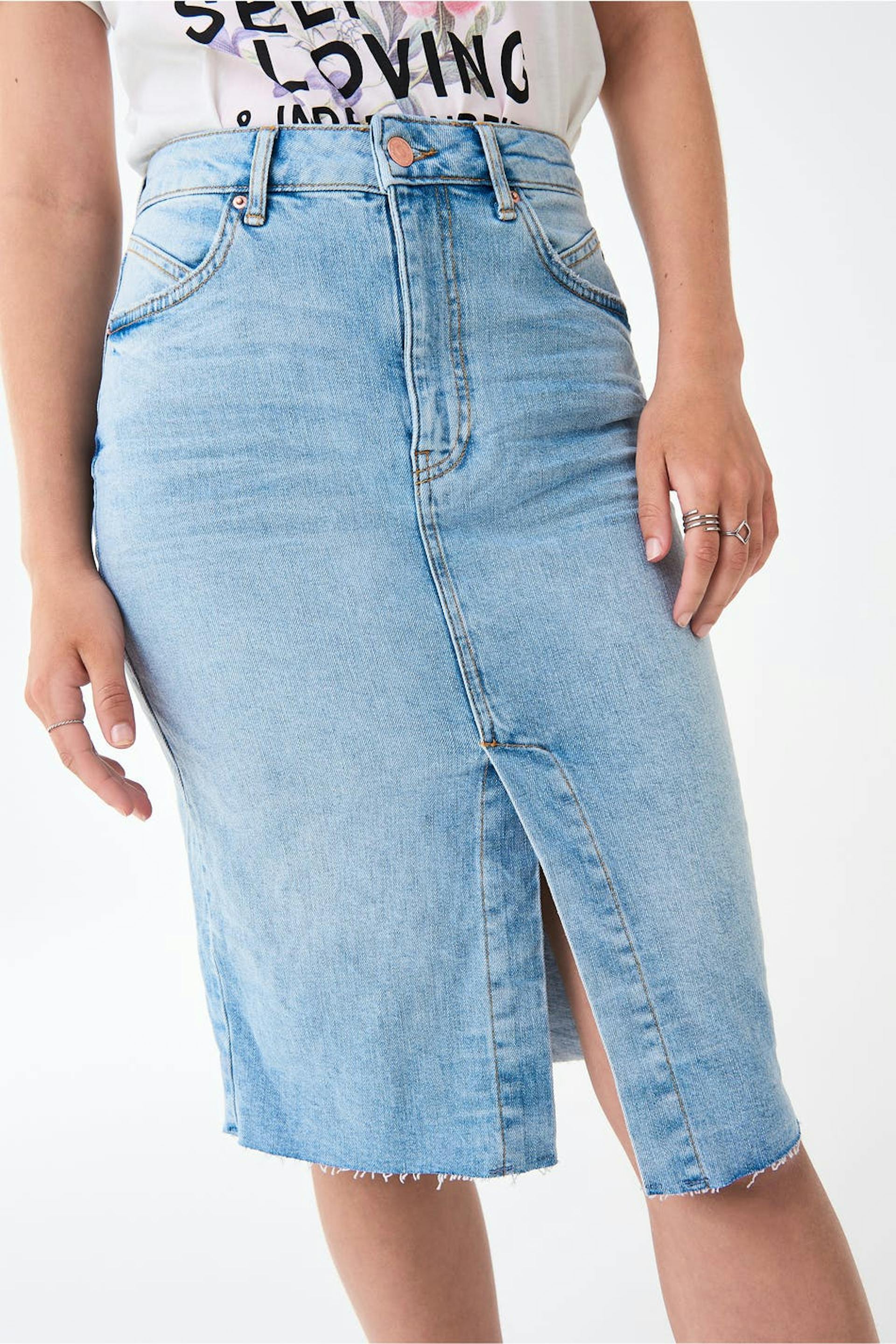 Midi slit denim skirt