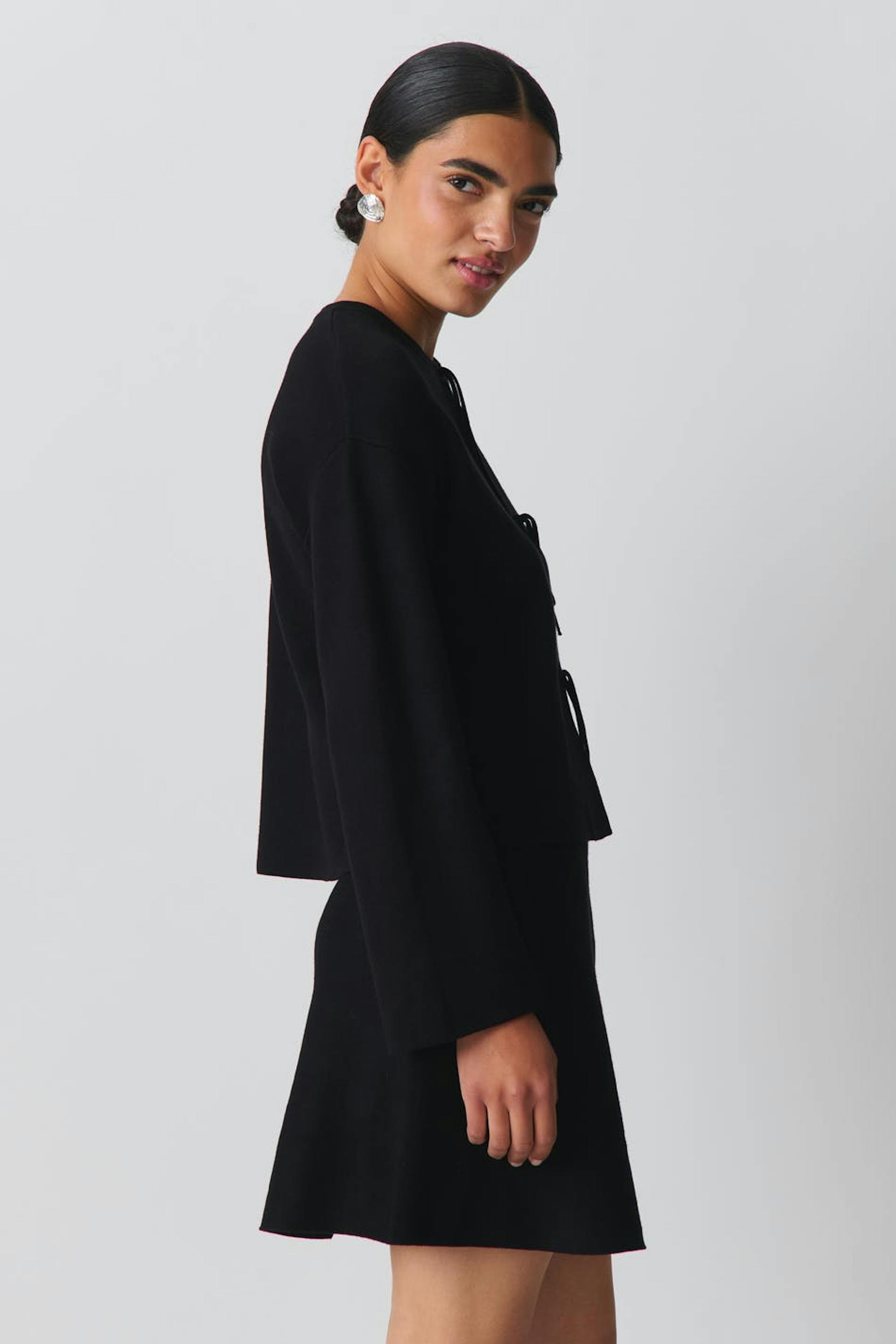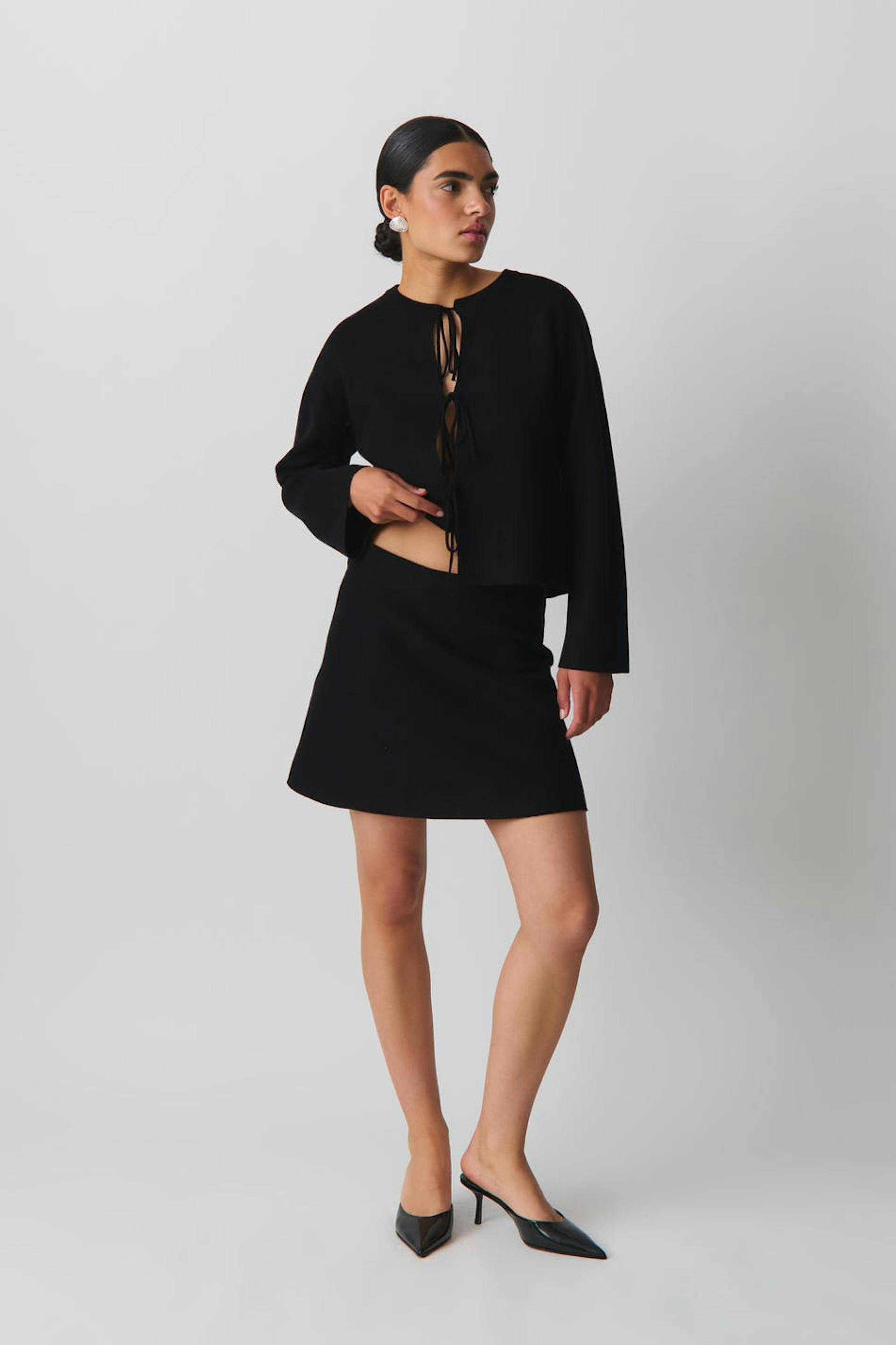 Rock mit einem Jacquard-Strick und normaler Passform. Der Rock ist schwarz und hat kurze Länge.