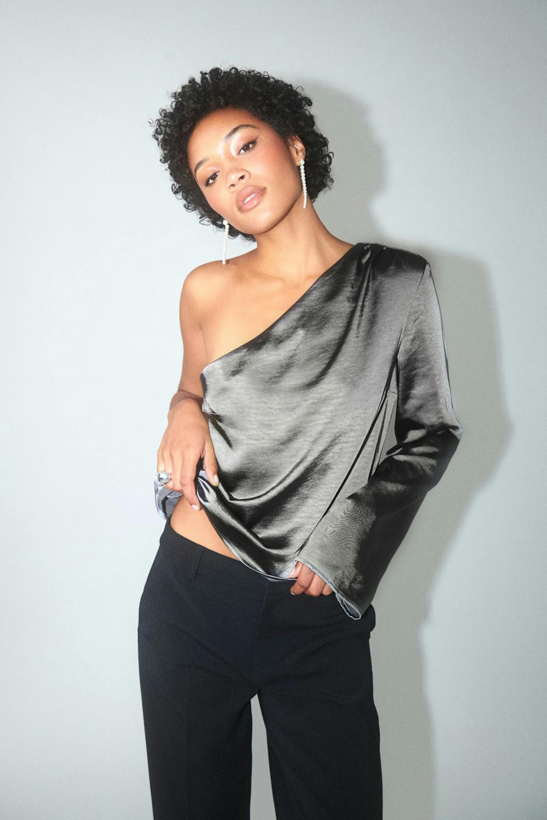 One shoulder satin blouse