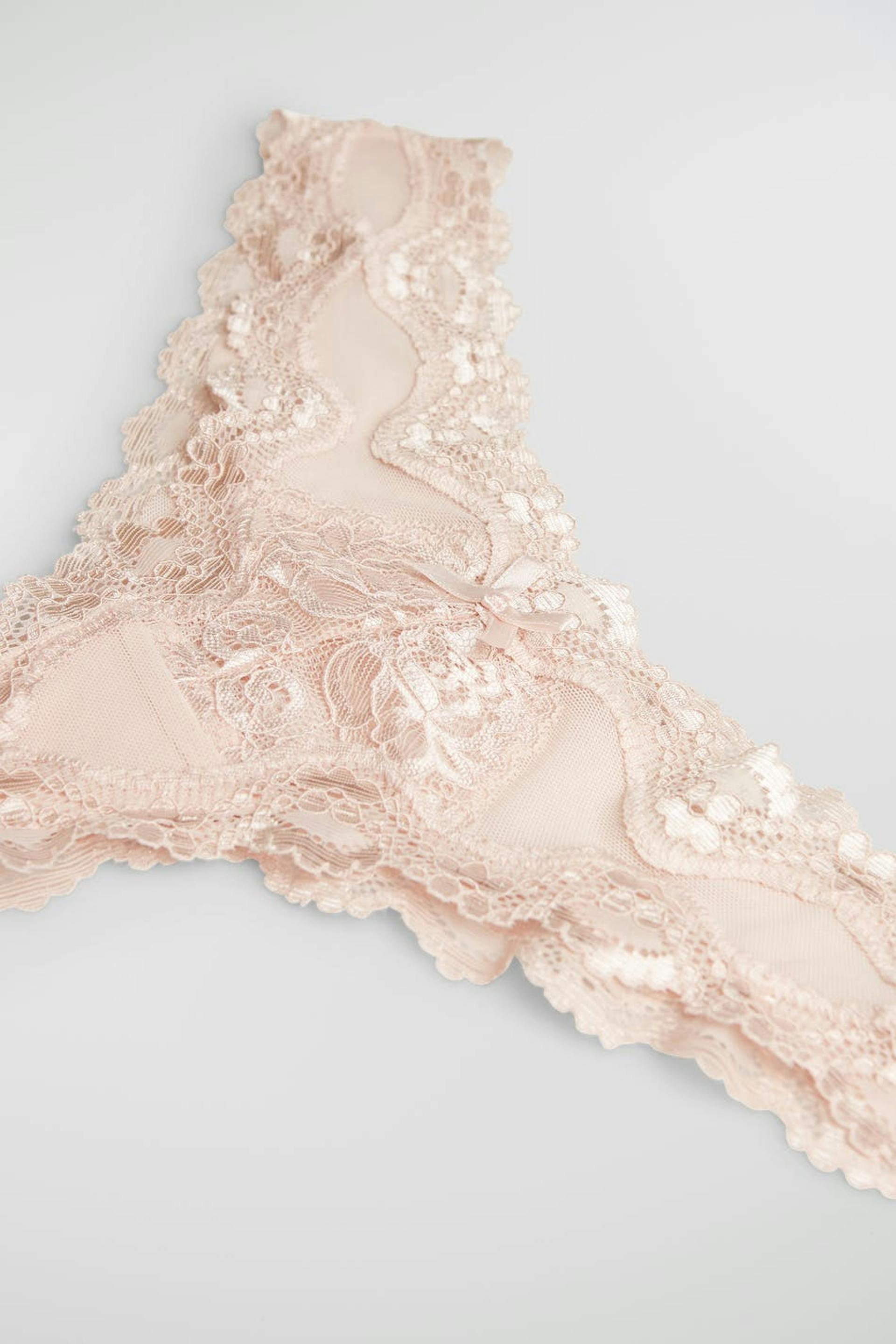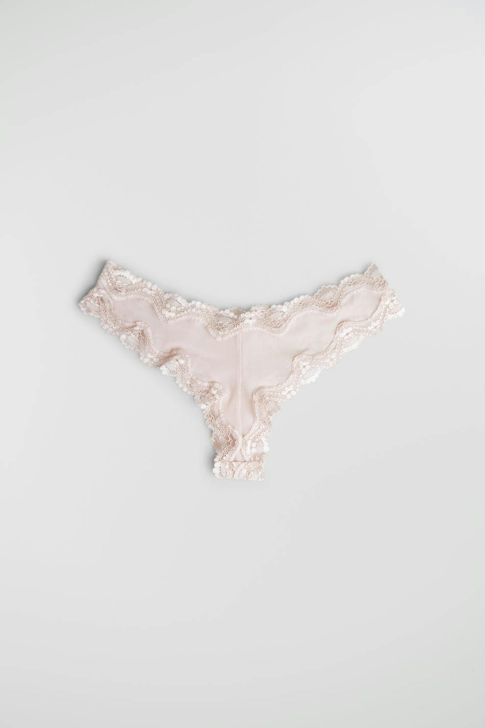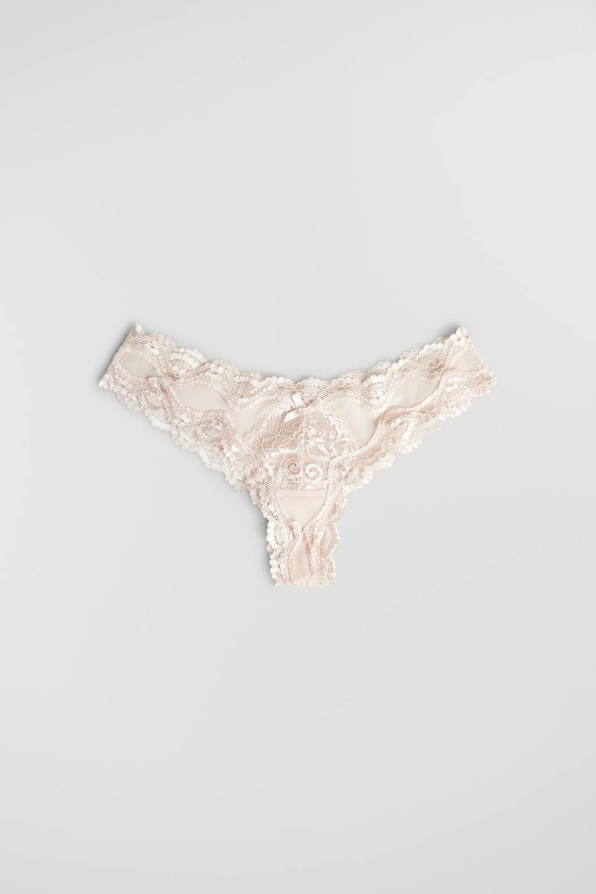 Brasilianisches Höschen. Das Höschen ist rosa. Es ist hergestellt aus Spitze.