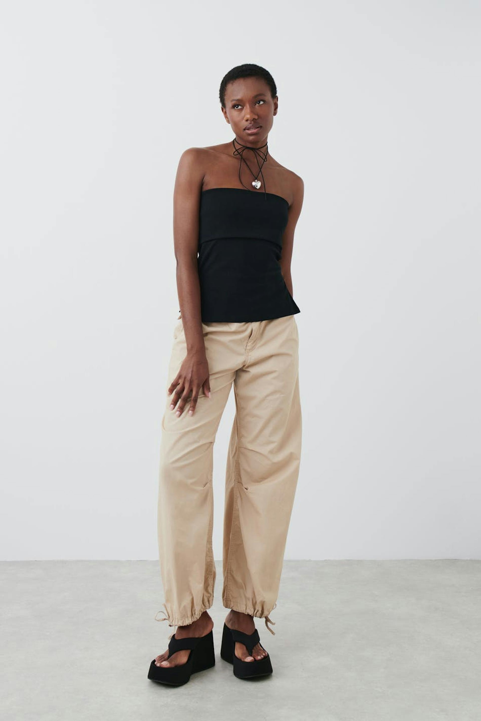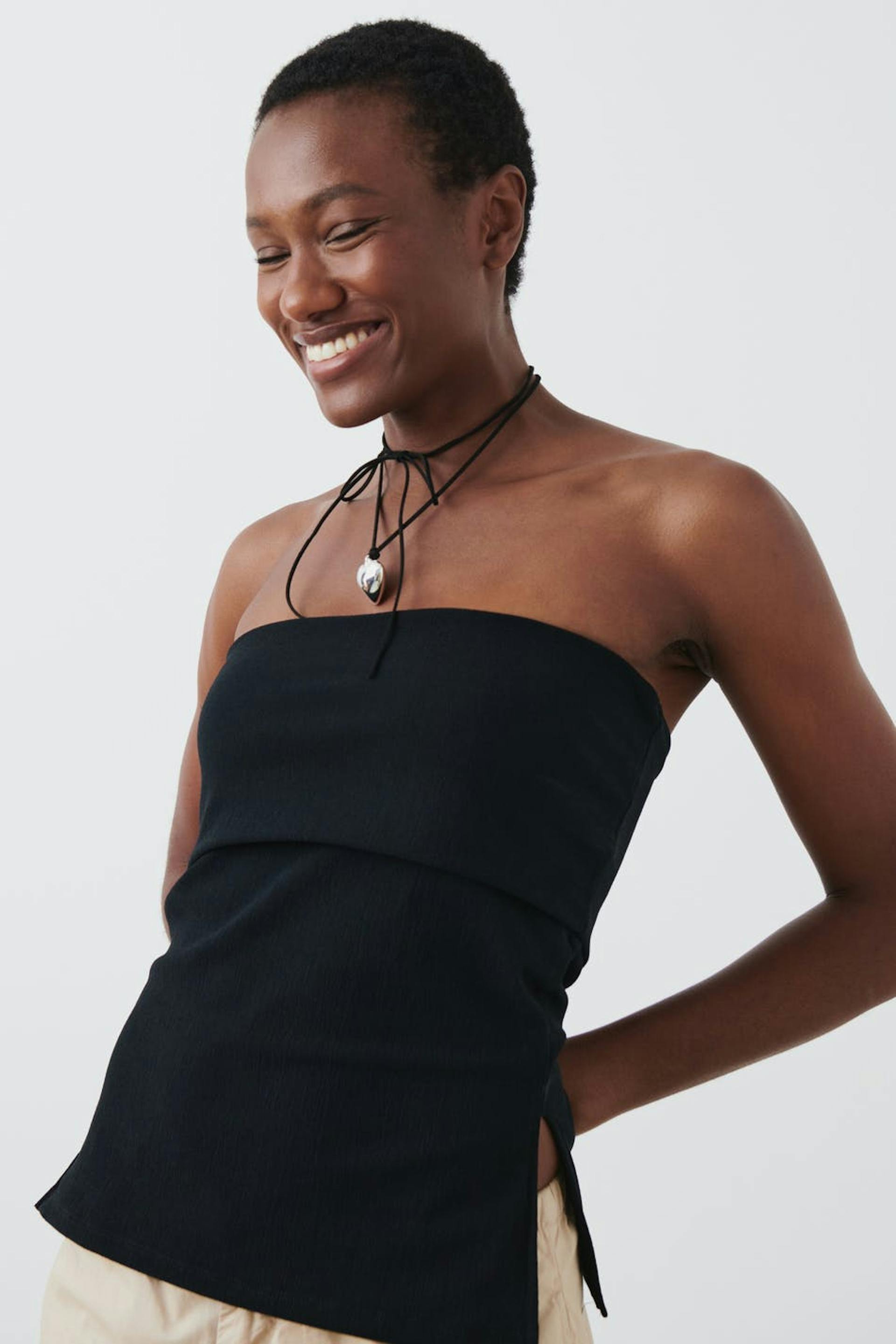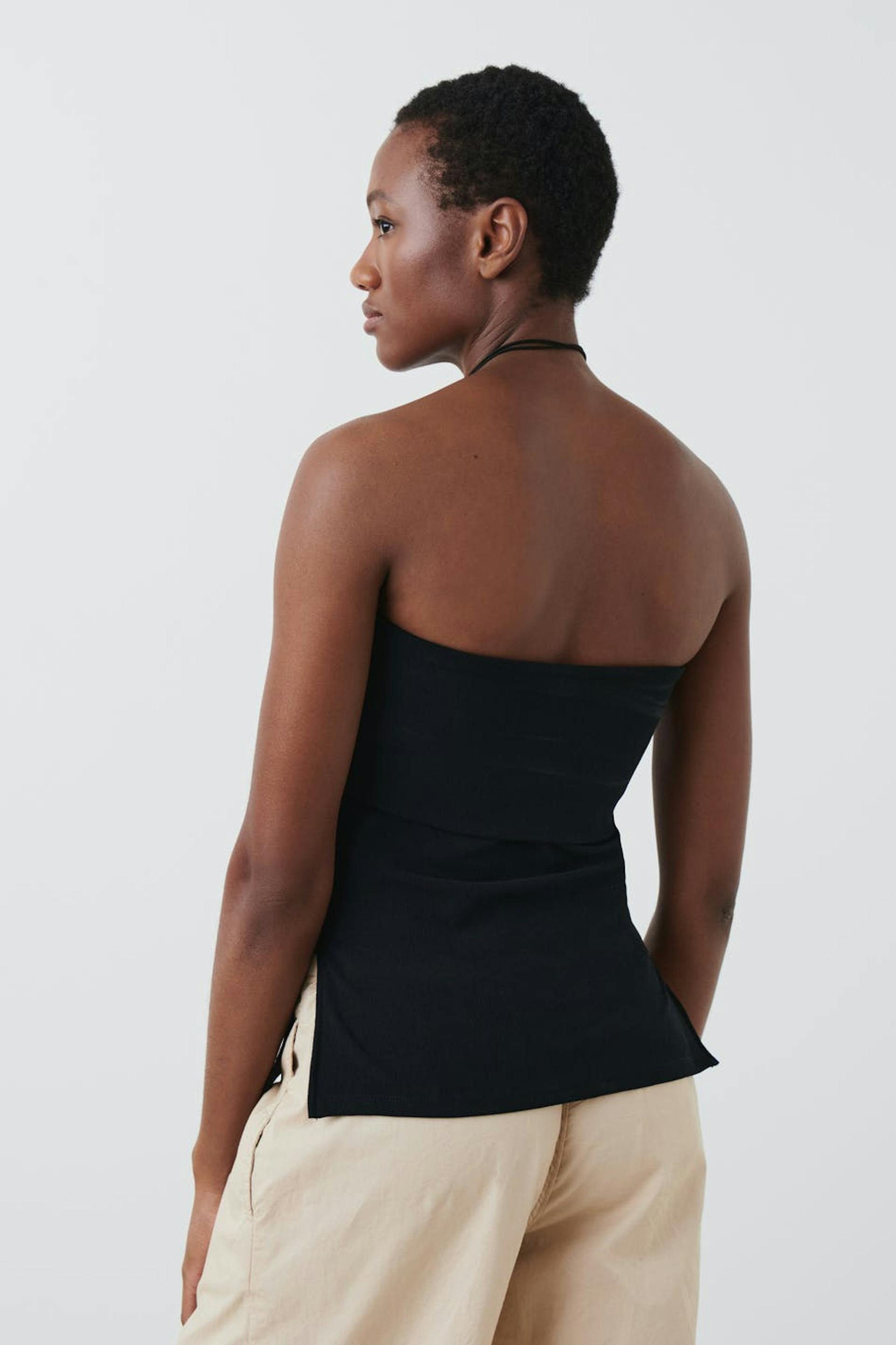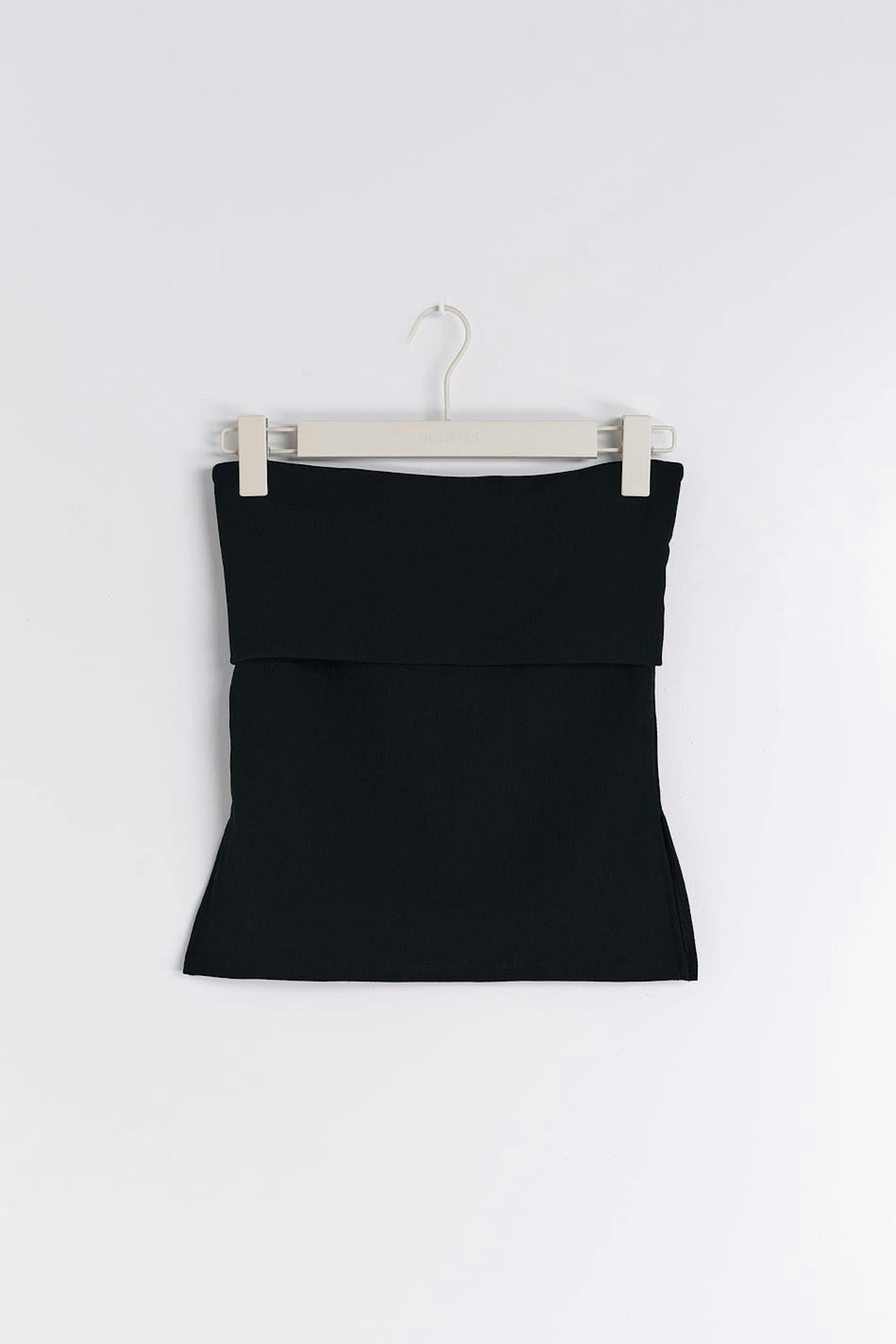 Röhrenoberteil aus Jersey mit figurbetonter Passform. Das Oberteil ist schwarz.
