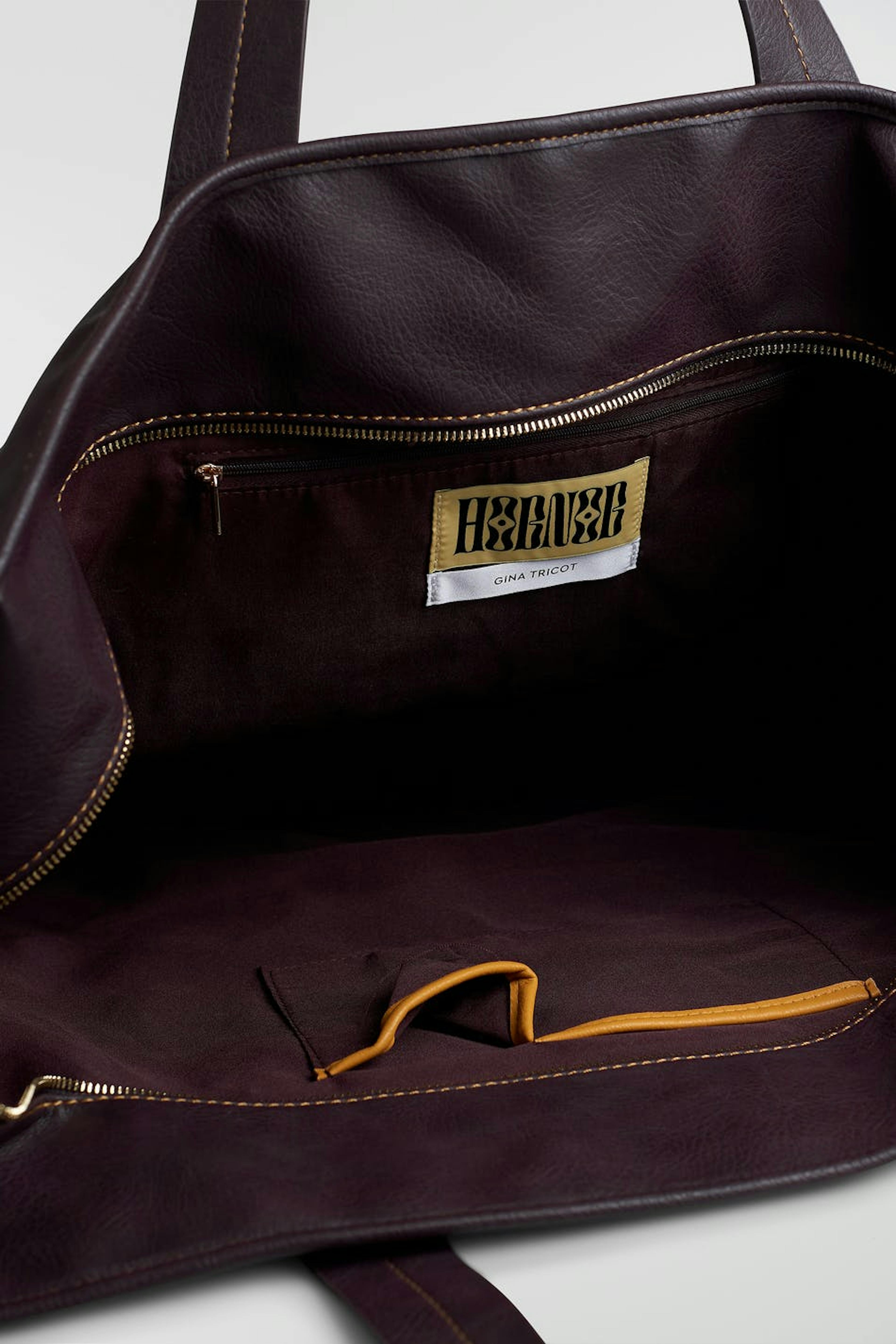 Hobnob X Gina Tricot. Wochenendtasche in Kunstleder mit geräumigem Hauptfach. Die Tasche ist weinrot und hat zwei Griffe. Sie hat Verschluss mit Reißverschluss und mehrere Innenfächer.