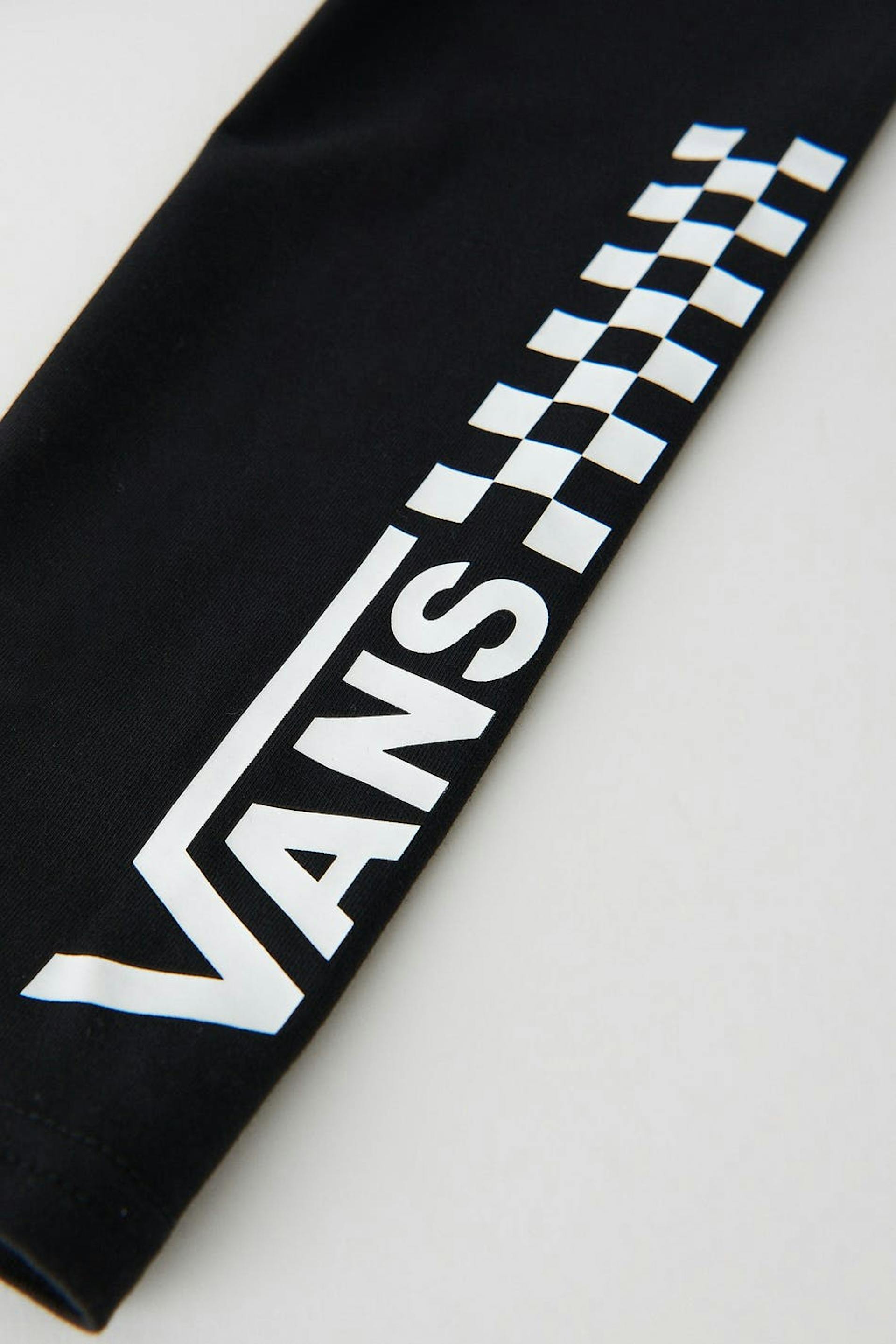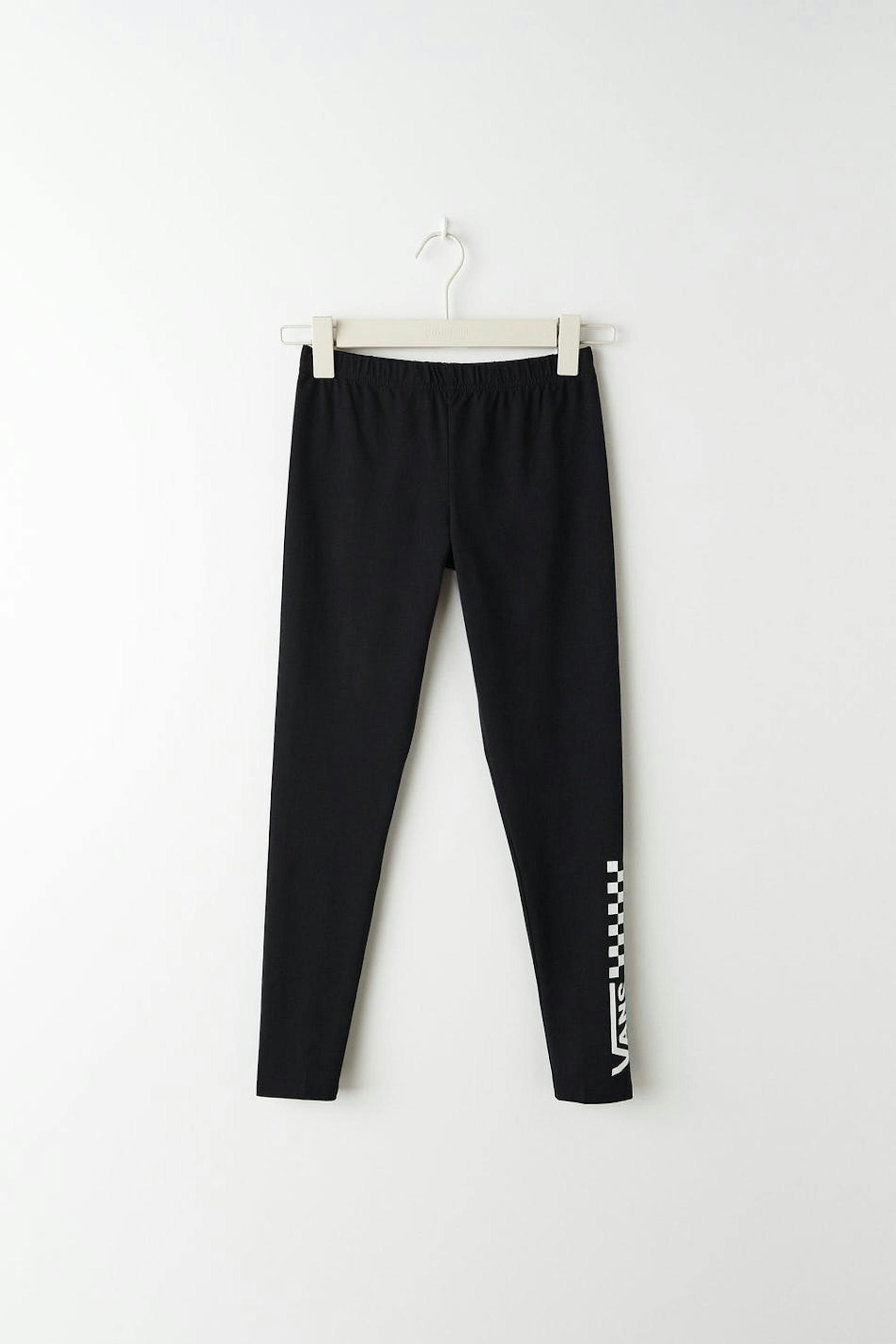 Leggings von Vans mit Gummiband in der Taille. Die Leggings sind schwarz und haben Markenlogo am Bein.