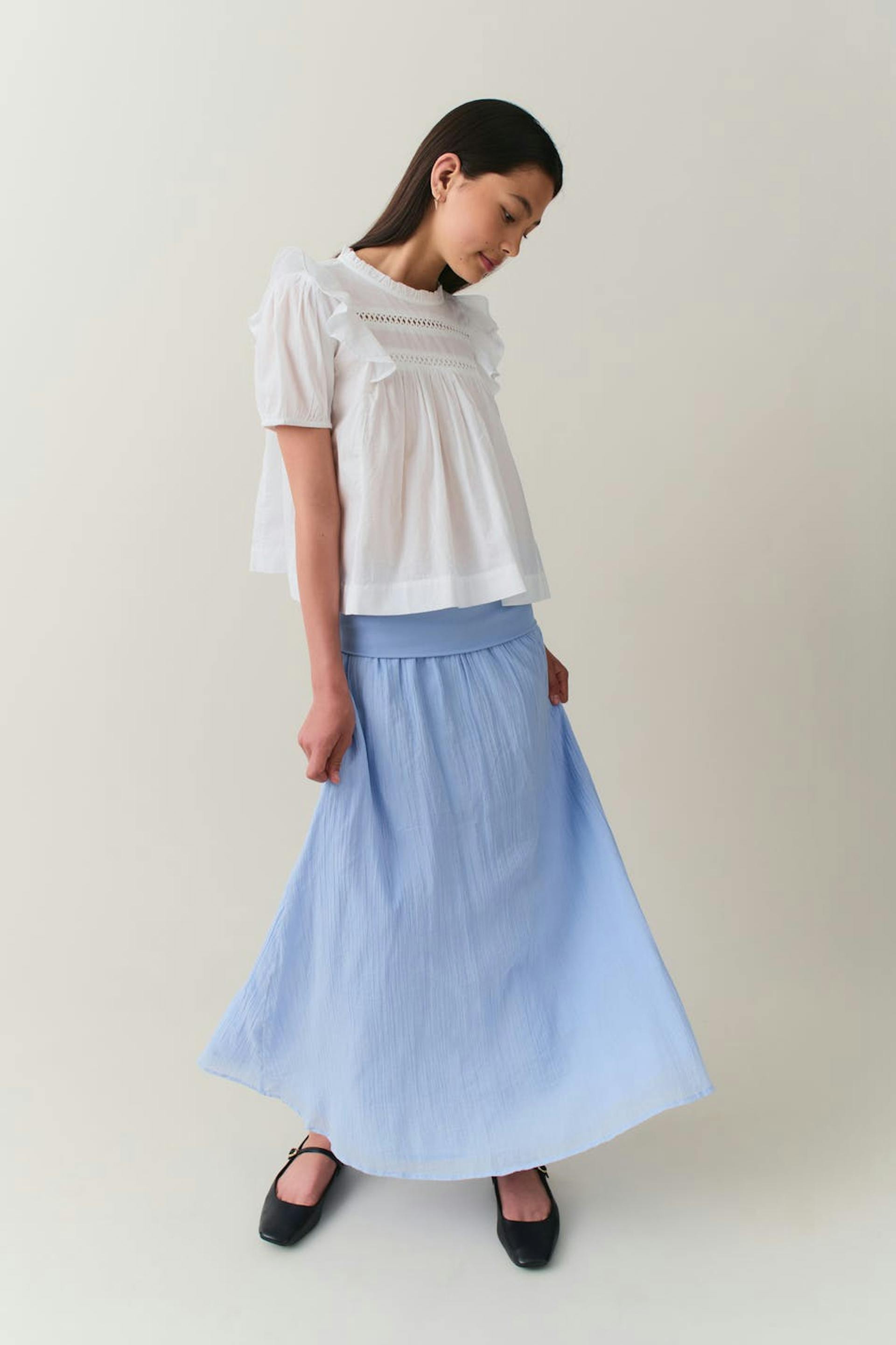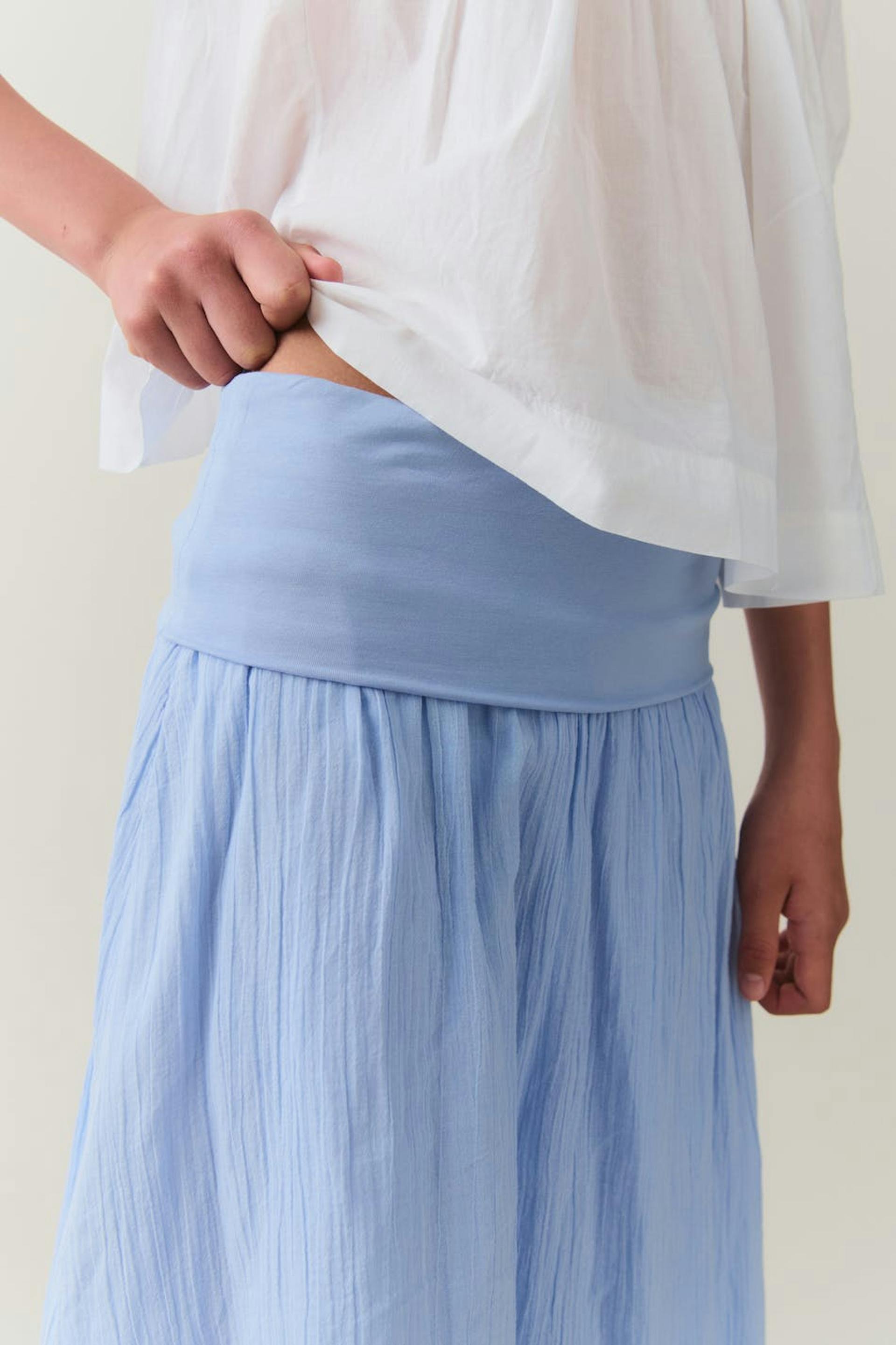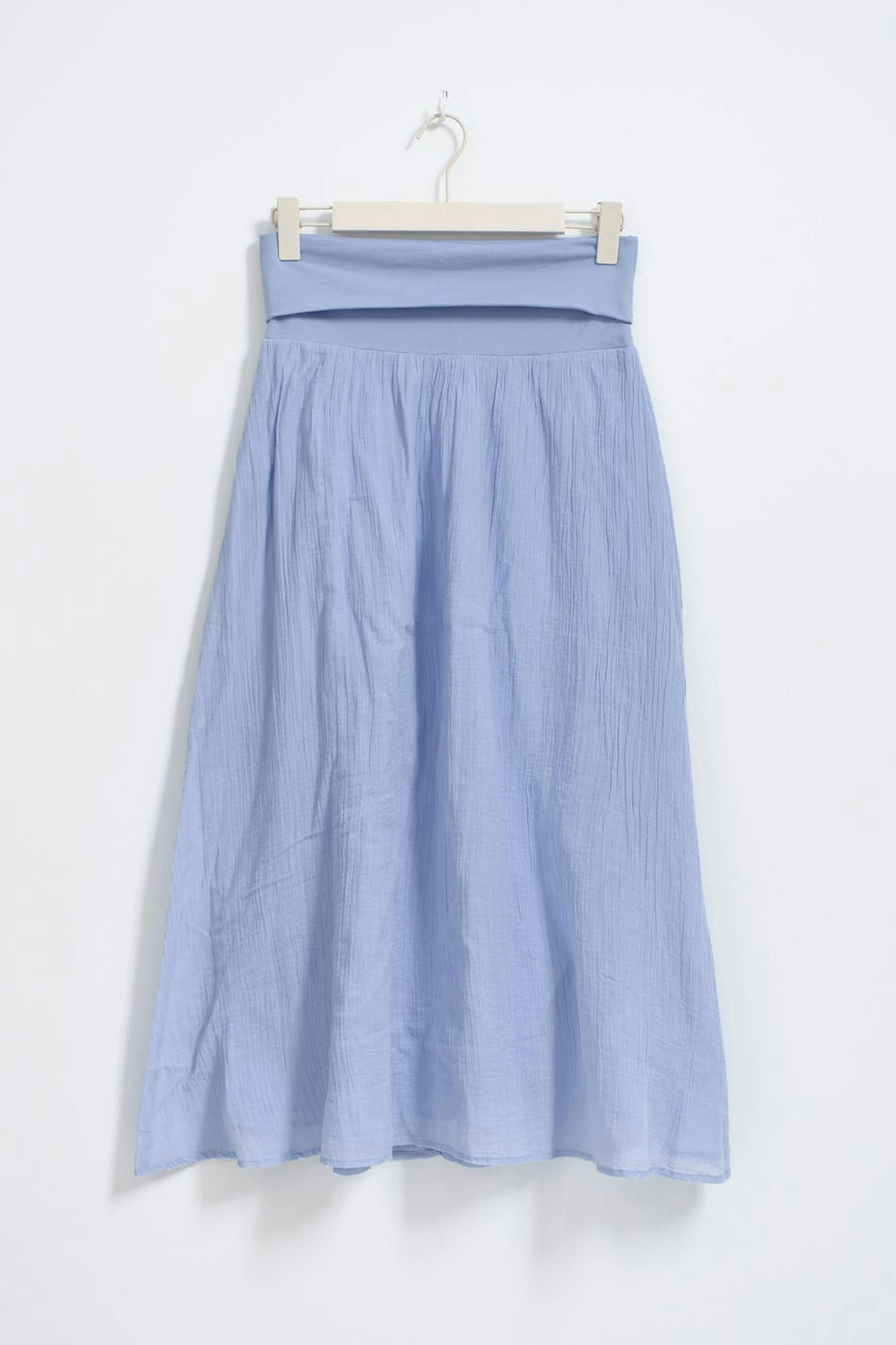 Rock mit einer normalen Passform. Der Rock ist blau.
