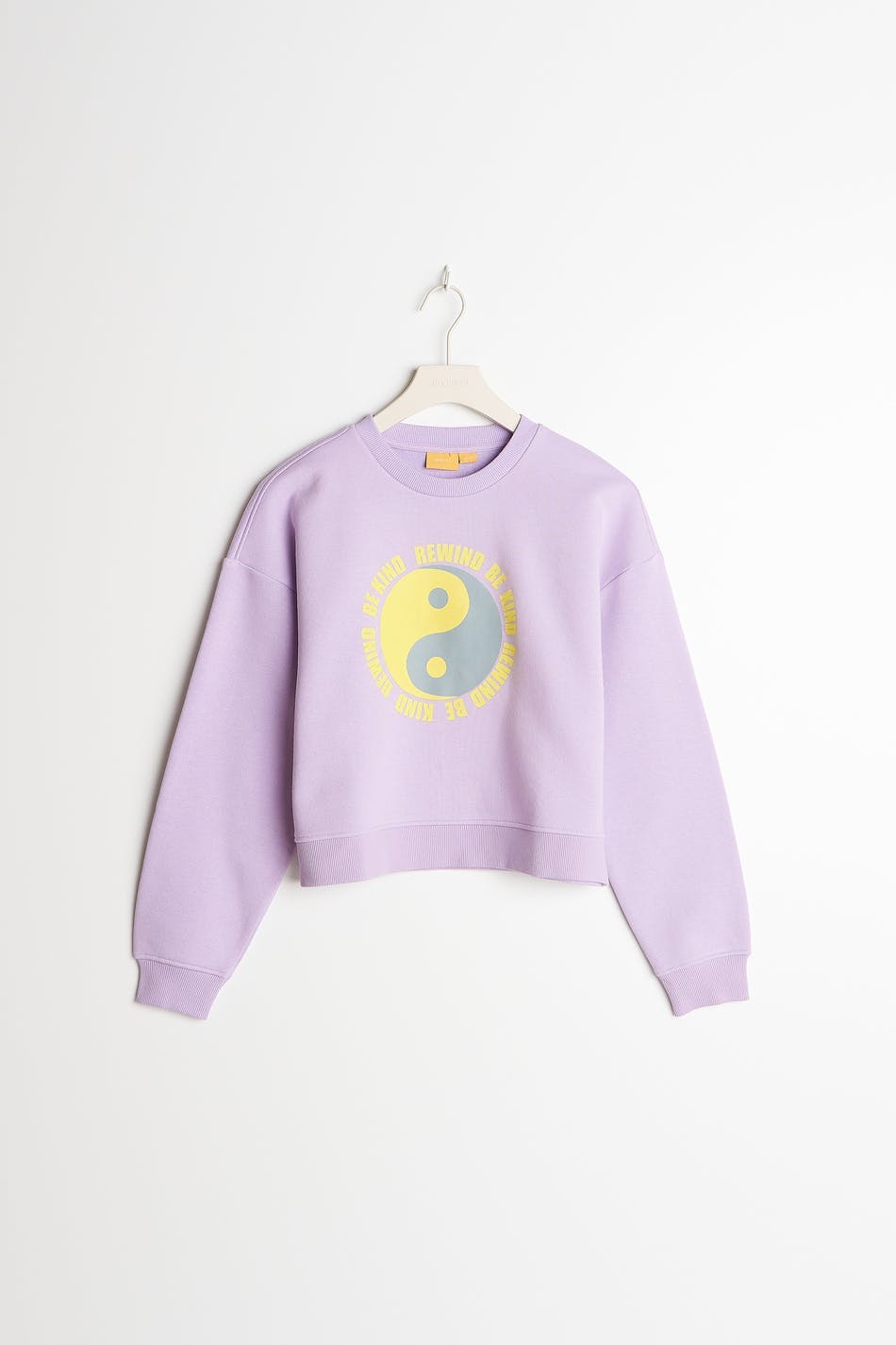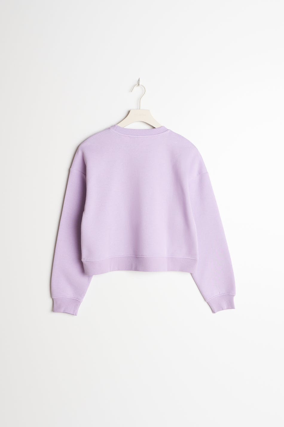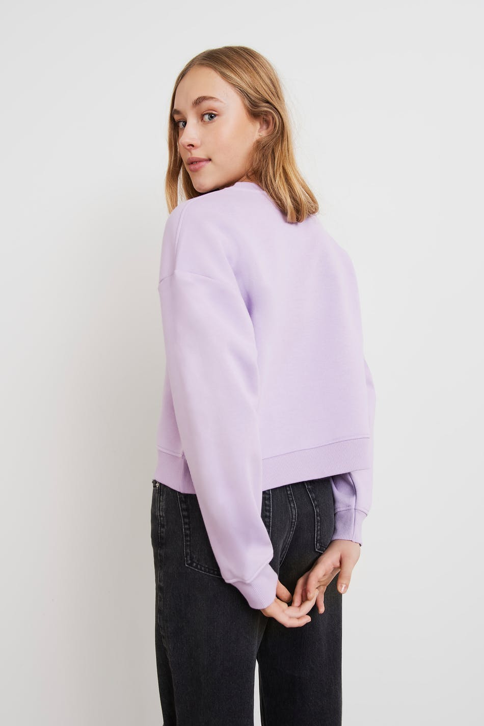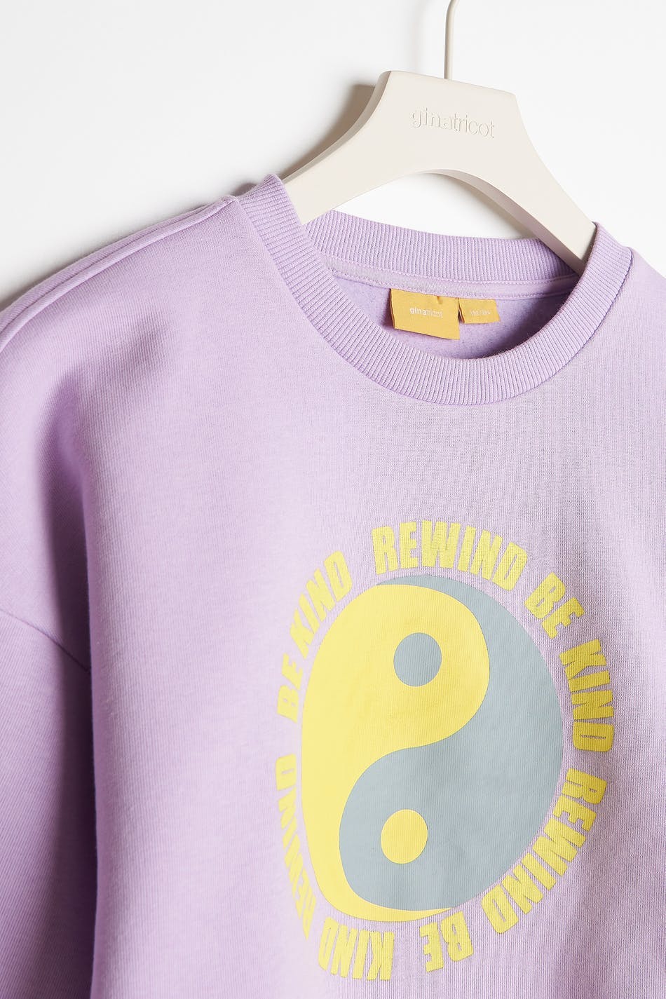 Langärmliges Sweatshirt von aus unserem Young-Sortiment mit Druck. Das Sweatshirt ist lila und hat eine normale Passform. Es hat einen Rundhalsausschnitt, Drop-Schultern und eine gerippte Manschette an den Ärmelenden und am unteren Saum.